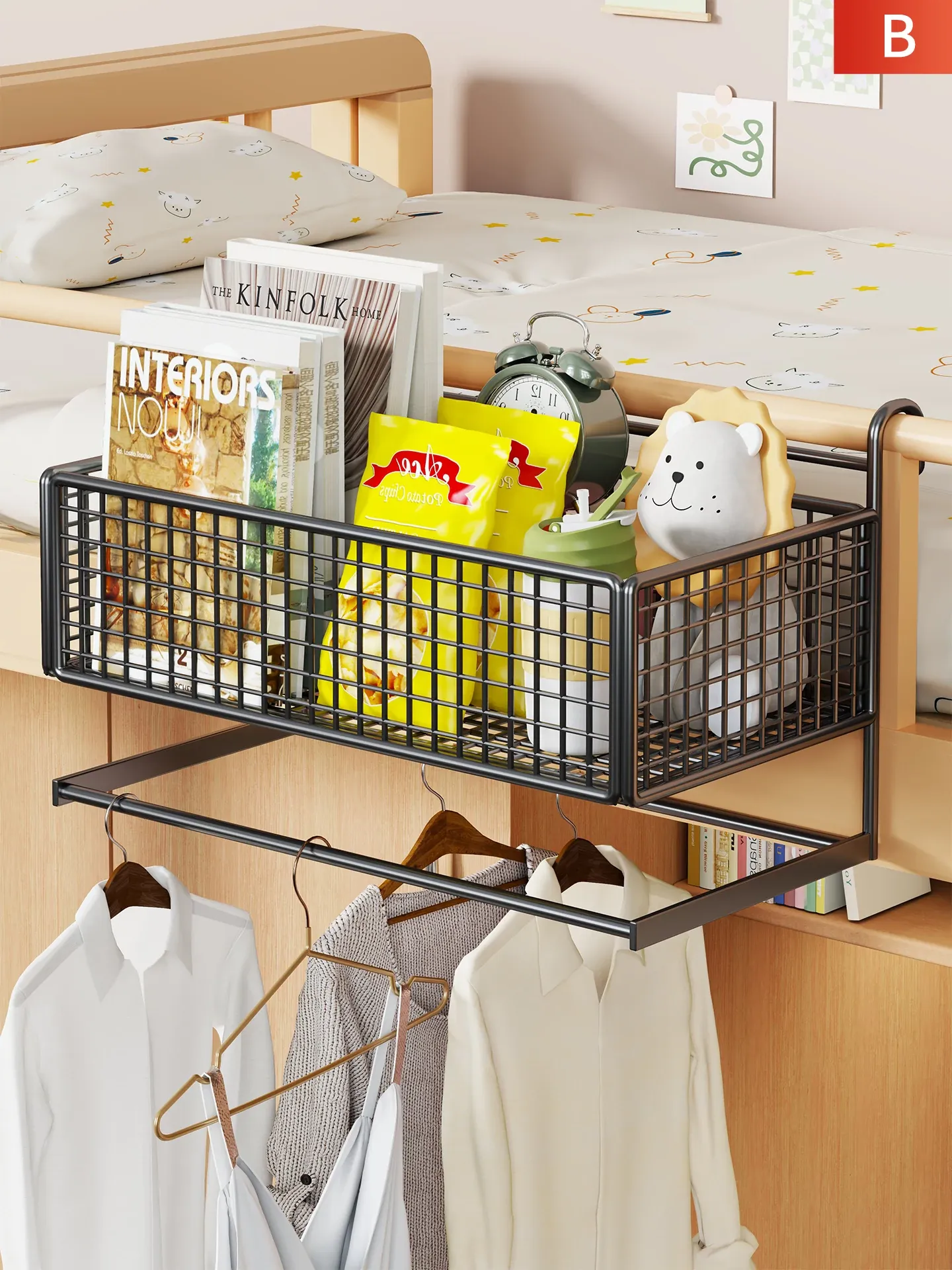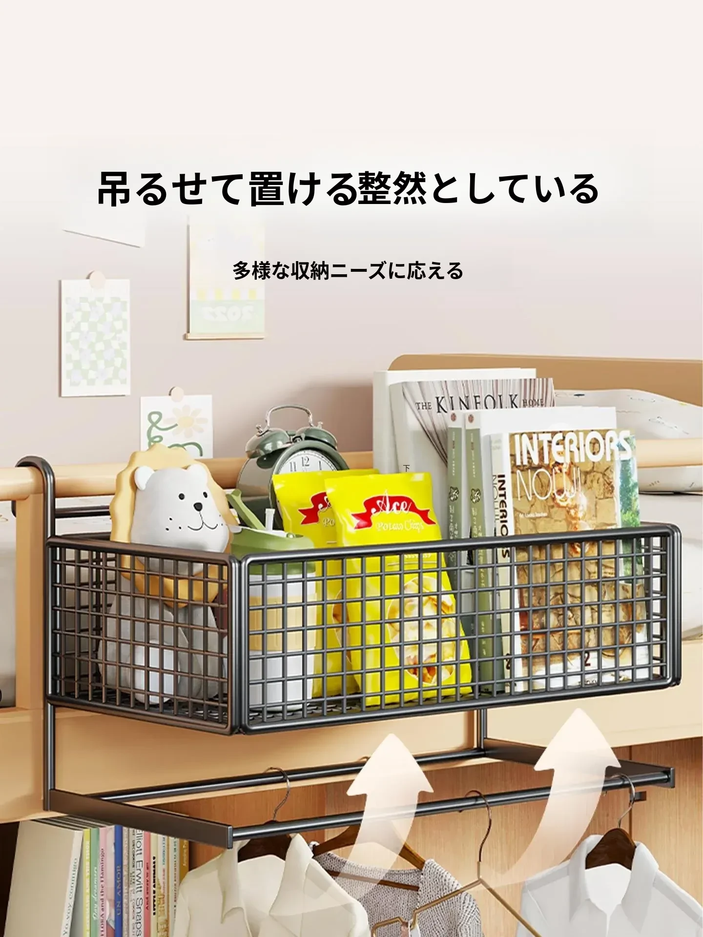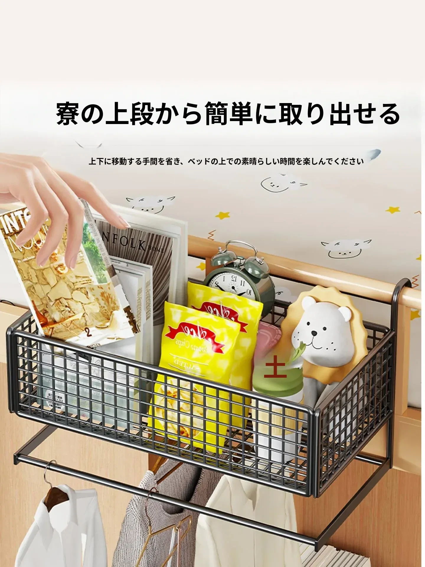 寮のベッドサイドにピッタリ!穴あけ不要の収納バスケット - 大学生のための寝室整理に最適な便利アイテム、上下二段ベッドにも対応!スナックや小物をスッキリ収納し、快適な空間を実現!