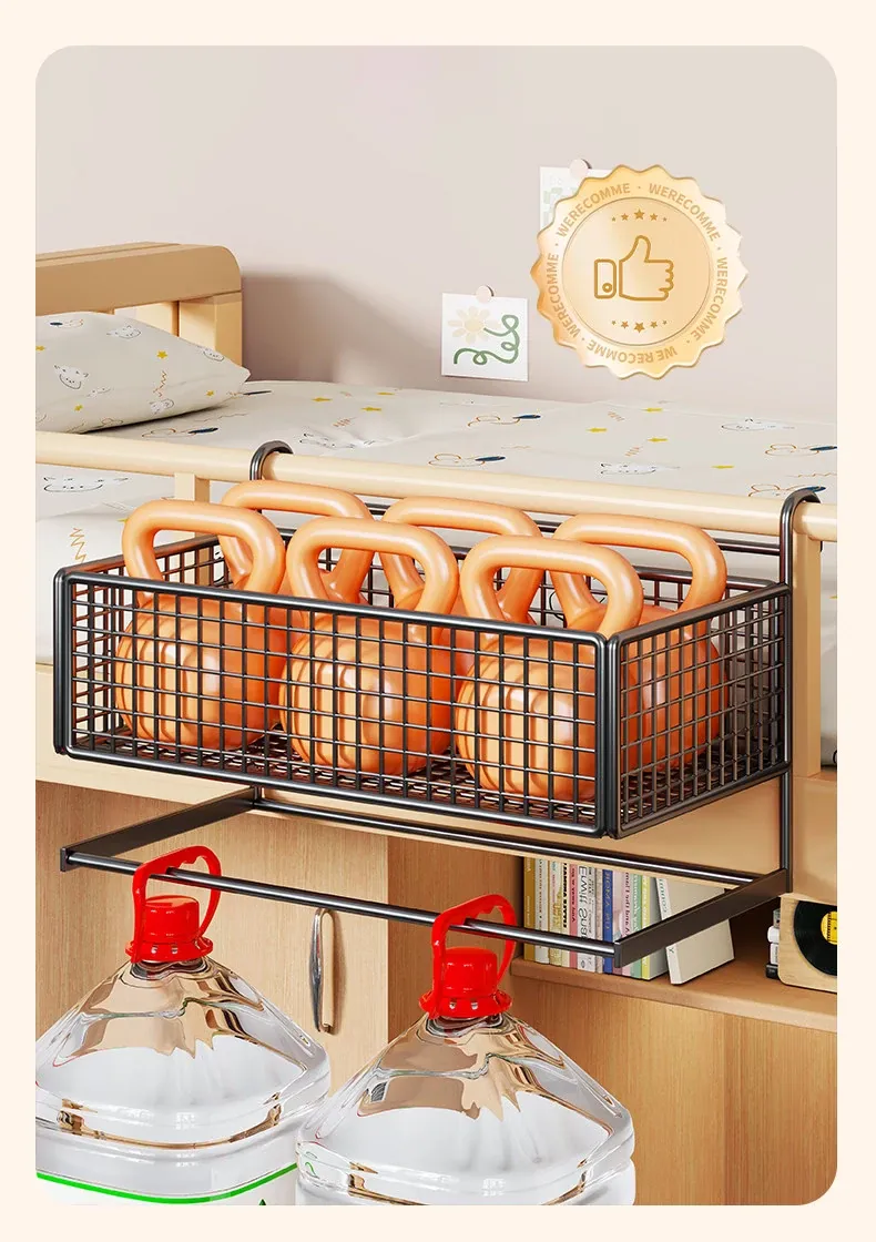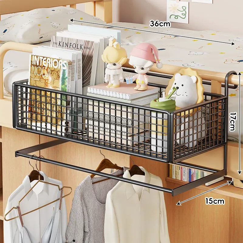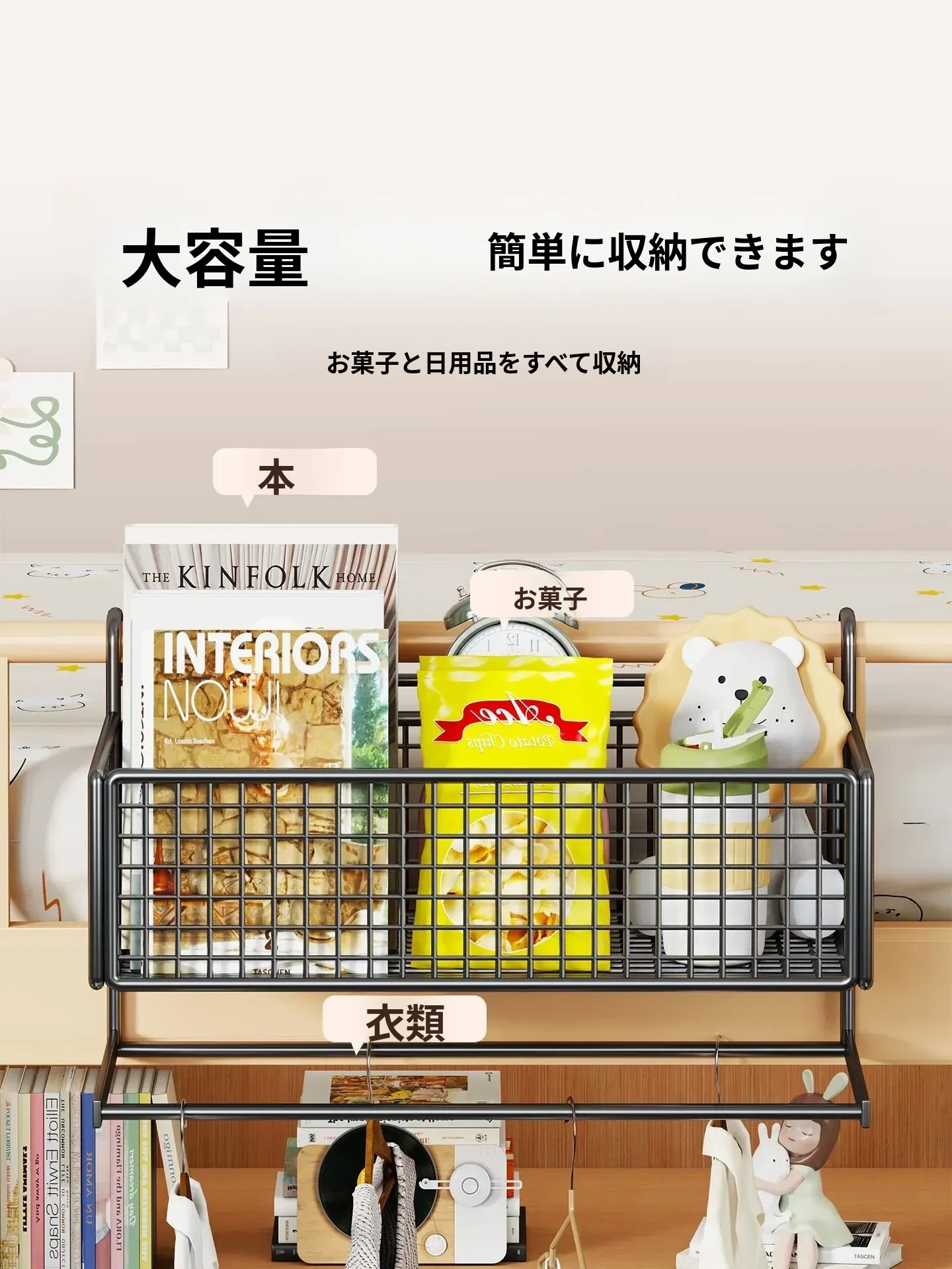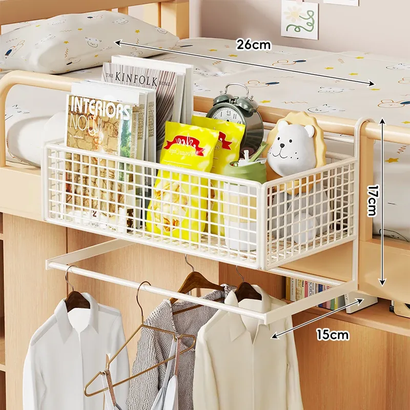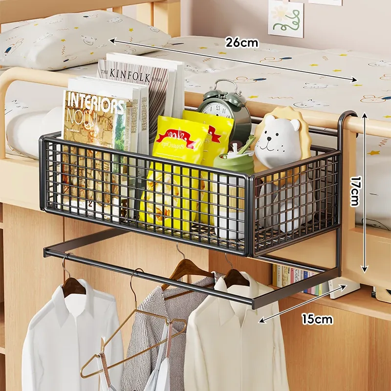 寮のベッドサイドにピッタリ!穴あけ不要の収納バスケット - 大学生のための寝室整理に最適な便利アイテム、上下二段ベッドにも対応!スナックや小物をスッキリ収納し、快適な空間を実現!