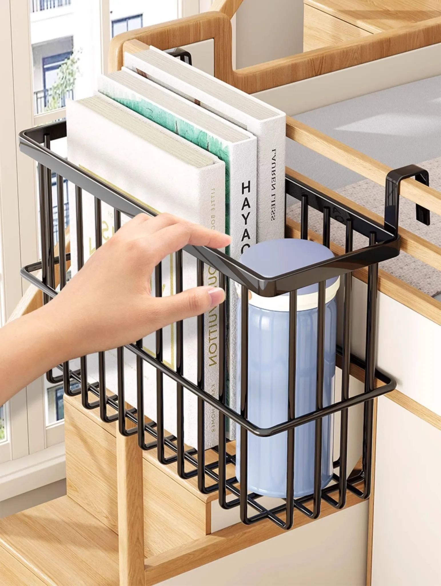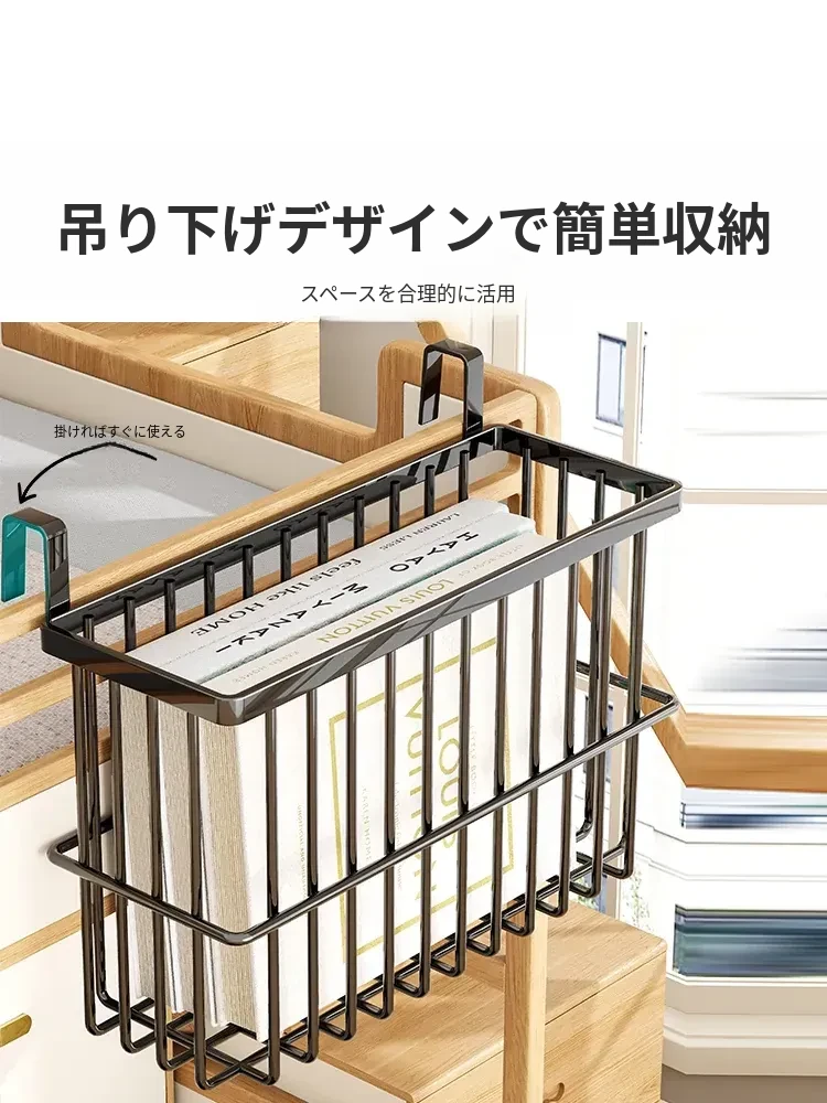 寮のベッドサイドハンギングバスケット - 穴を開けずに取り付け可能!上下段ベッドにも最適な収納ラック。寝室をスッキリ整理する便利アイテム!