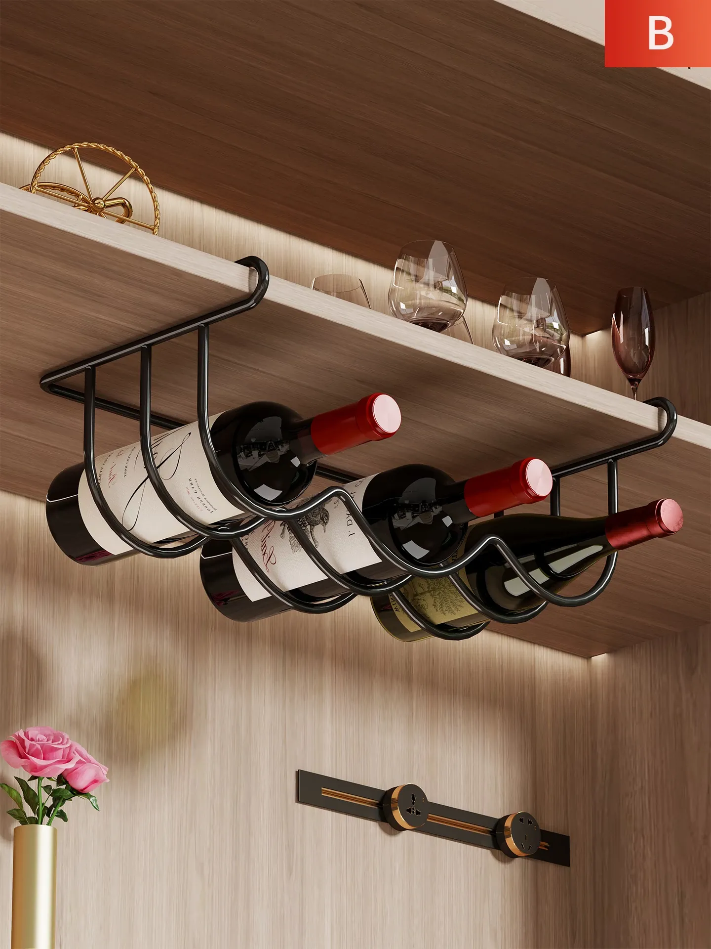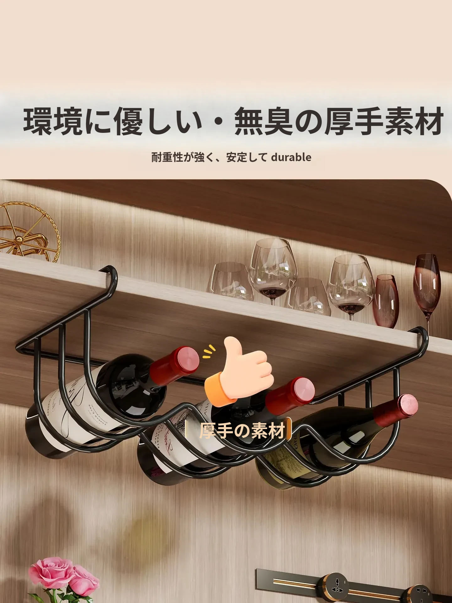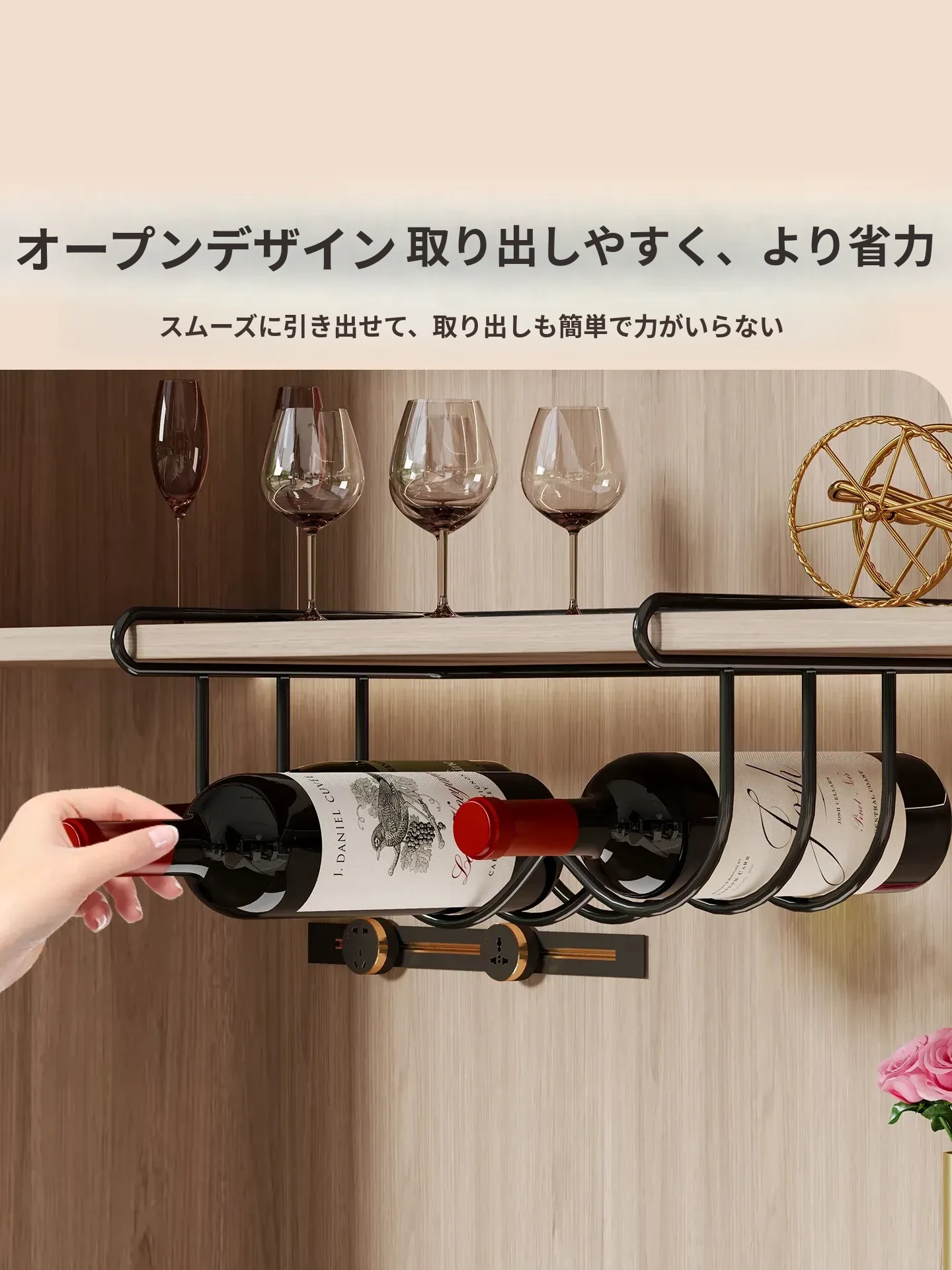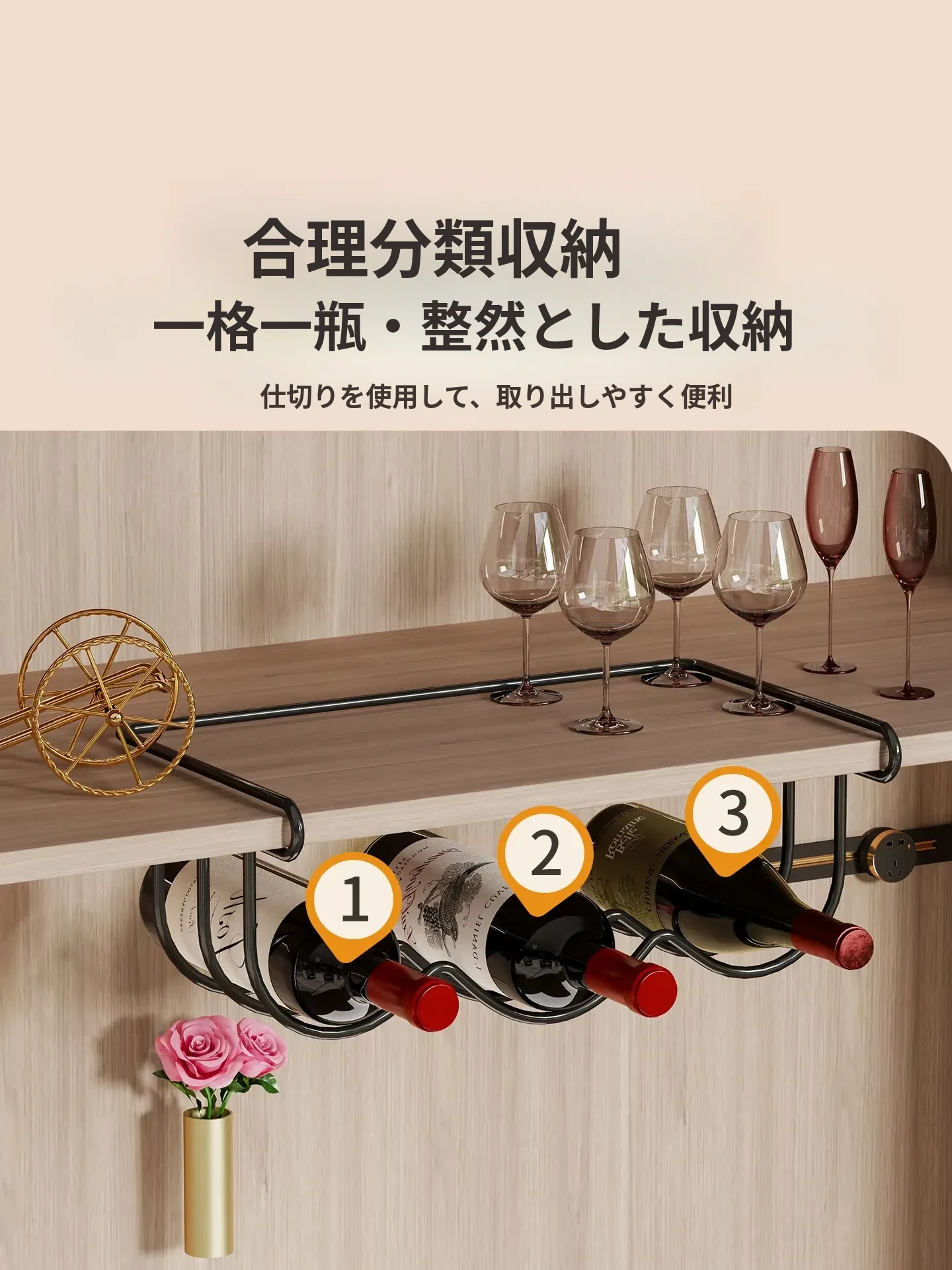 軽やかな高級感!おしゃれなワインラック - 吊り下げ式ワインキャビネット、スペースを有効活用できるグラパワイン&シャンパンの層別ディスプレイラック!