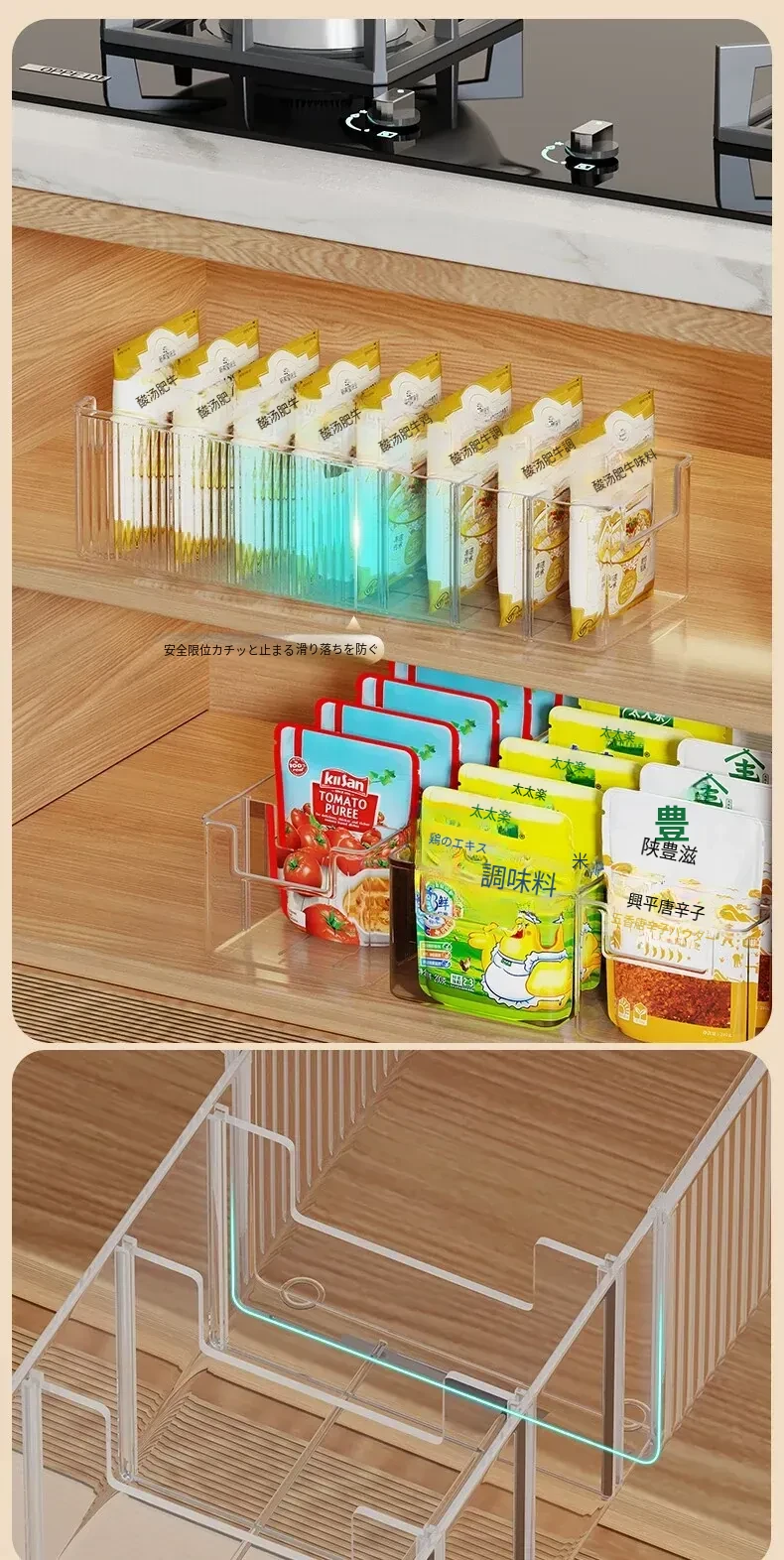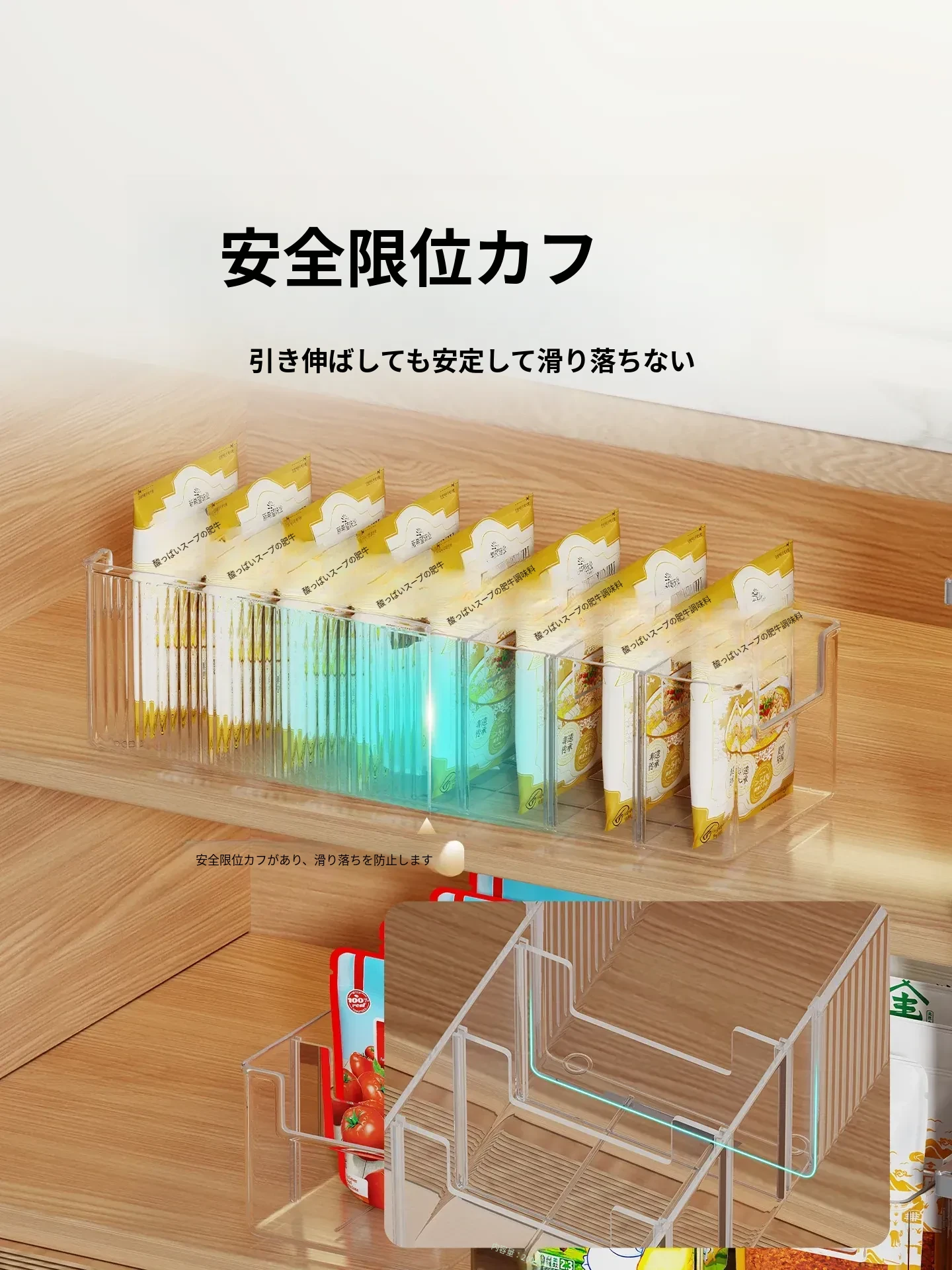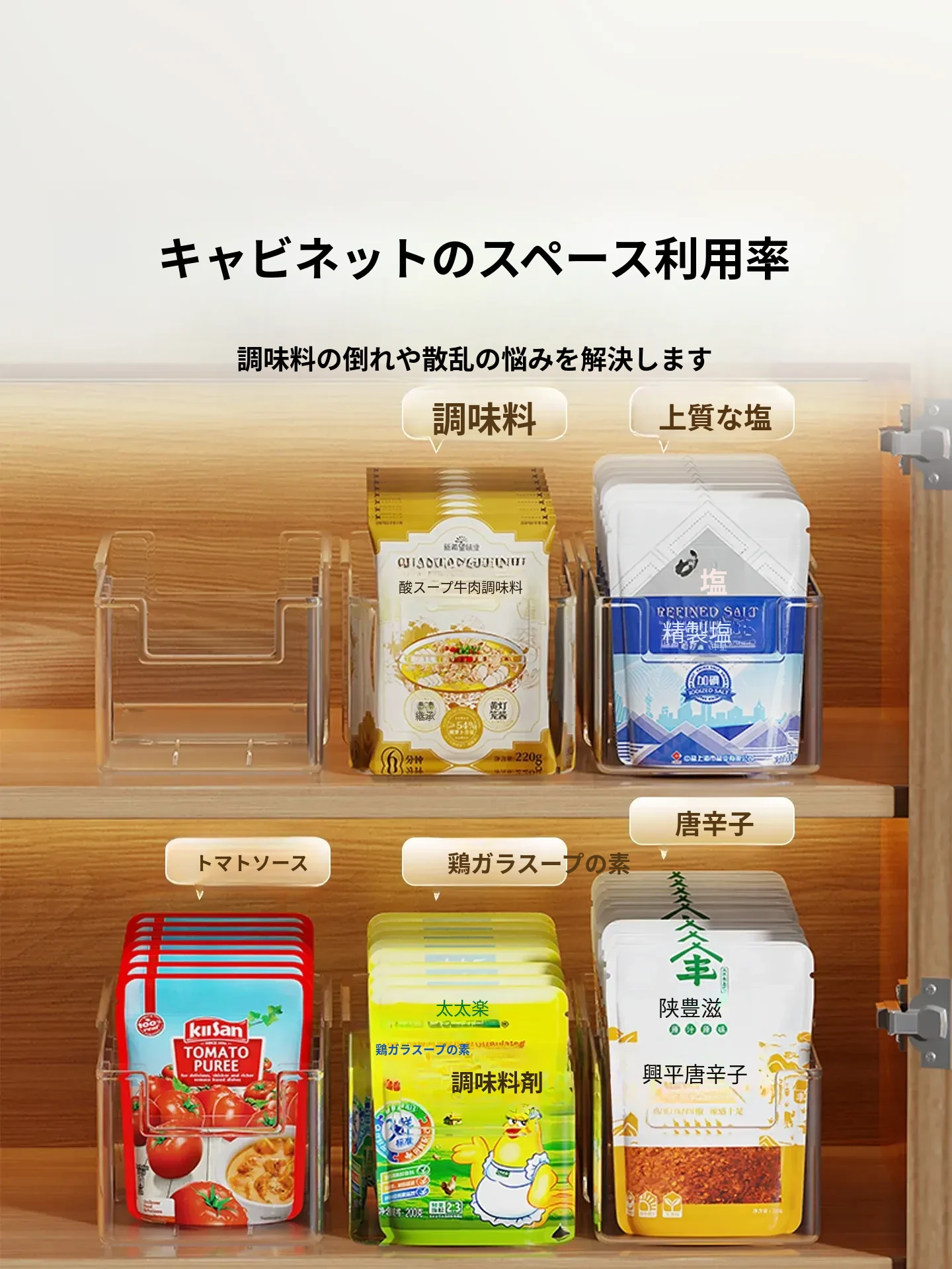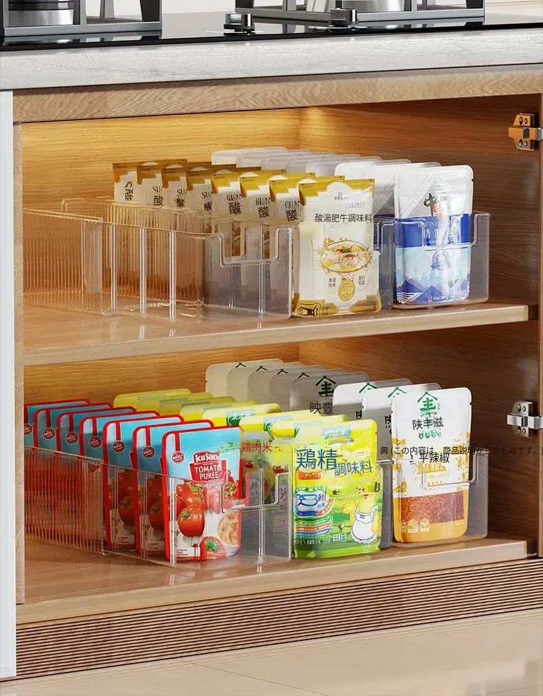 キッチン調味料収納ボックス - 引き出し式仕切りで整理整頓!カウンタートップにぴったりな長方形のスナックラック。スペースを有効活用し、料理をもっと楽しく!