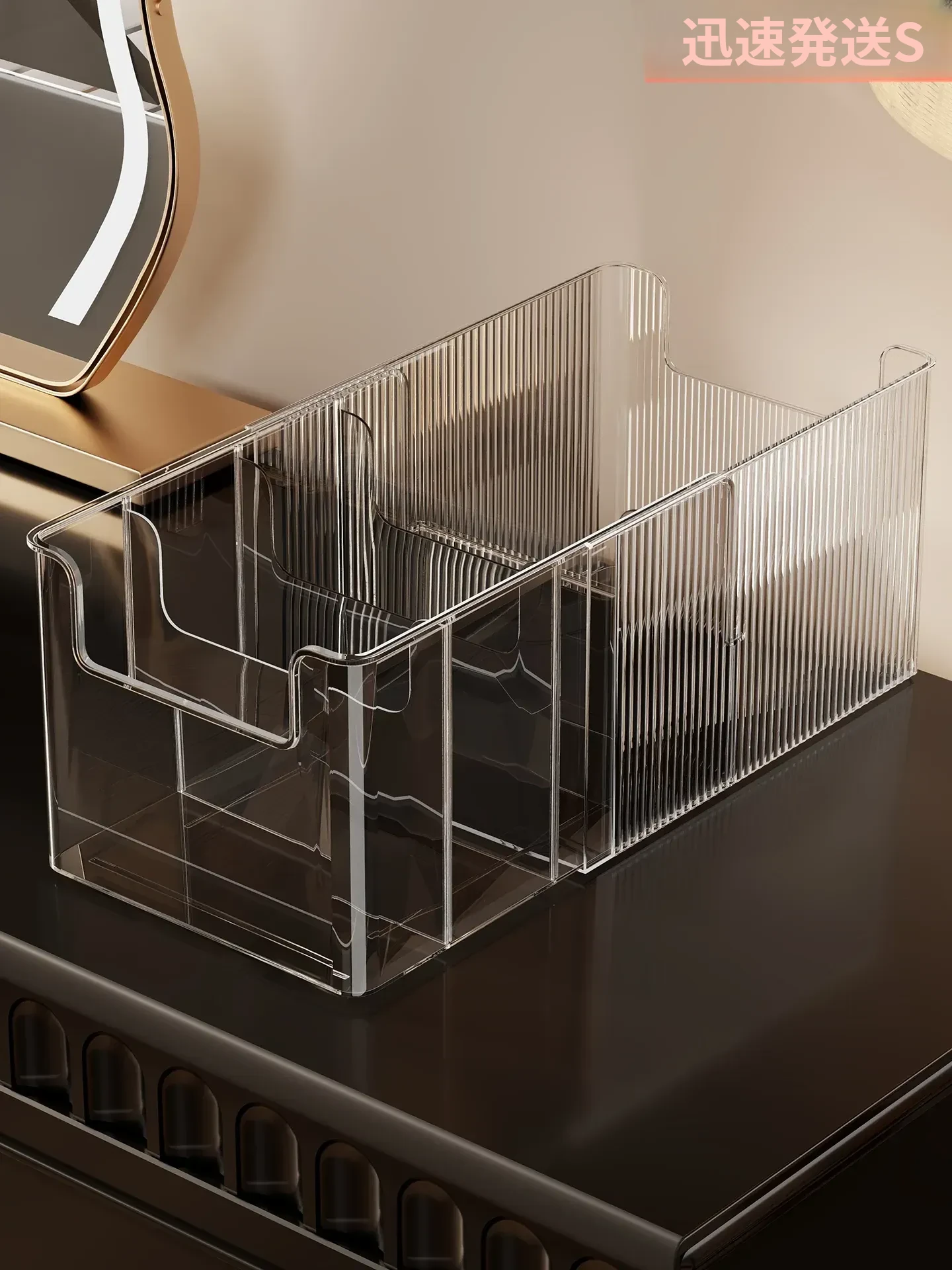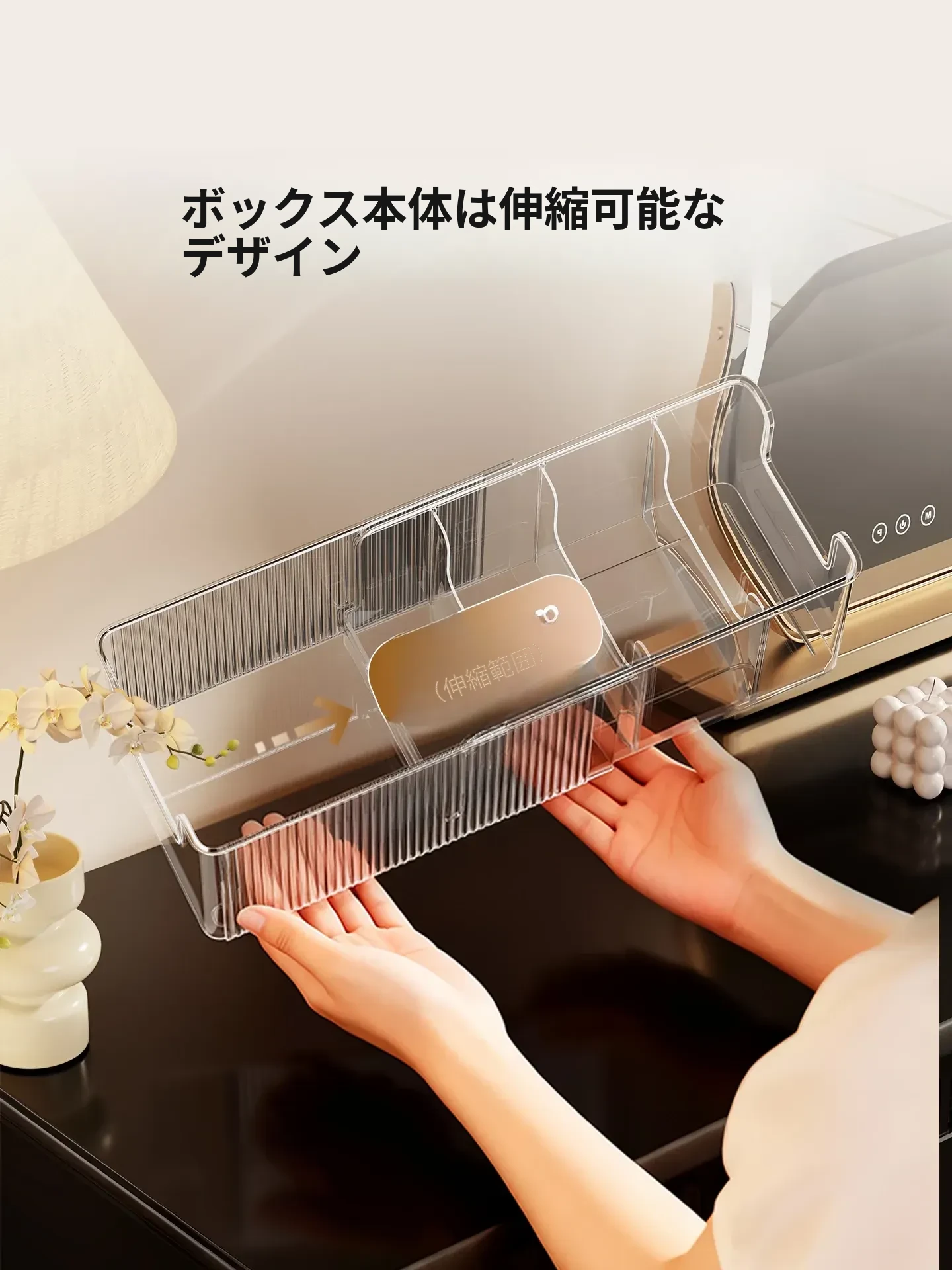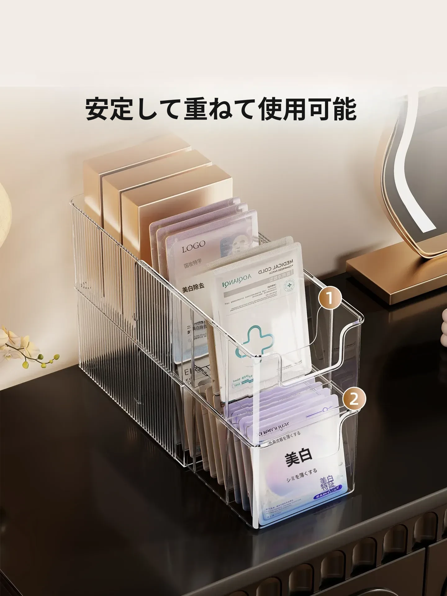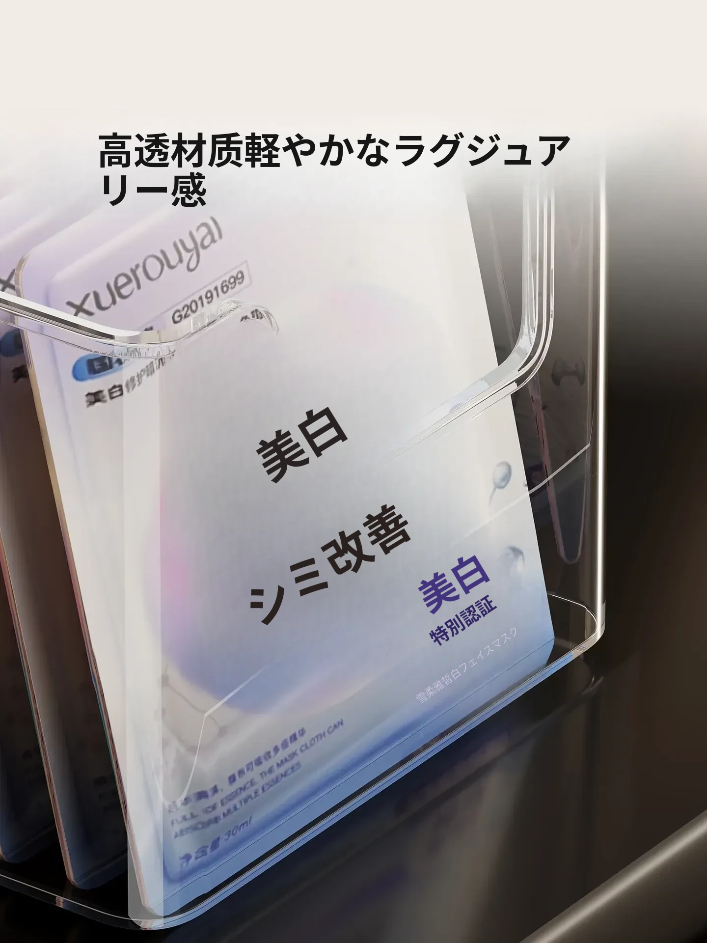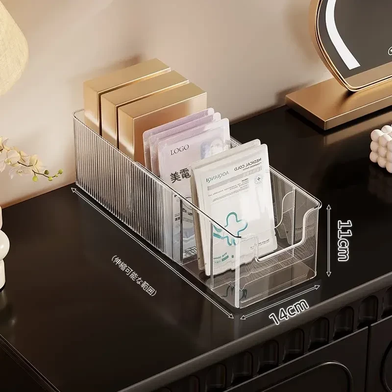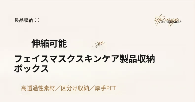 伸縮式フェイスマスク収納ボックス|大容量・透明デザインの化粧品整理ラック|デスクトップでスッキリ!スキンケアアイテムもすっきり収納!