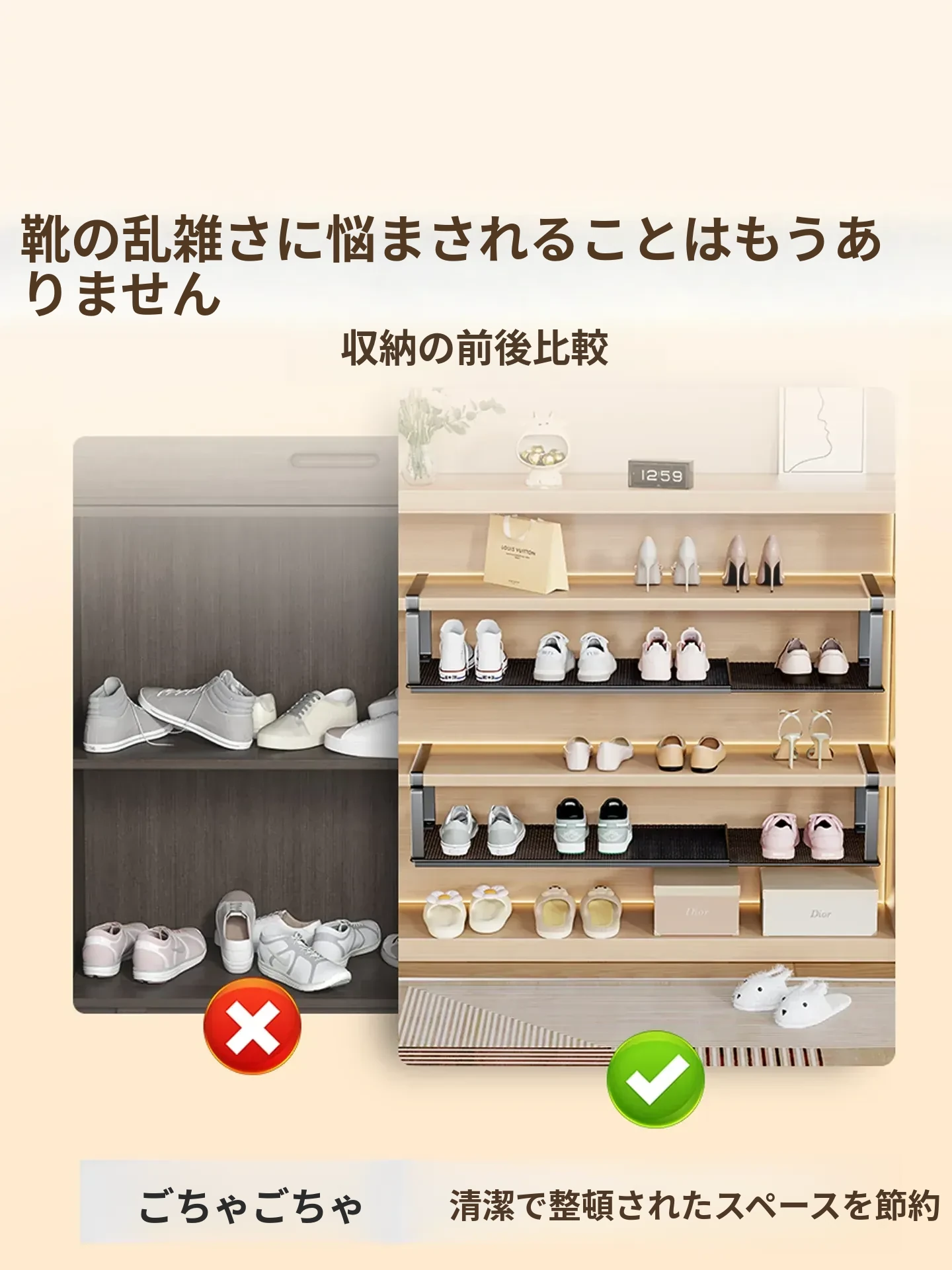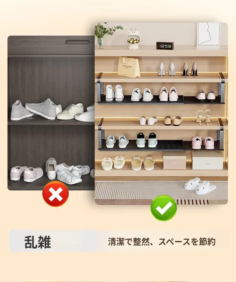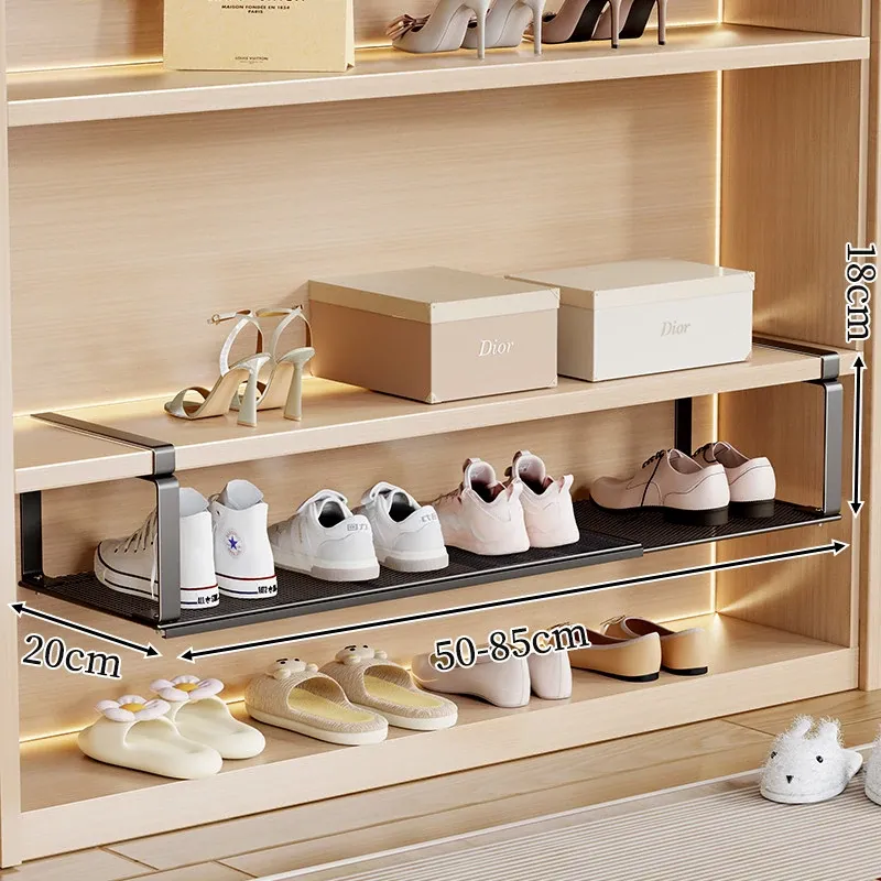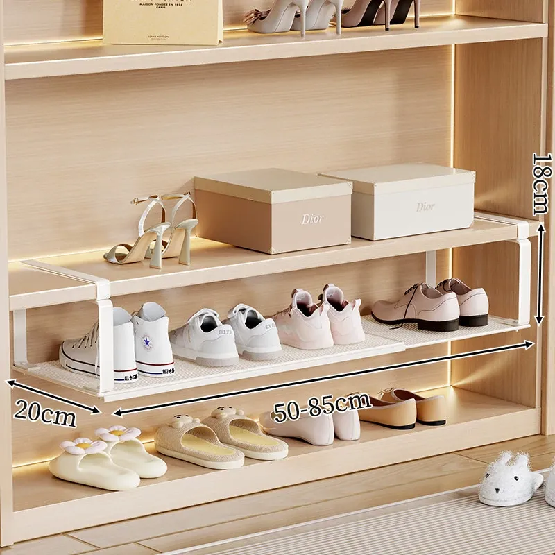 伸縮式シューラック - スペースを有効活用!層状の仕切りで靴をスッキリ収納できる便利アイテム。おしゃれで機能的な靴収納棚で、お部屋を整頓しませんか?