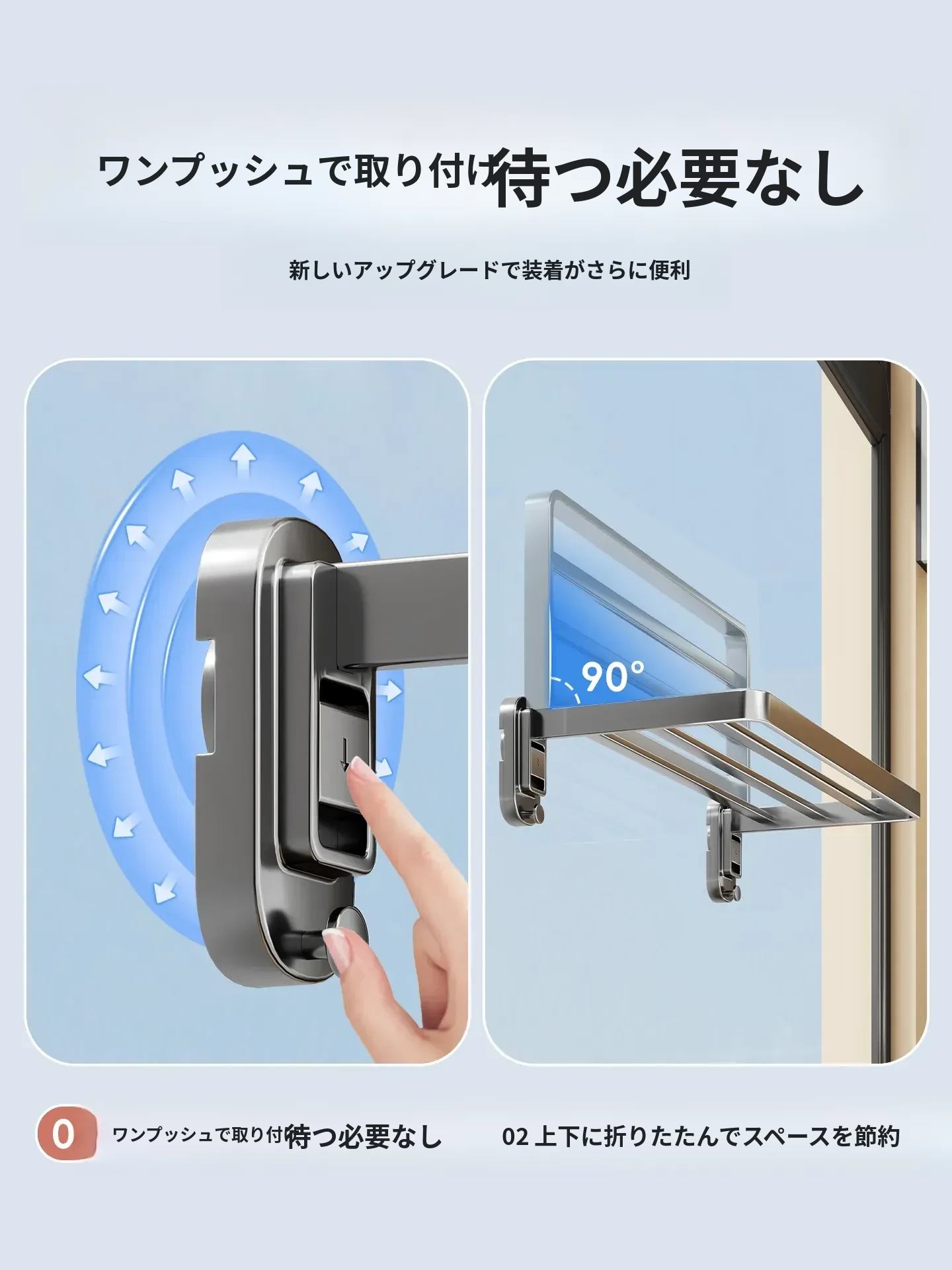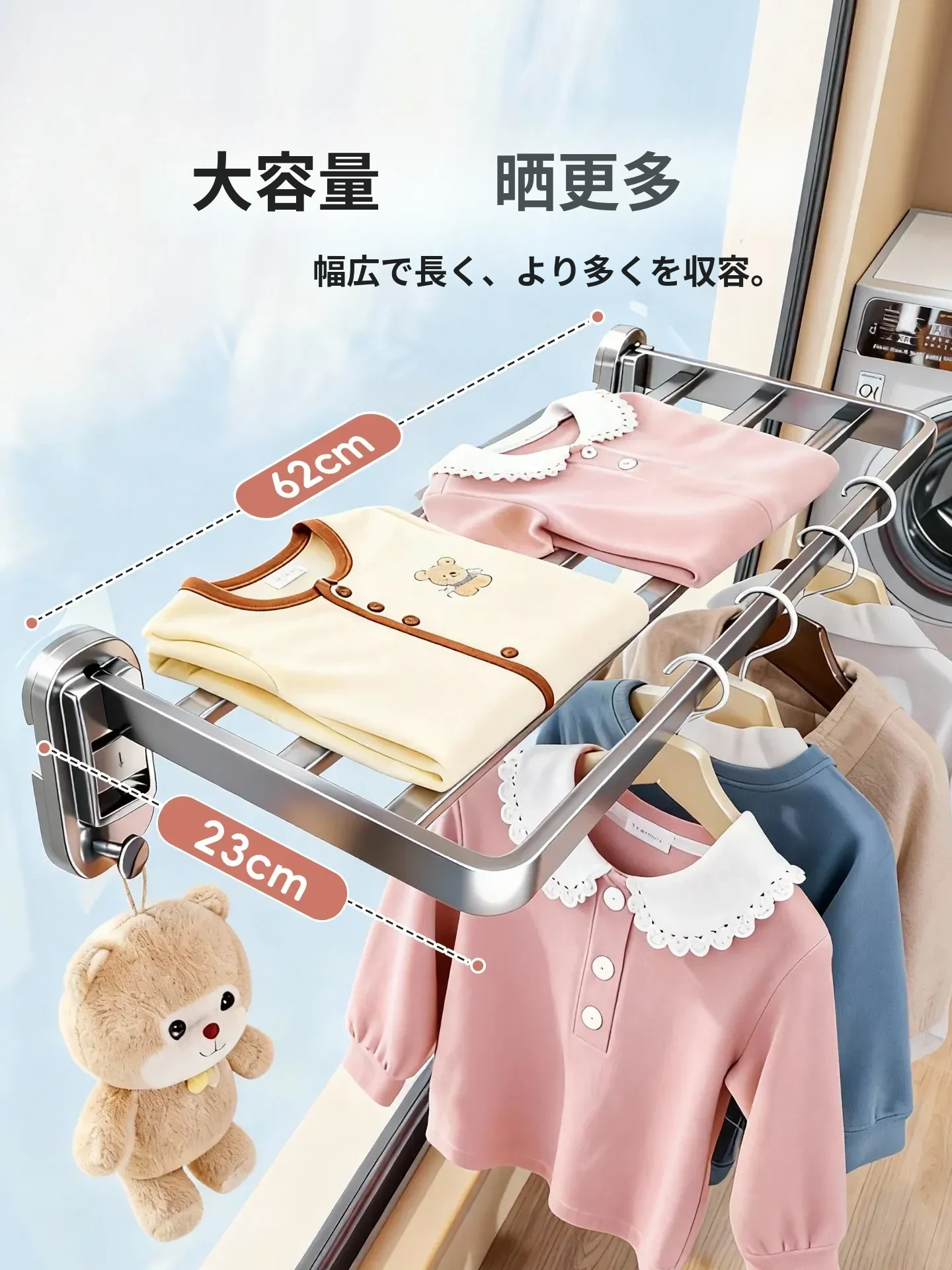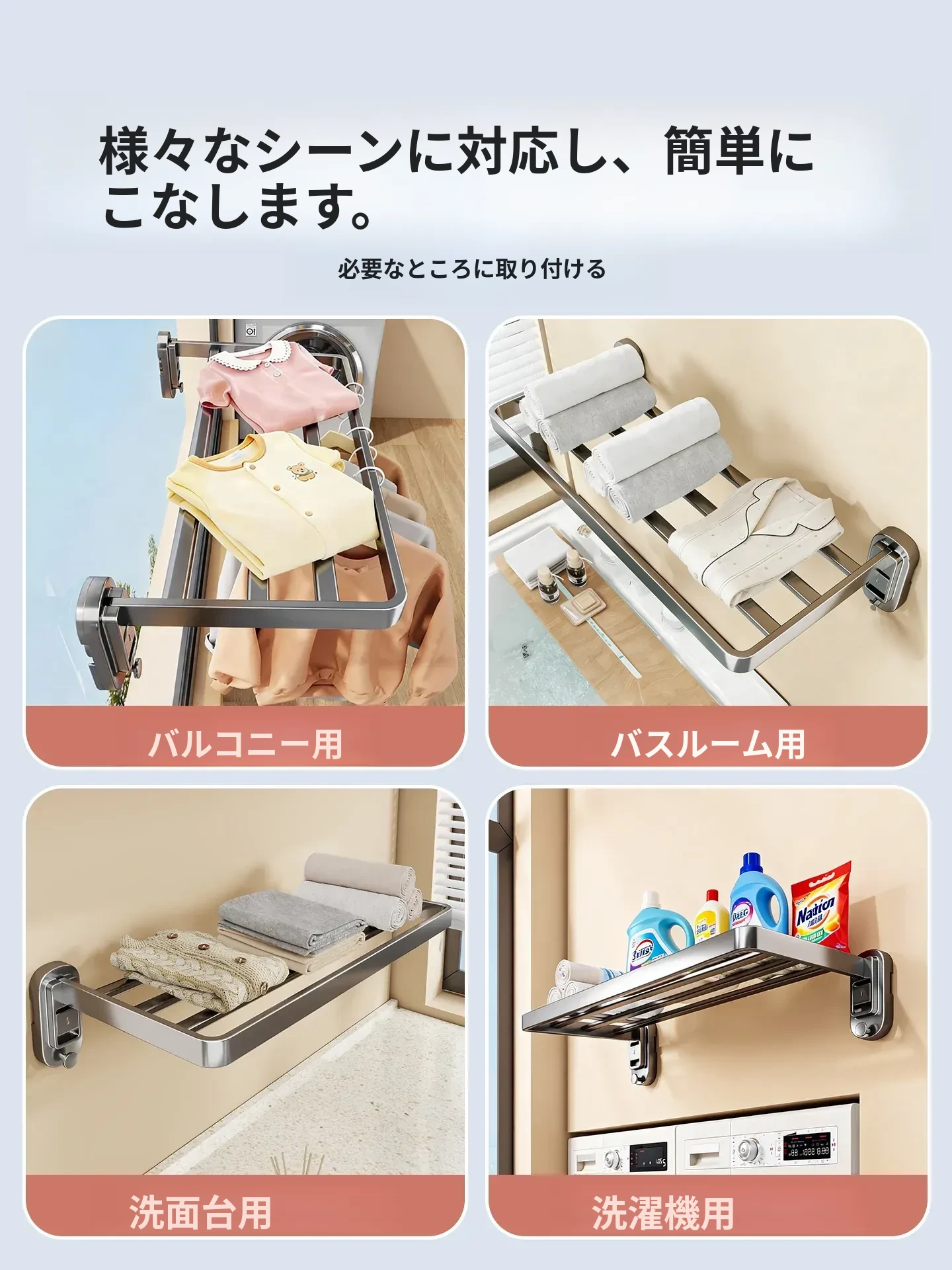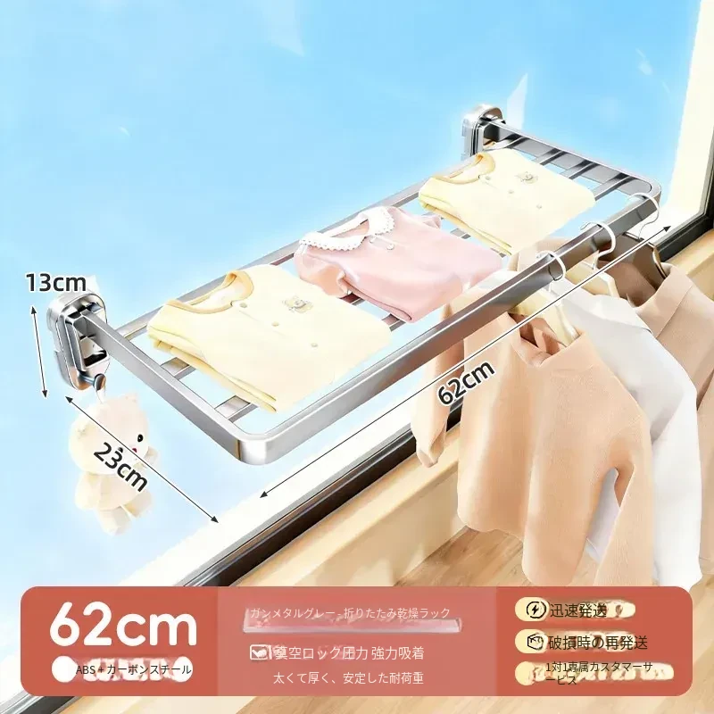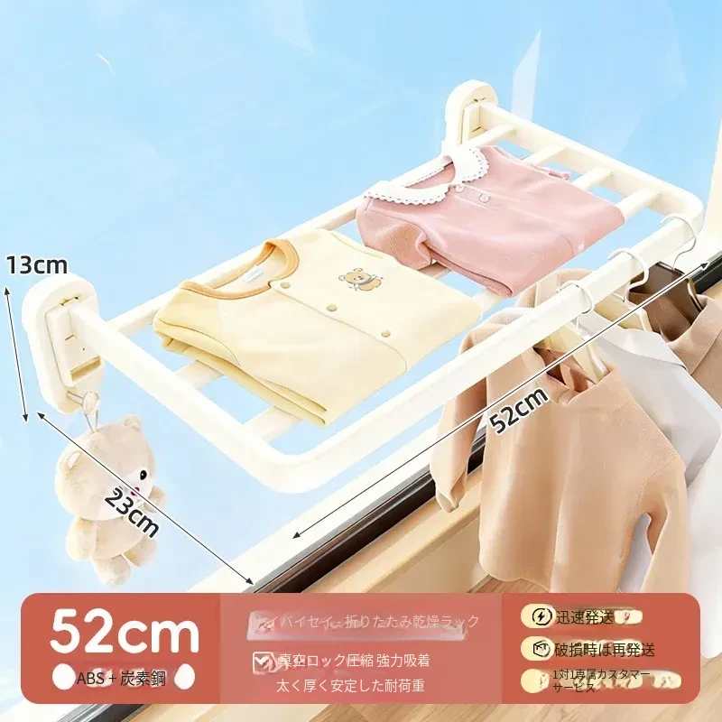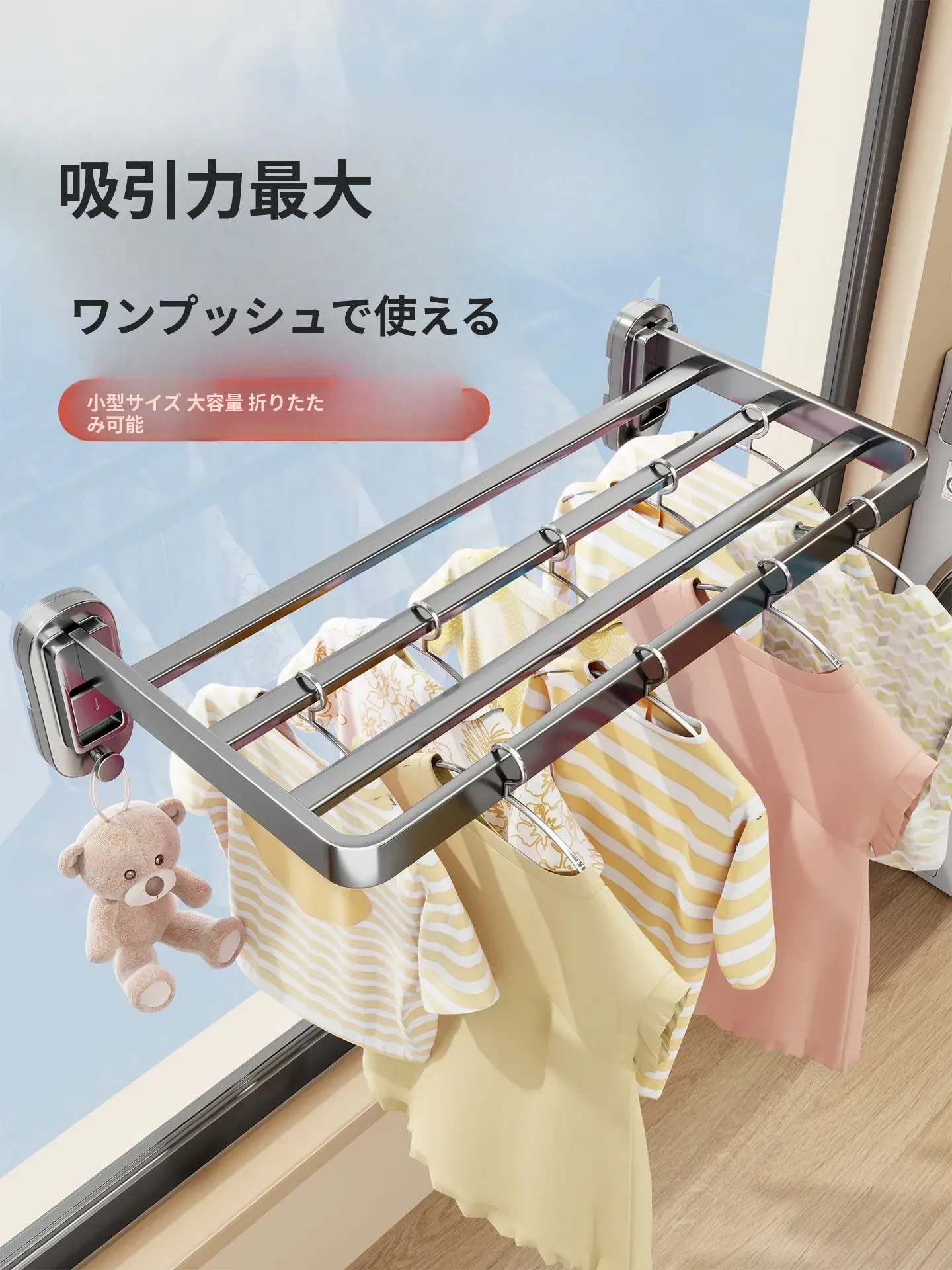 バルコニー用大容量折りたたみ式衣類干しラック - 吸盤付き窓用衣類干しポール、室内でも靴の収納に最適!あなたの生活をもっと便利にする必需品!