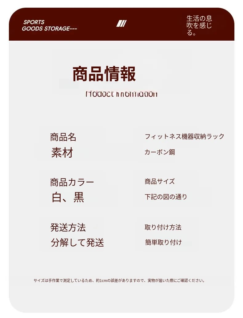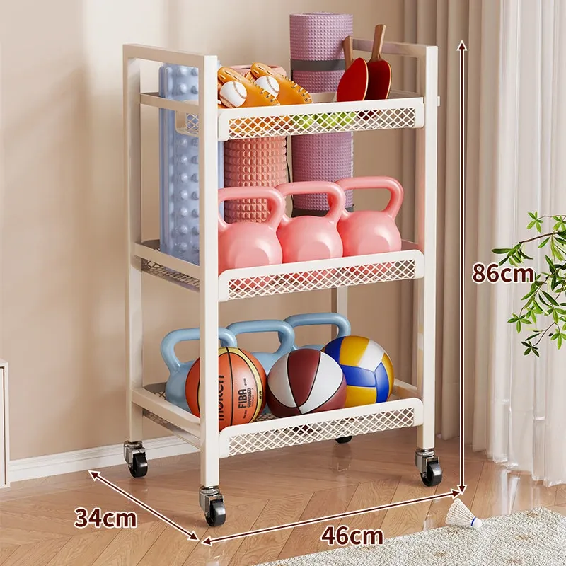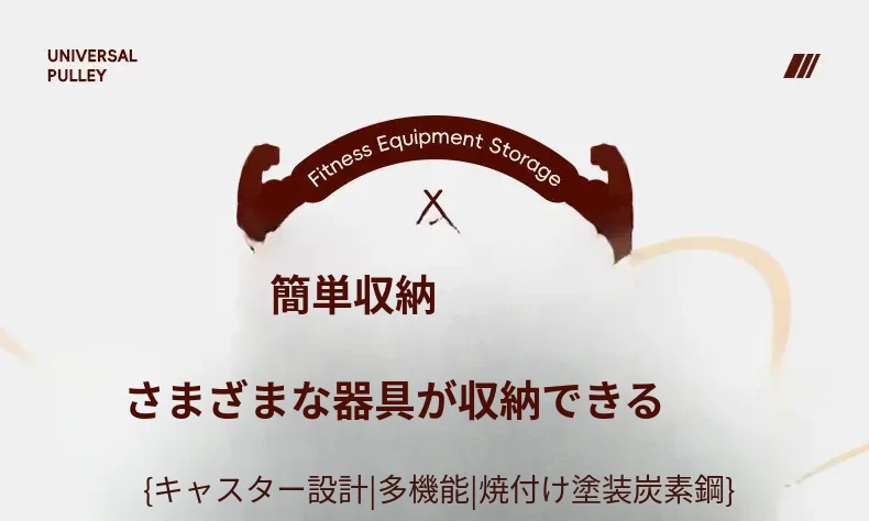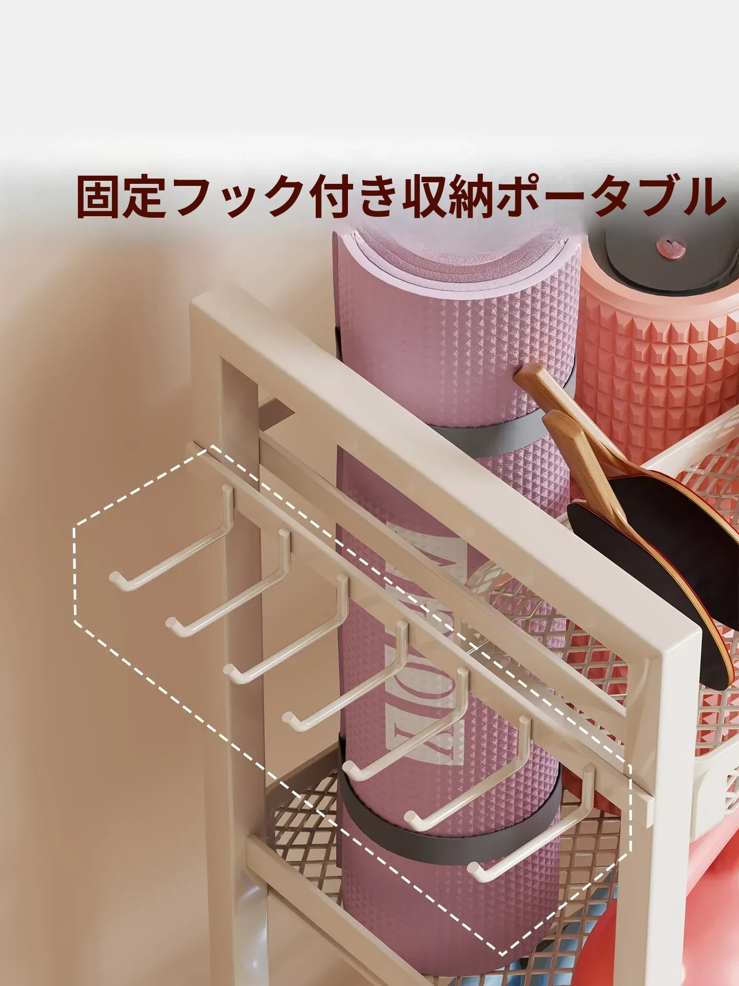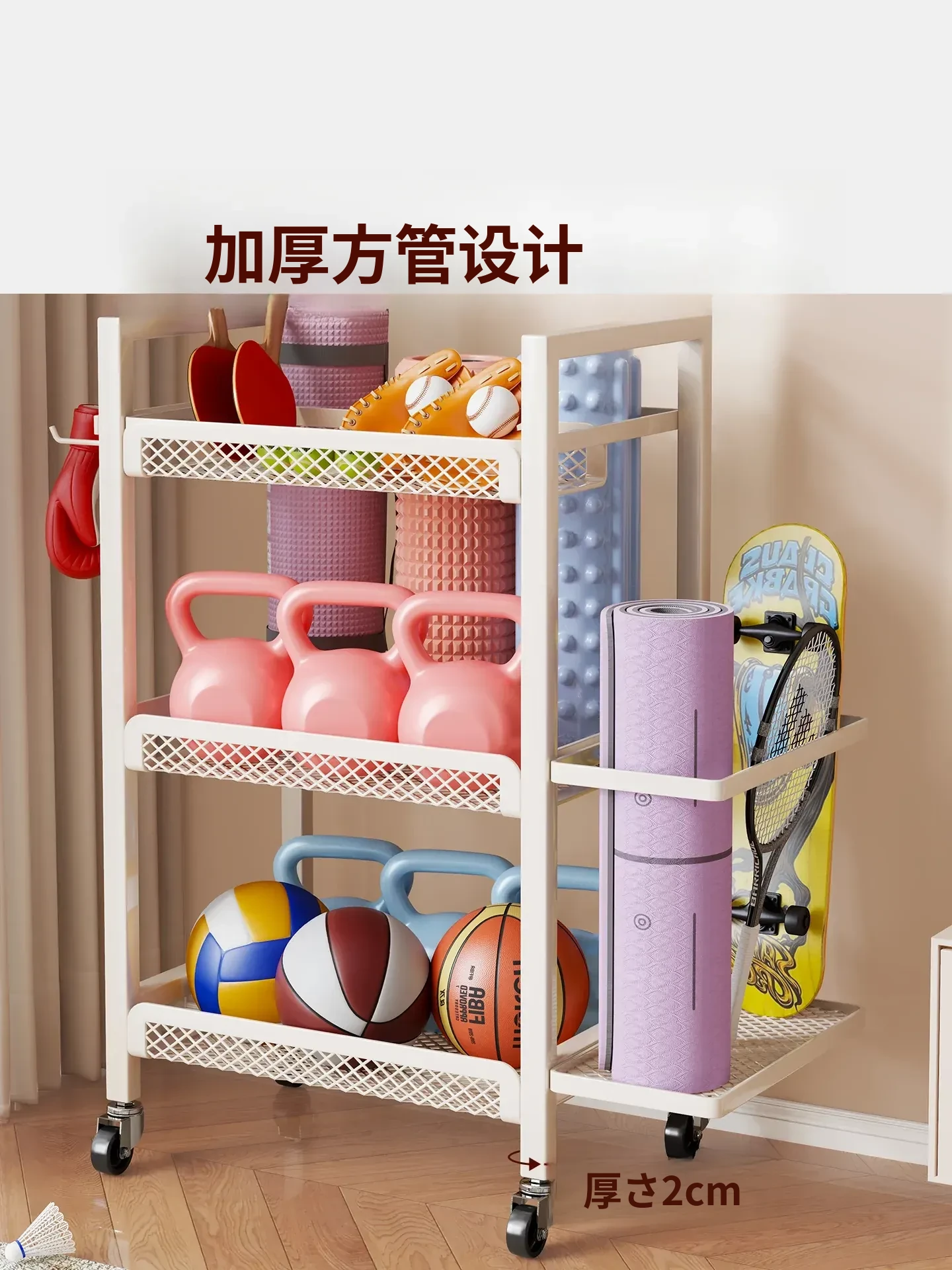 フィットネス器具収納ラック 大容量・移動可能!ヨガマット、ダンベル、ケトルベル、スポーツボールをすっきり整理。おしゃれで機能的なデザインで、お家の運動空間をもっと快適に!