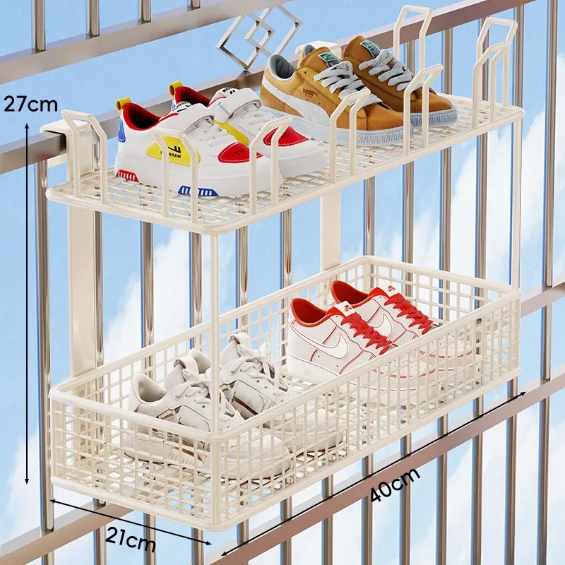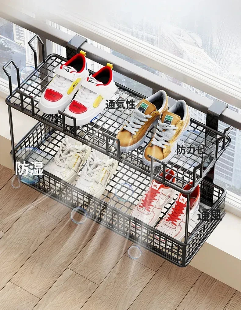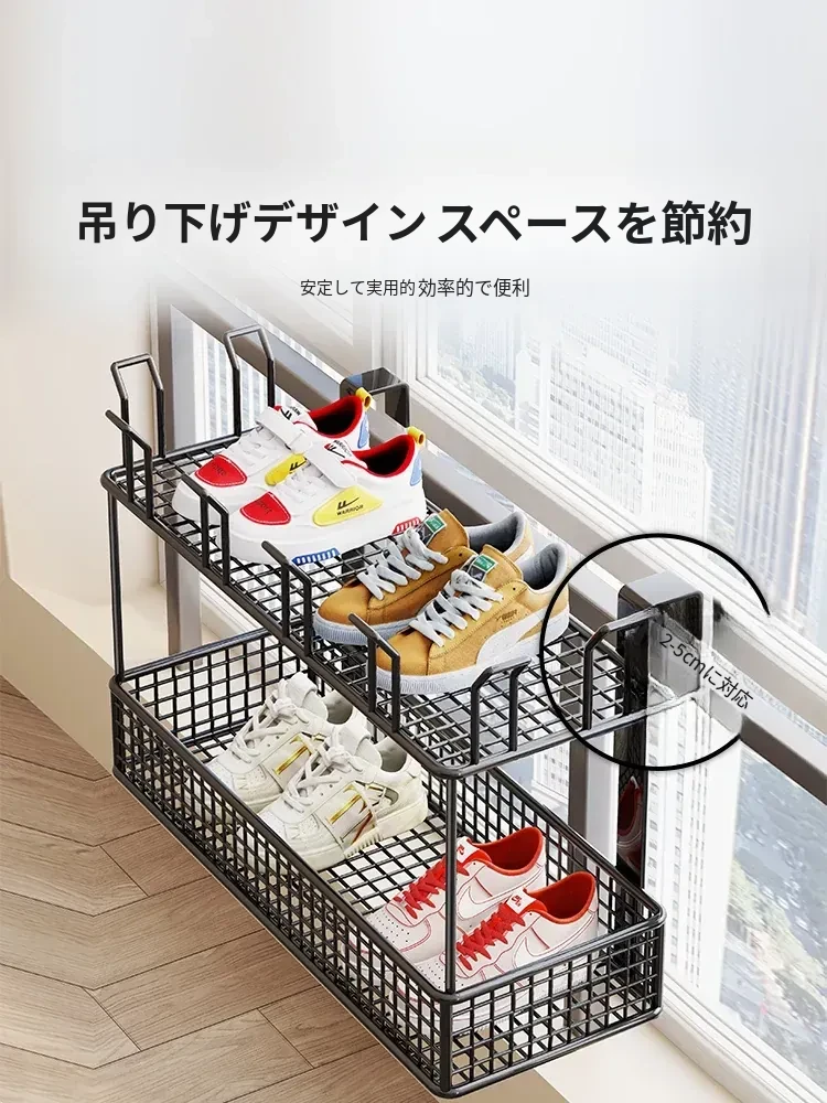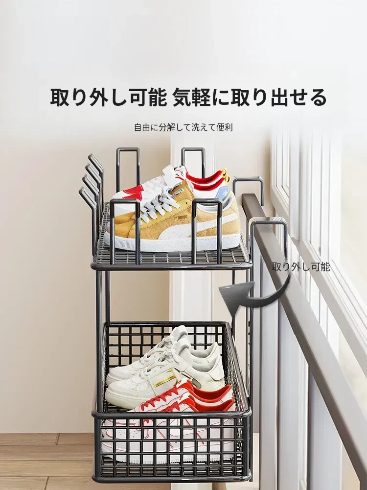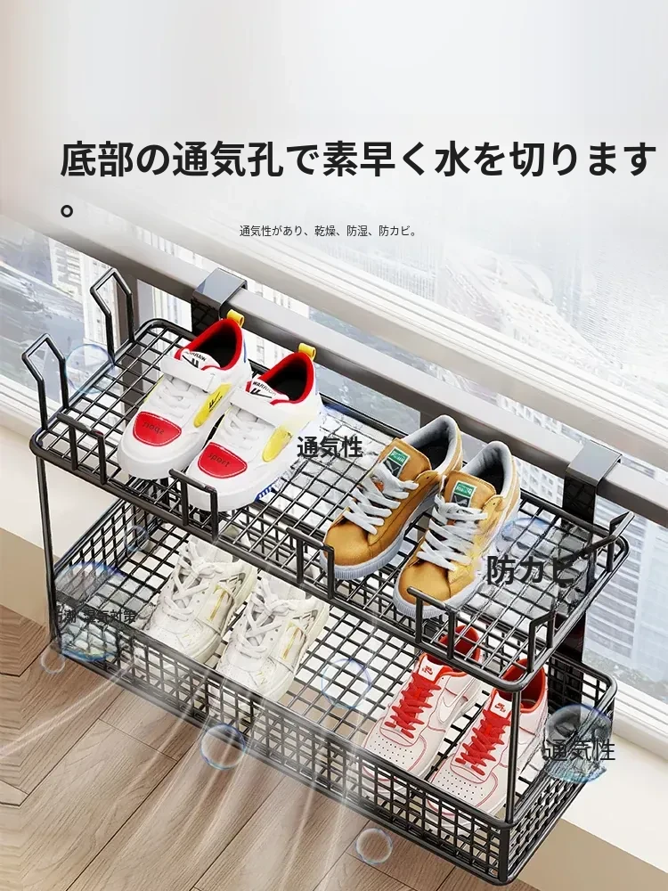 バルコニー用ハンギングシューラック!洗濯物も干せる多機能ソックス乾燥ラック。家の窓辺や屋外で大活躍!靴をおしゃれに乾かして、スペースを有効活用しましょう!