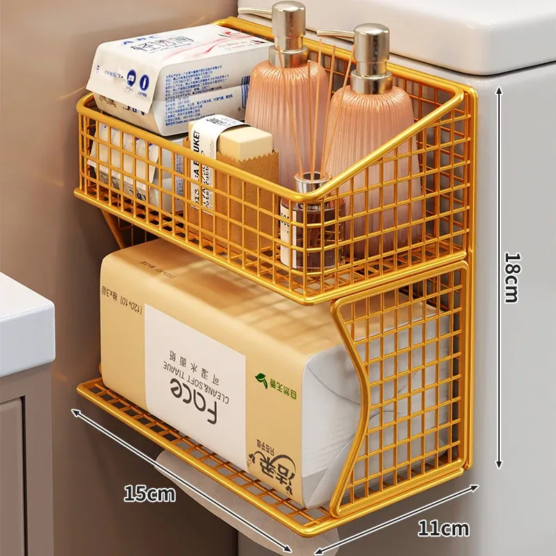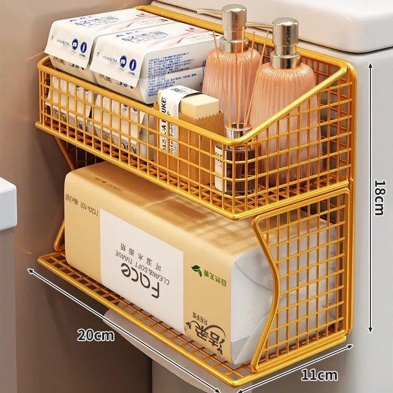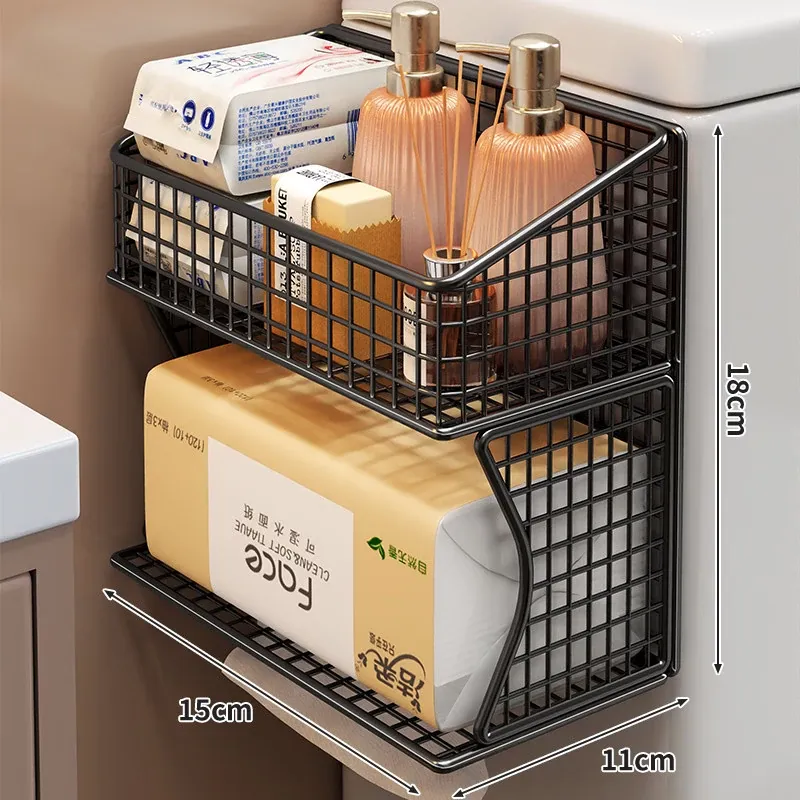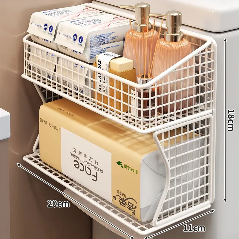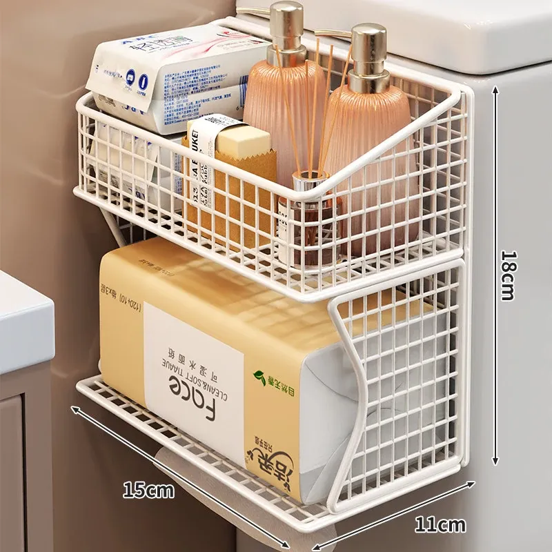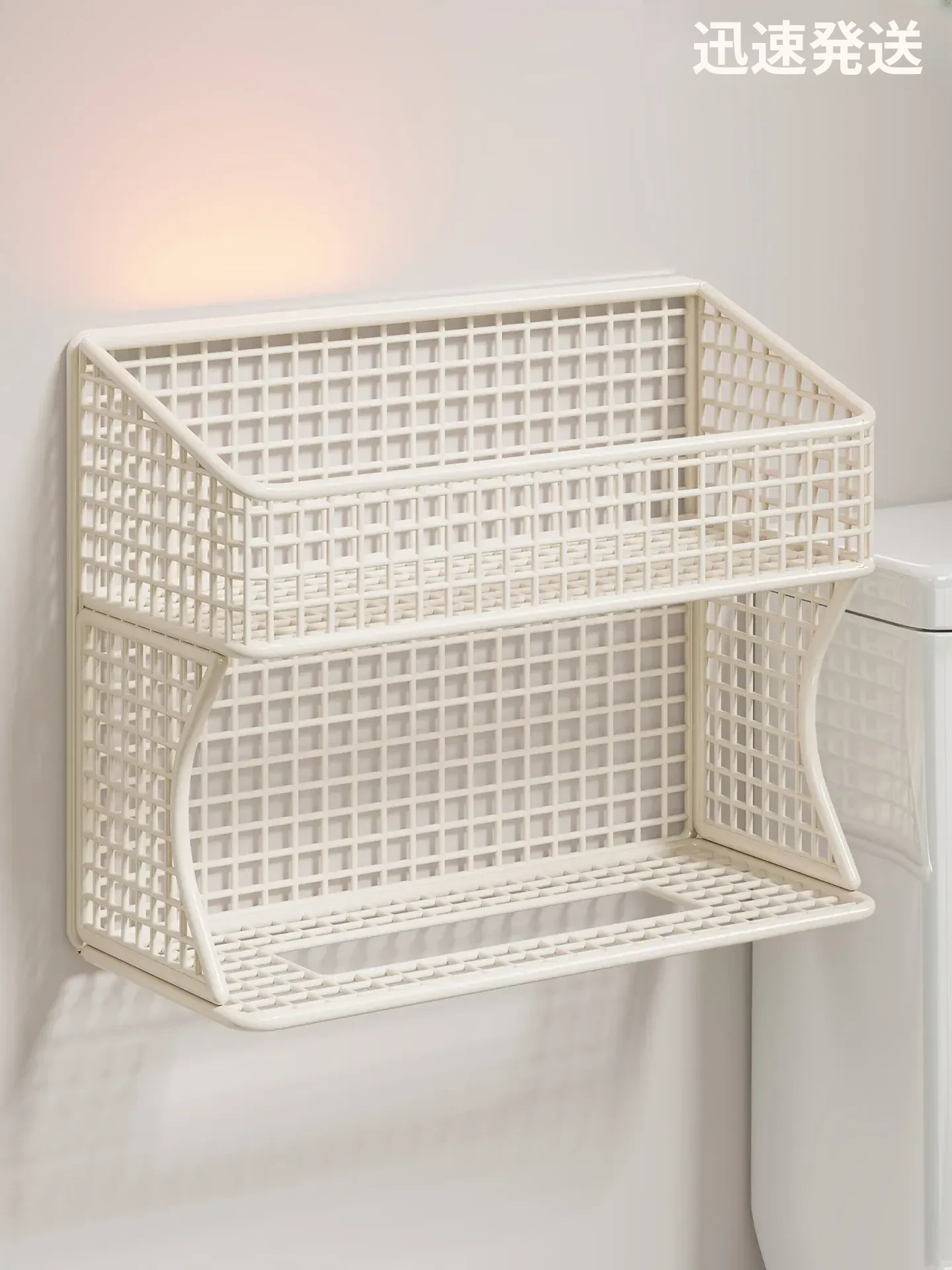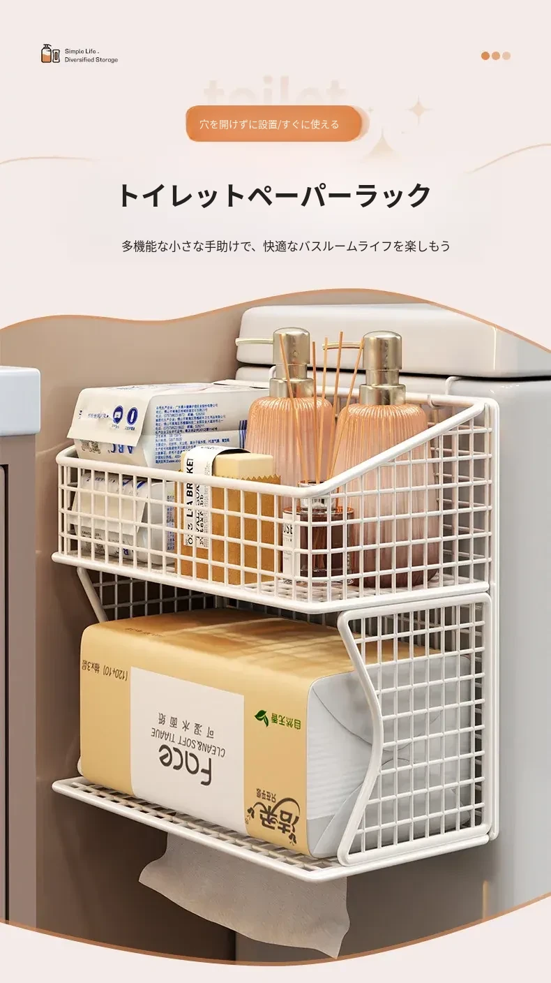 トイレ用多機能ペーパーボックス - 穴あけ不要で簡単取り付け!壁掛け式デザインで、洗面所やバスルームにぴったり。すっきりとした収納で、トイレをスタイリッシュに保つ!