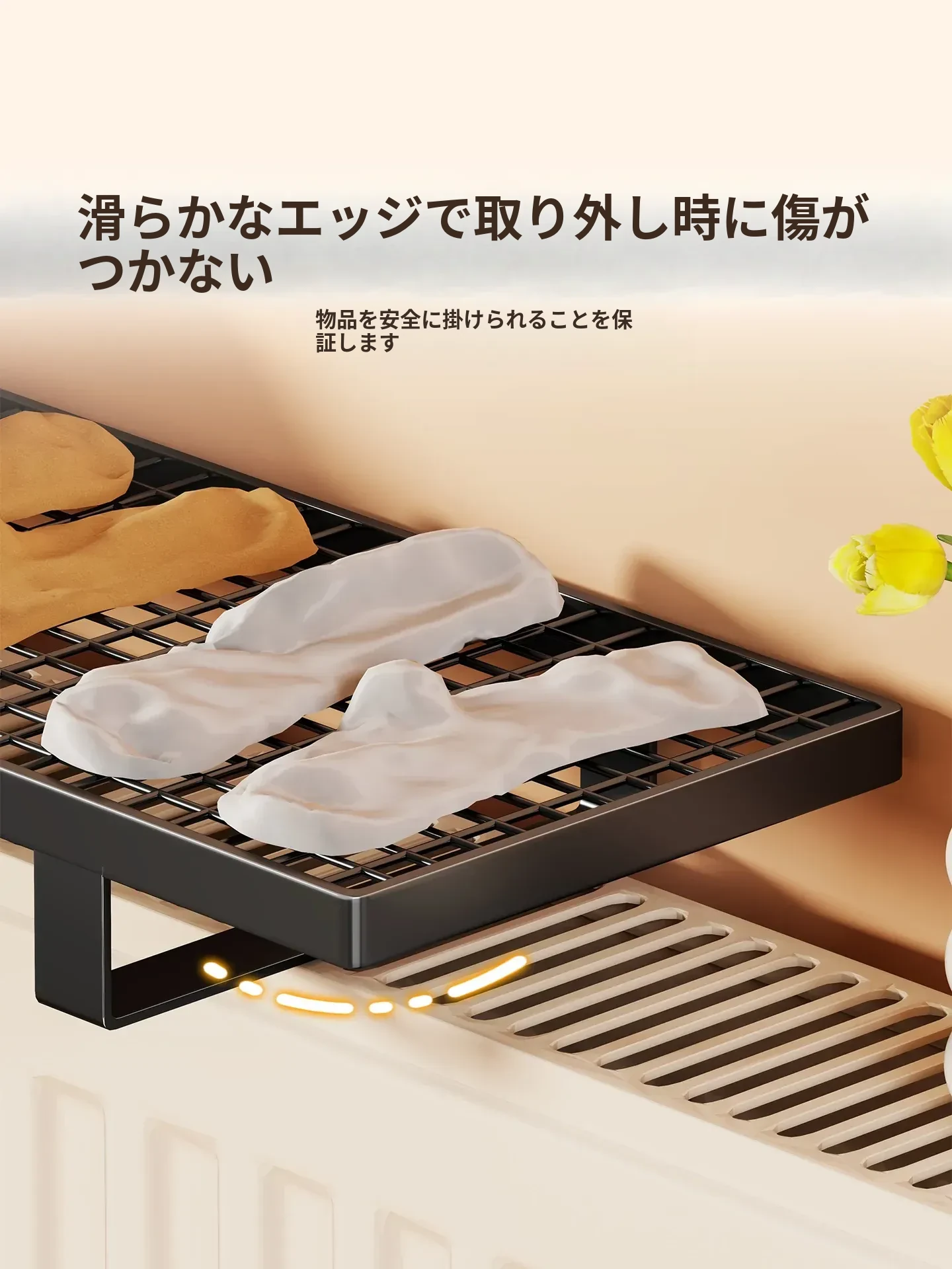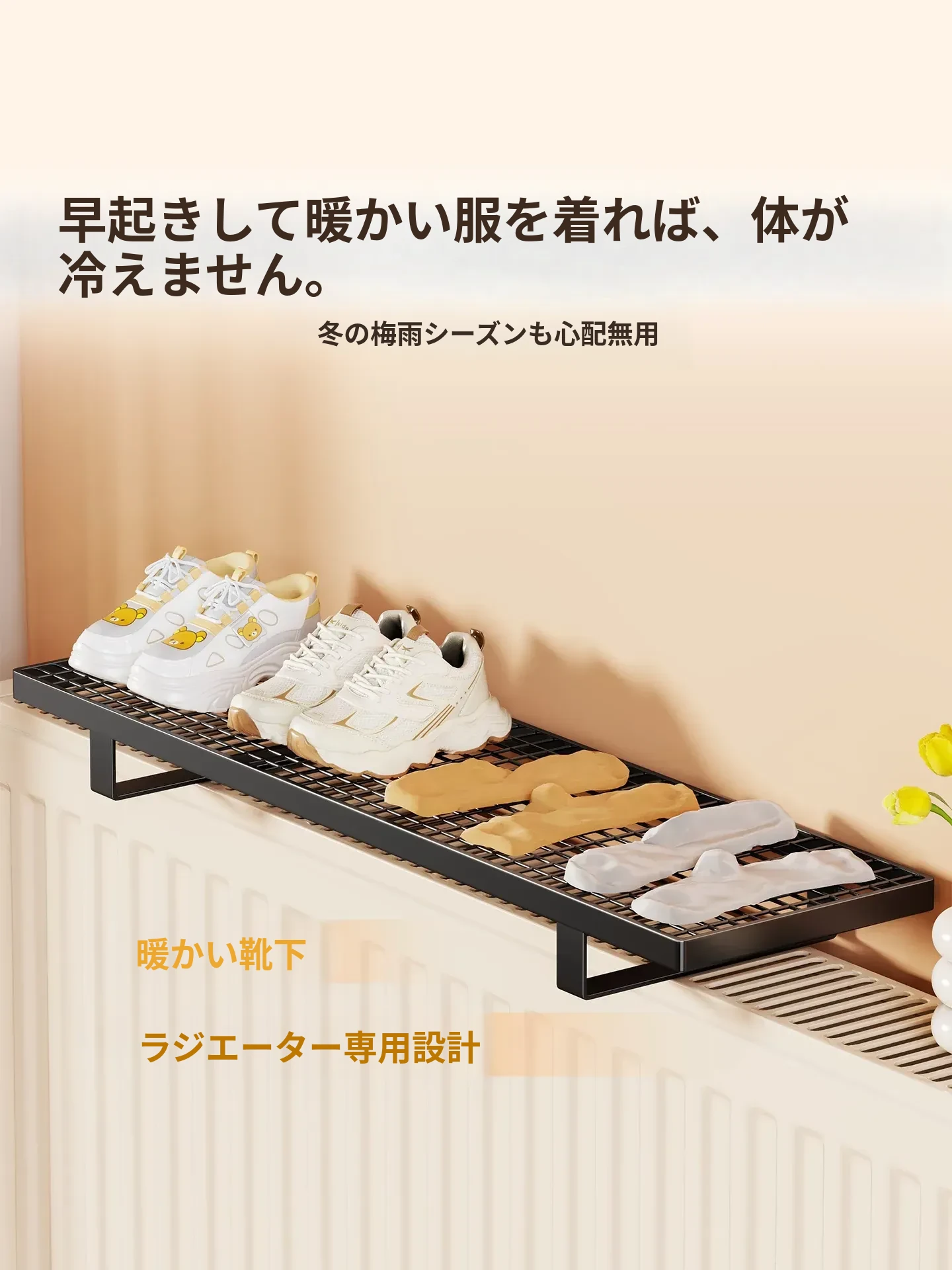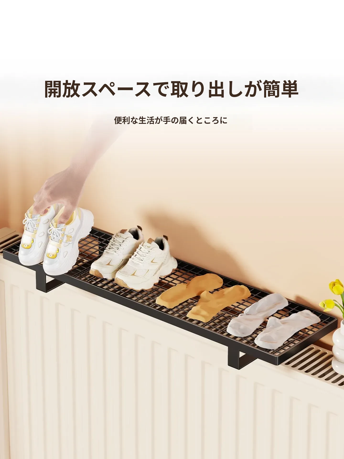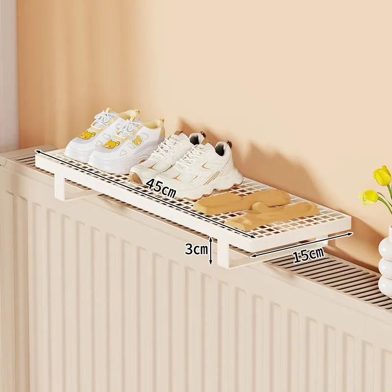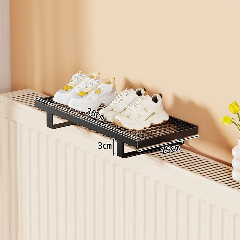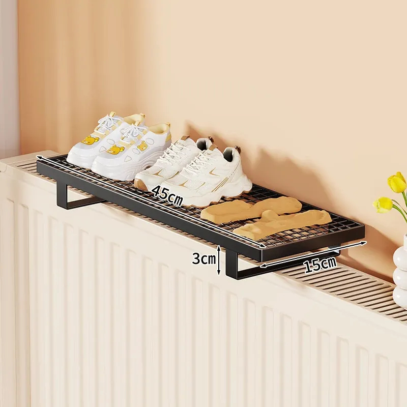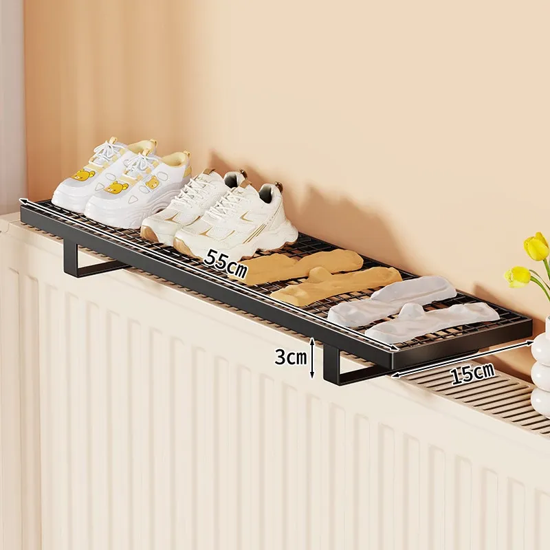 暖房用物置きラック!衣類干しに最適なフック付きハンガー、多機能シューラック!穴あけ不要で簡単取り付け、素敵なインテリアでお部屋をオシャレに演出!