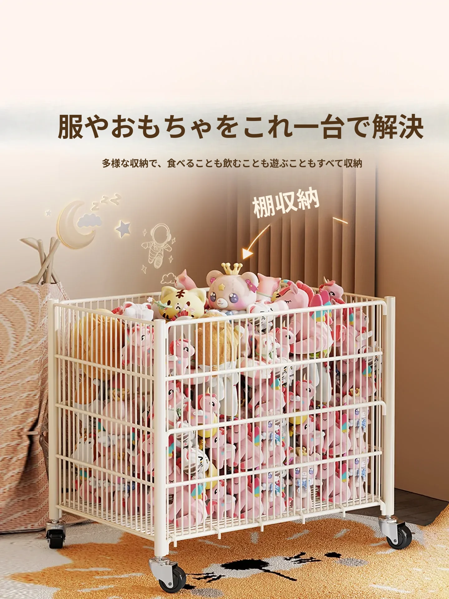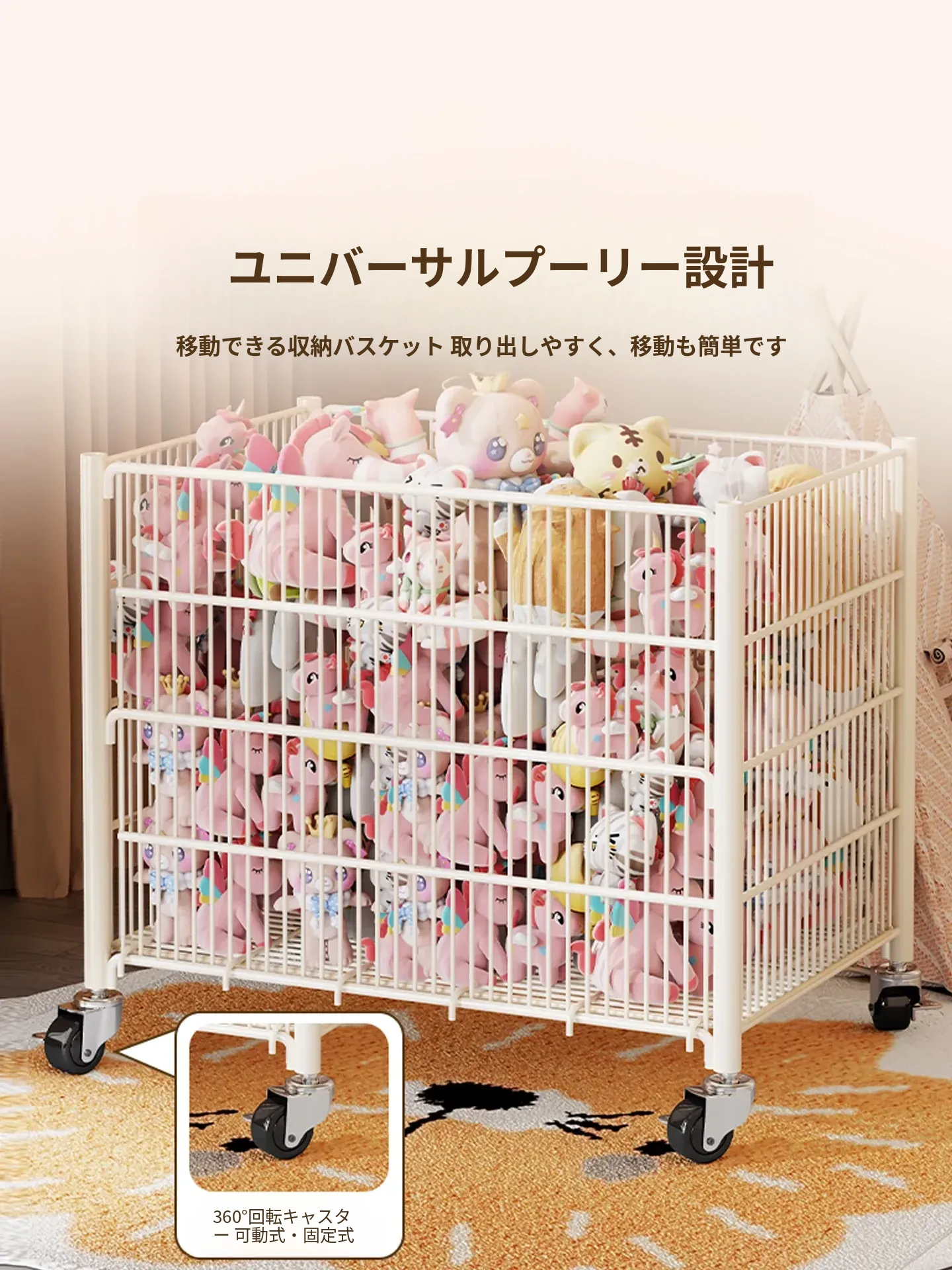 おもちゃ収納ラック 大容量のぬいぐるみ収納バスケット 子供部屋に最適!多機能スタンド式小型カート収納ラックで、お部屋をすっきり整理整頓!
