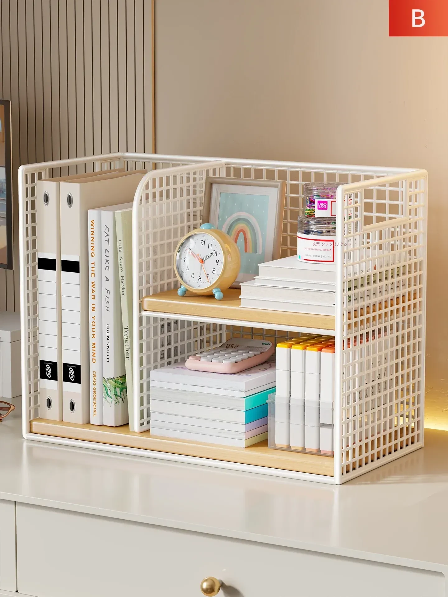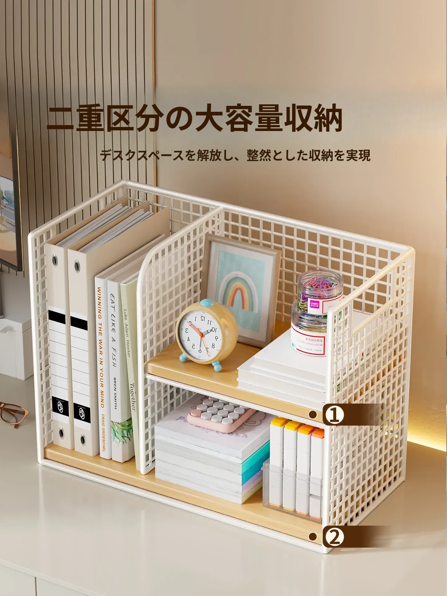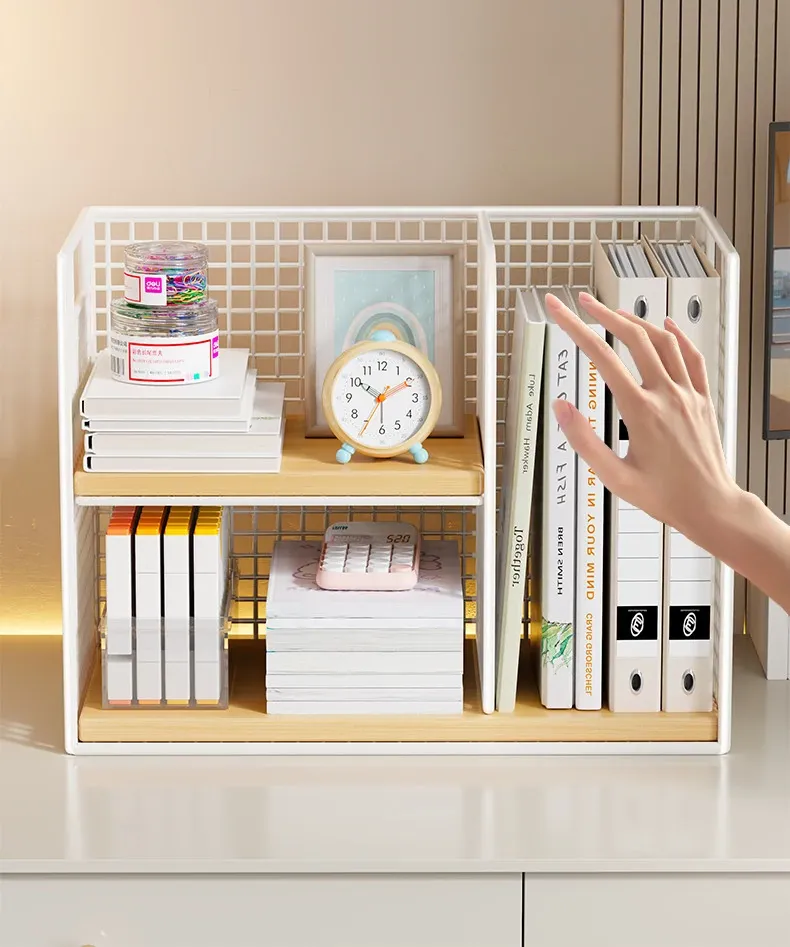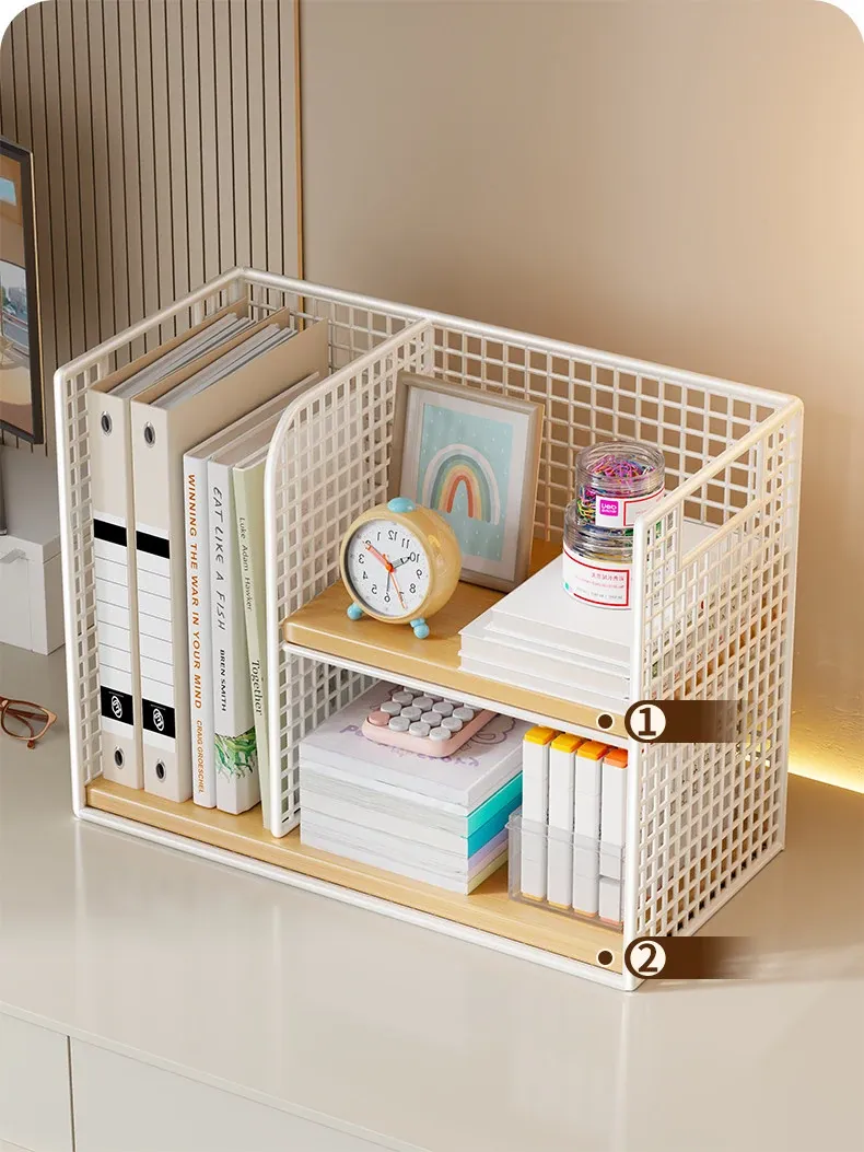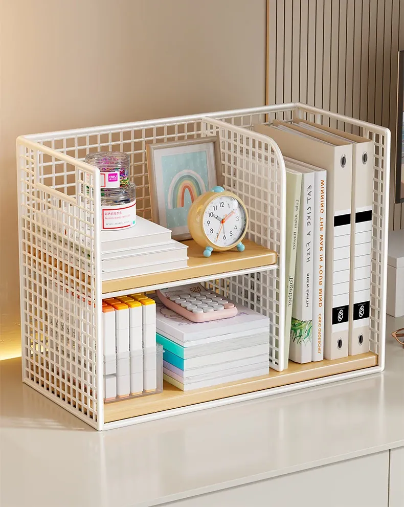 おしゃれで機能的!家庭用・子供用デスクにぴったりな多段式収納ラック - 本やファイルをスッキリ整理できるコンパクトなデザイン!オフィスでも大活躍!