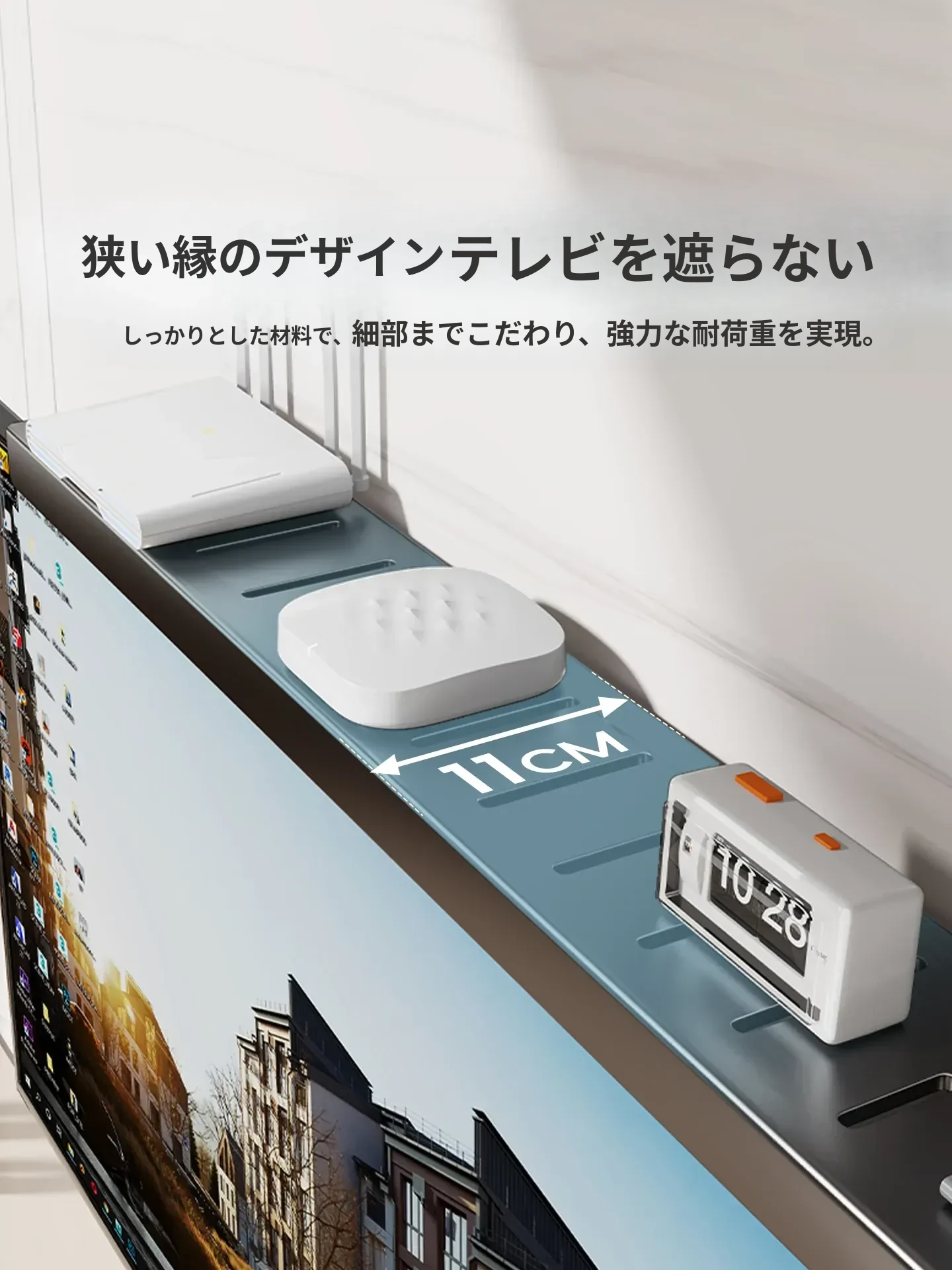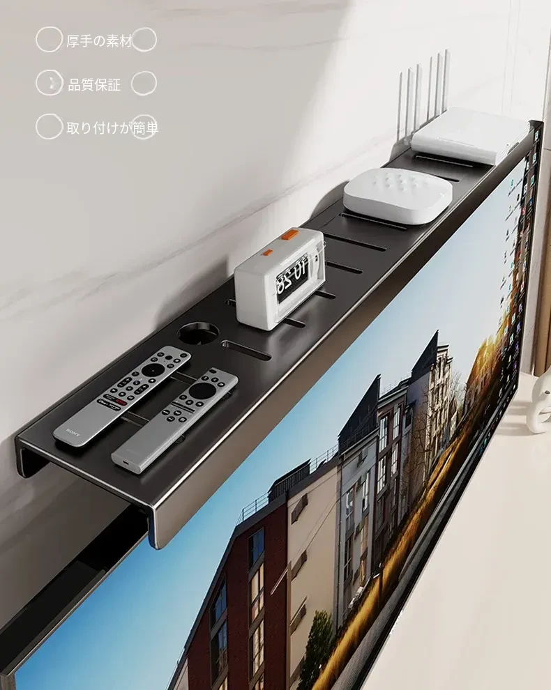 穴を開けずに設置できるテレビボックス収納ラック!冷間圧延鋼製のスタイリッシュな収納ボックス、ルーターもすっきり収納できる壁掛けスタンド。お部屋をスッキリさせ、インテリアにも最適!