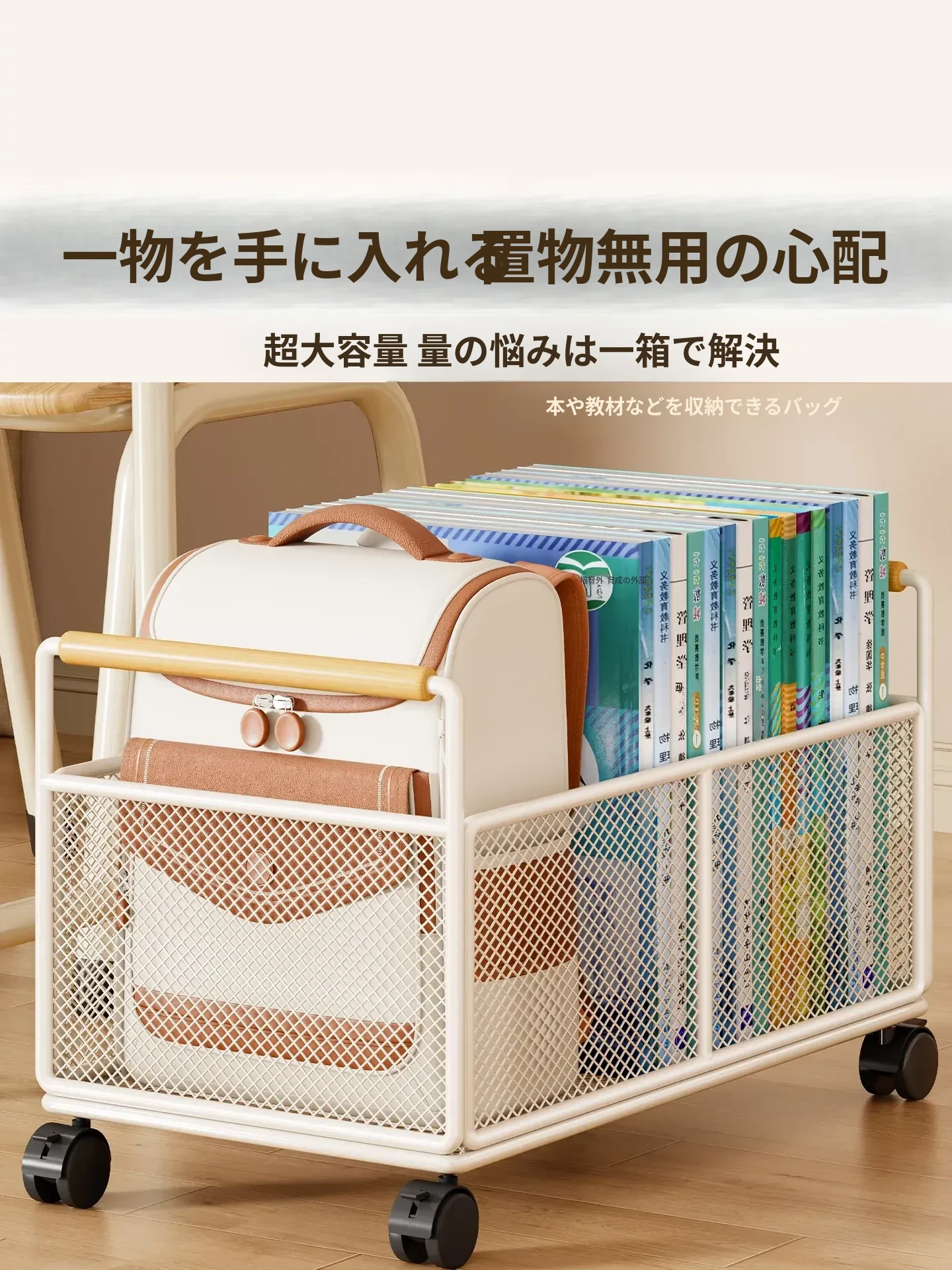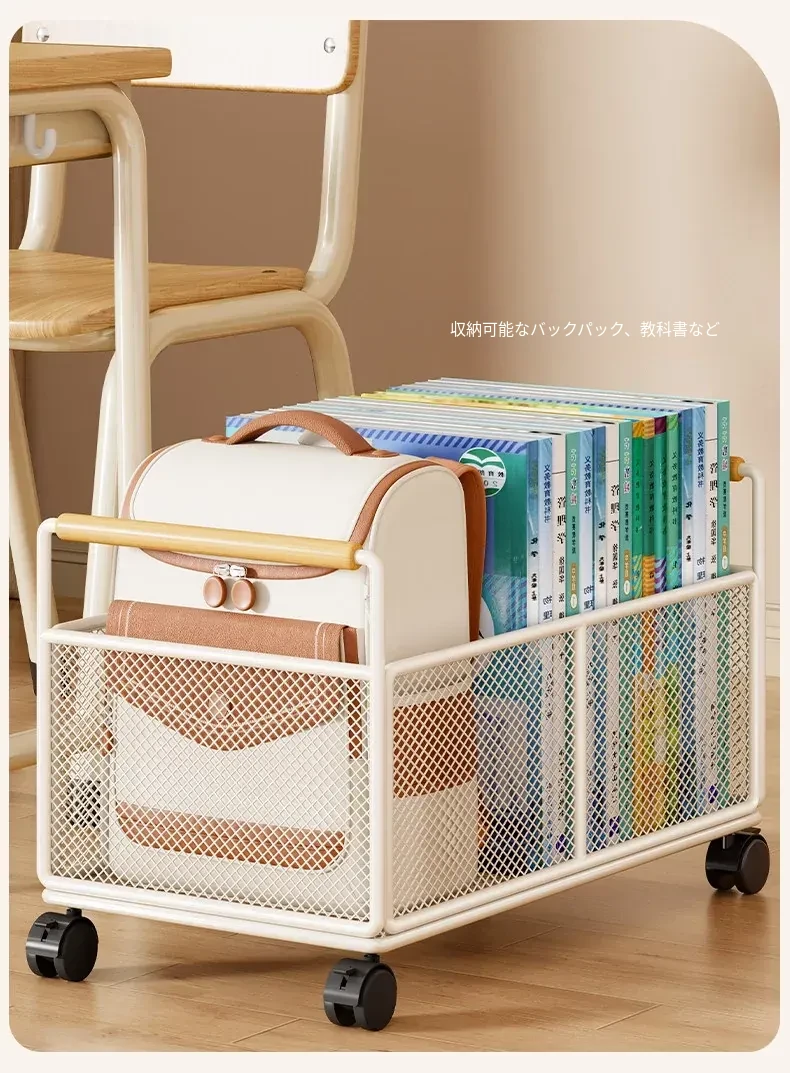 教室必備!可移动書包置物架・小推車型書本整理架、デスク下にぴったり収まる収納神器!学生の学習環境を整え、教科書や文房具をスッキリ整理!