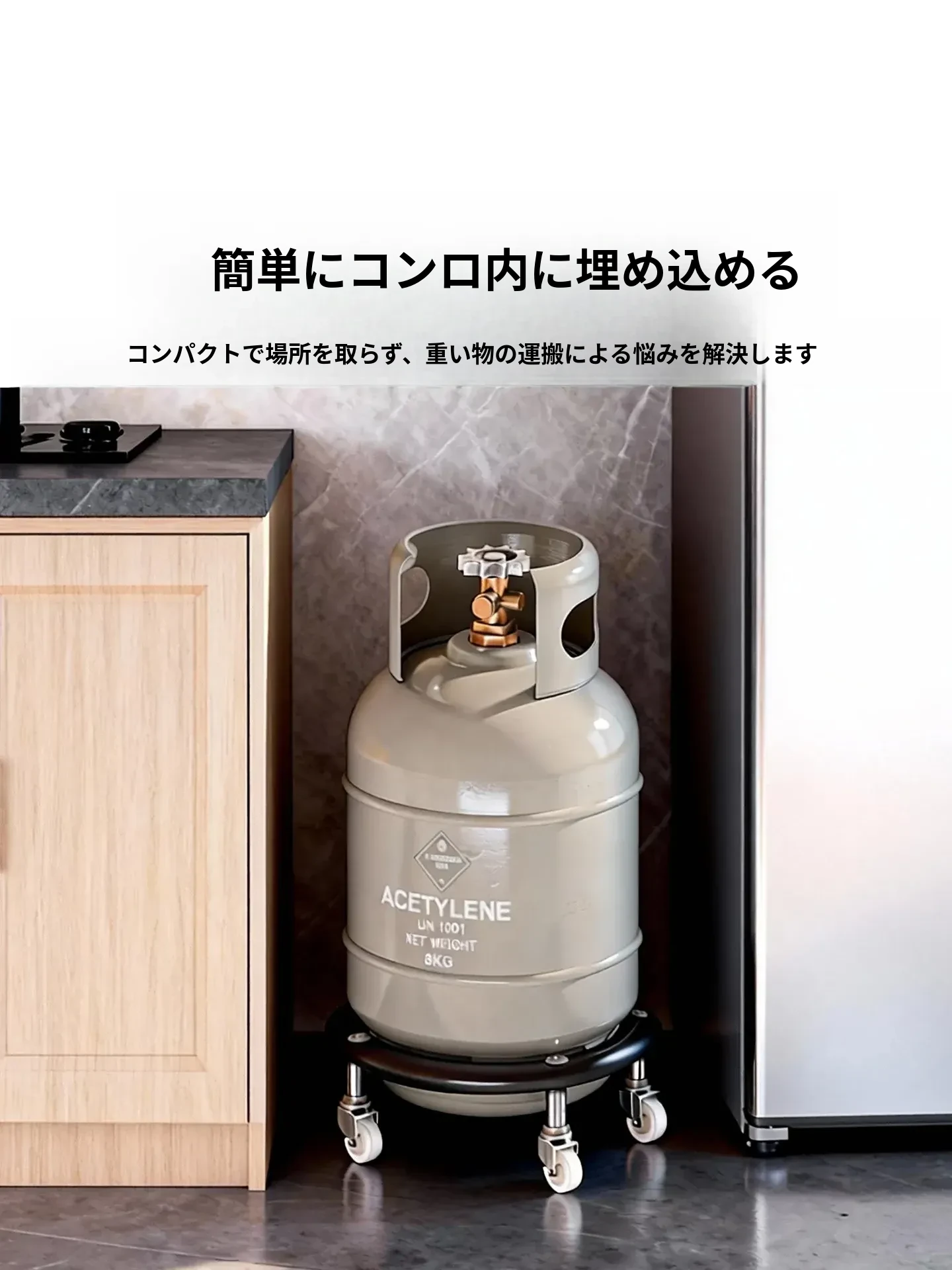 ガス缶用スタンド&ボトルラック - 家庭用液化ガスボトルをスッキリ整理!おしゃれなプランター置きにもなる便利な収納ラックです。移動も簡単で、スペースを有効活用!
