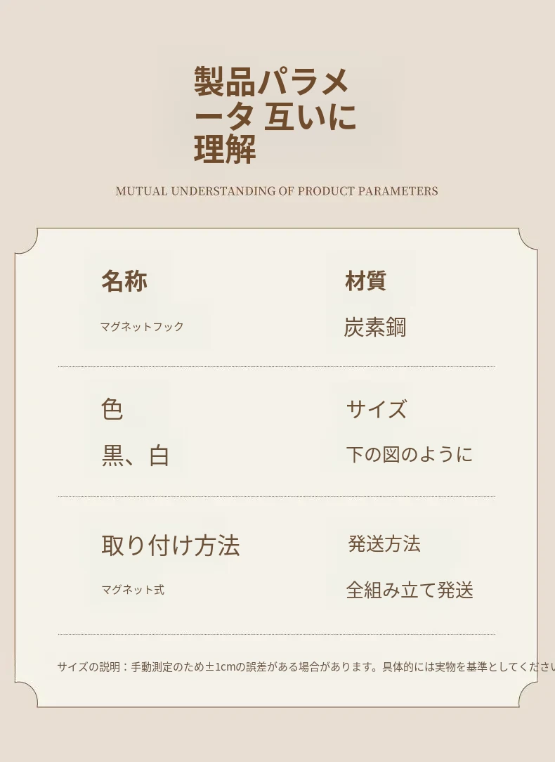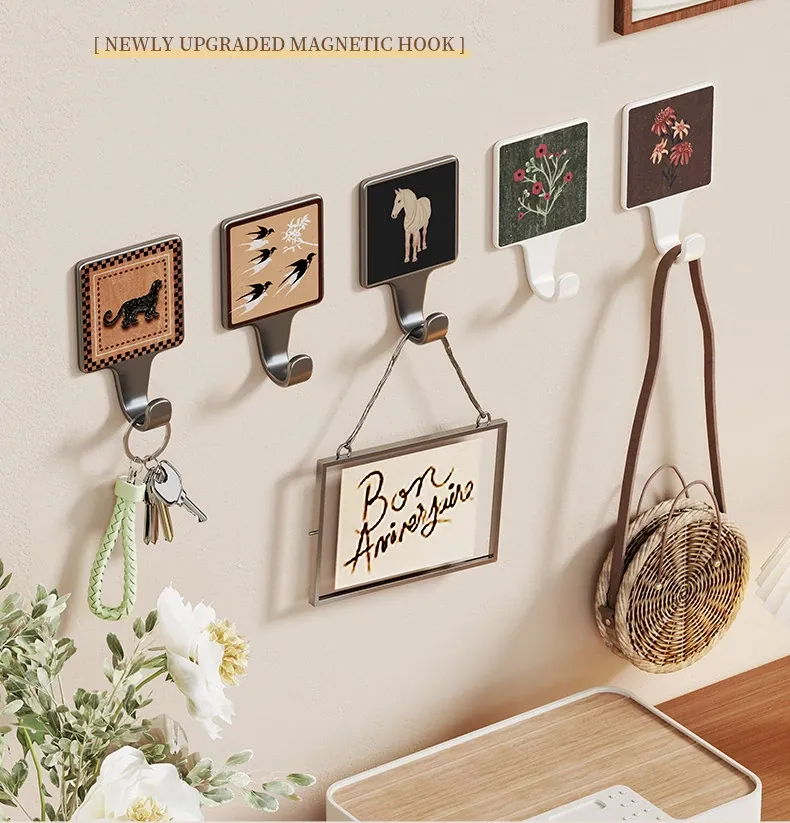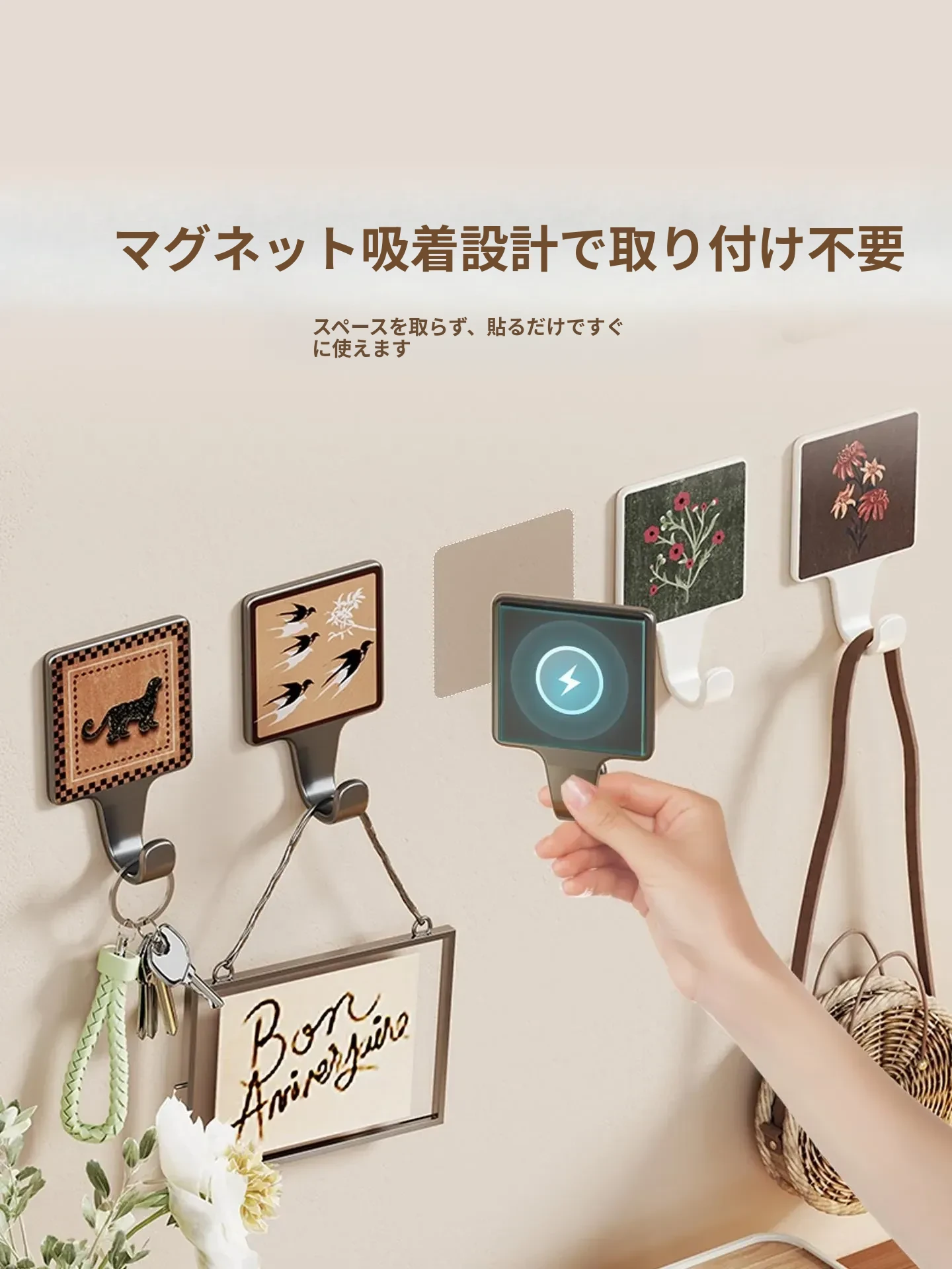 キッチン用冷蔵庫サイドマグネットフック - 穴あけ不要の強力マグネットで、跡が残らない!鍋やヘラをしっかり収納できるマグネット式フックです。整理整頓も簡単で、使いやすさ抜群!