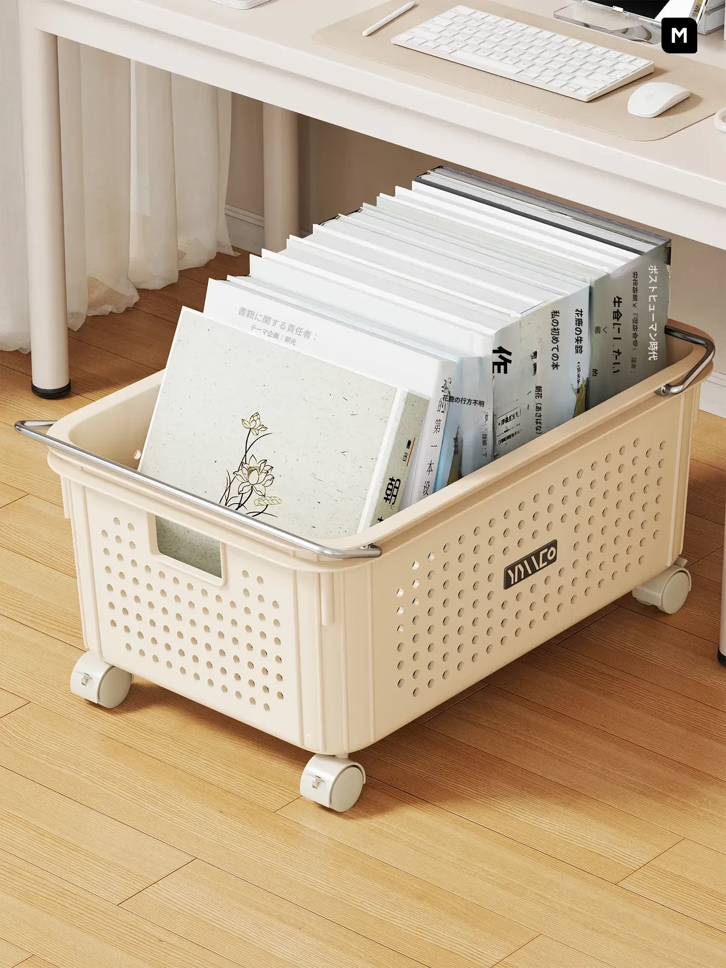 学校教室用可移动書籍収納ボックス - 車輪付きで簡単に移動、机の下にもぴったり!学生のための便利なブックカート、デスク上の本もすっきり整理できます。