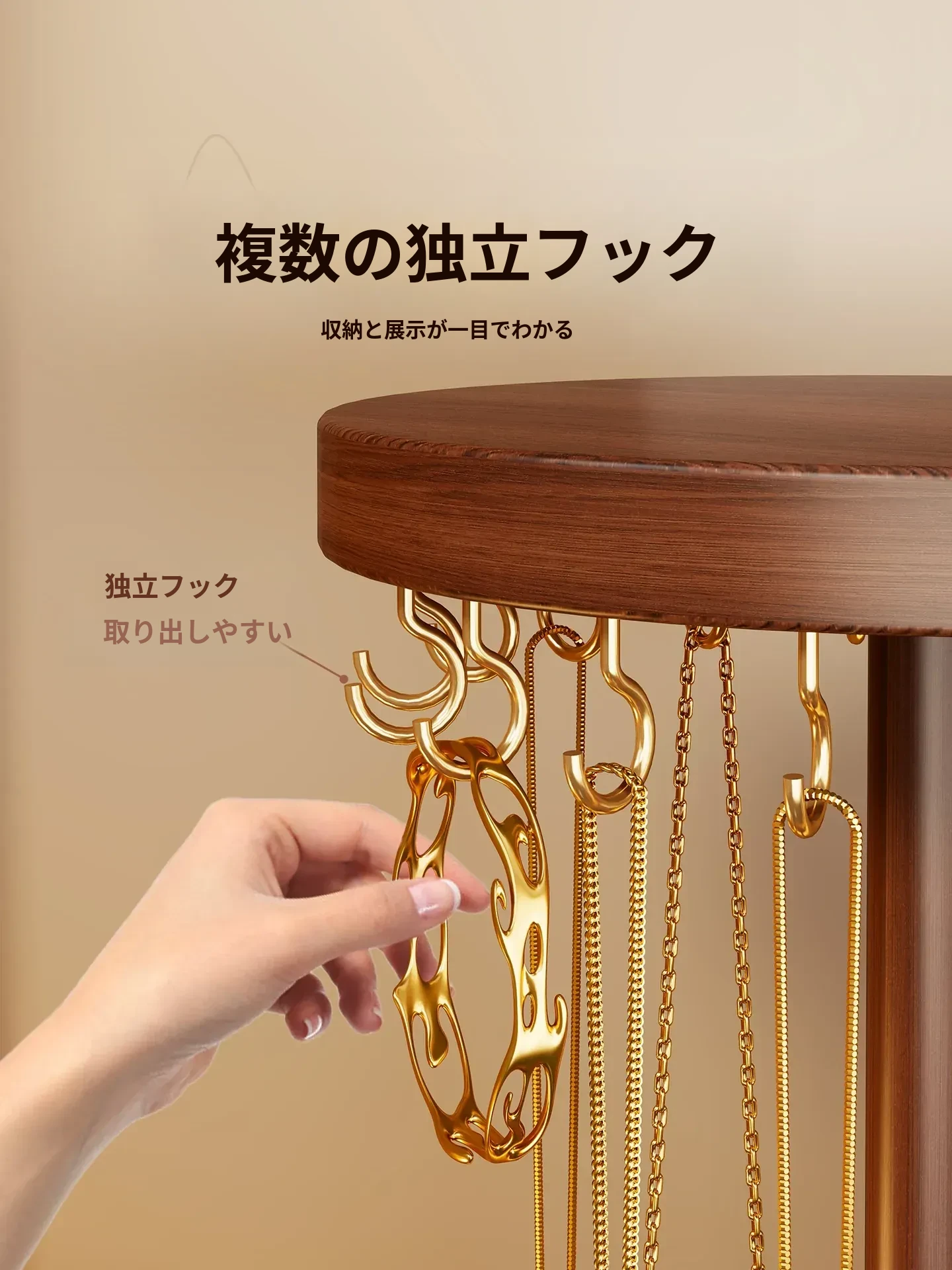 天然木製ジュエリーホルダー - デスクトップ用アクセサリーディスプレイラック。ブレスレット、ネックレス、キーホルダーを美しく整理!おしゃれなインテリアにもぴったり。あなたの大切なアクセサリーを魅力的に演出します!