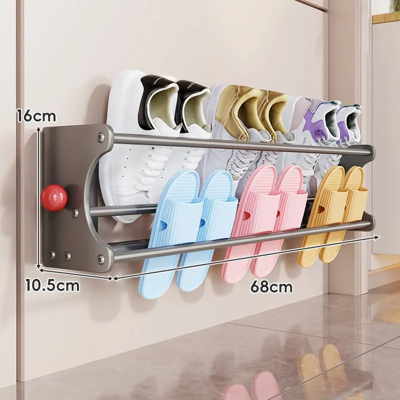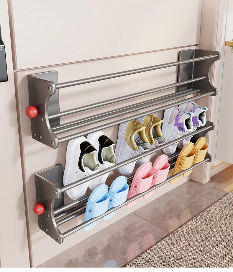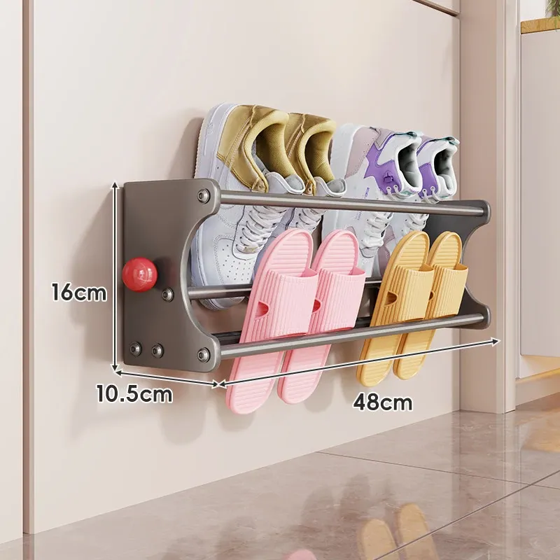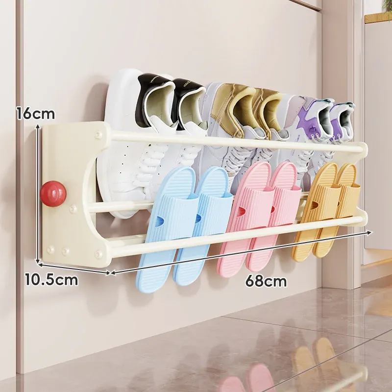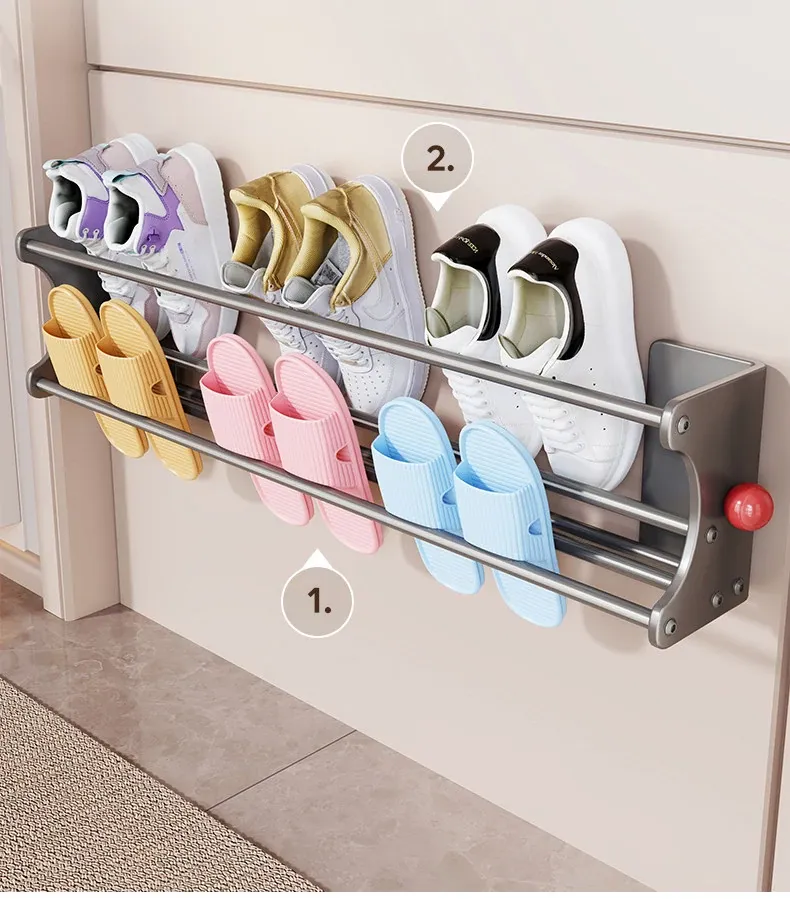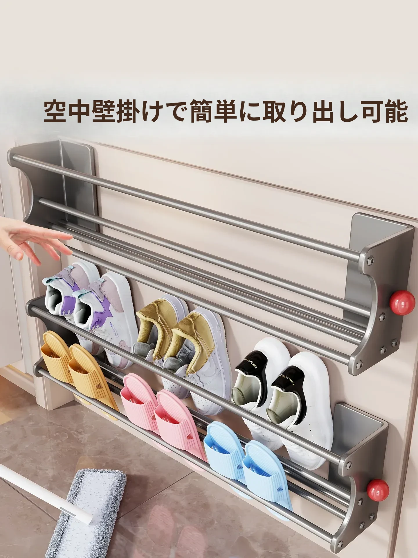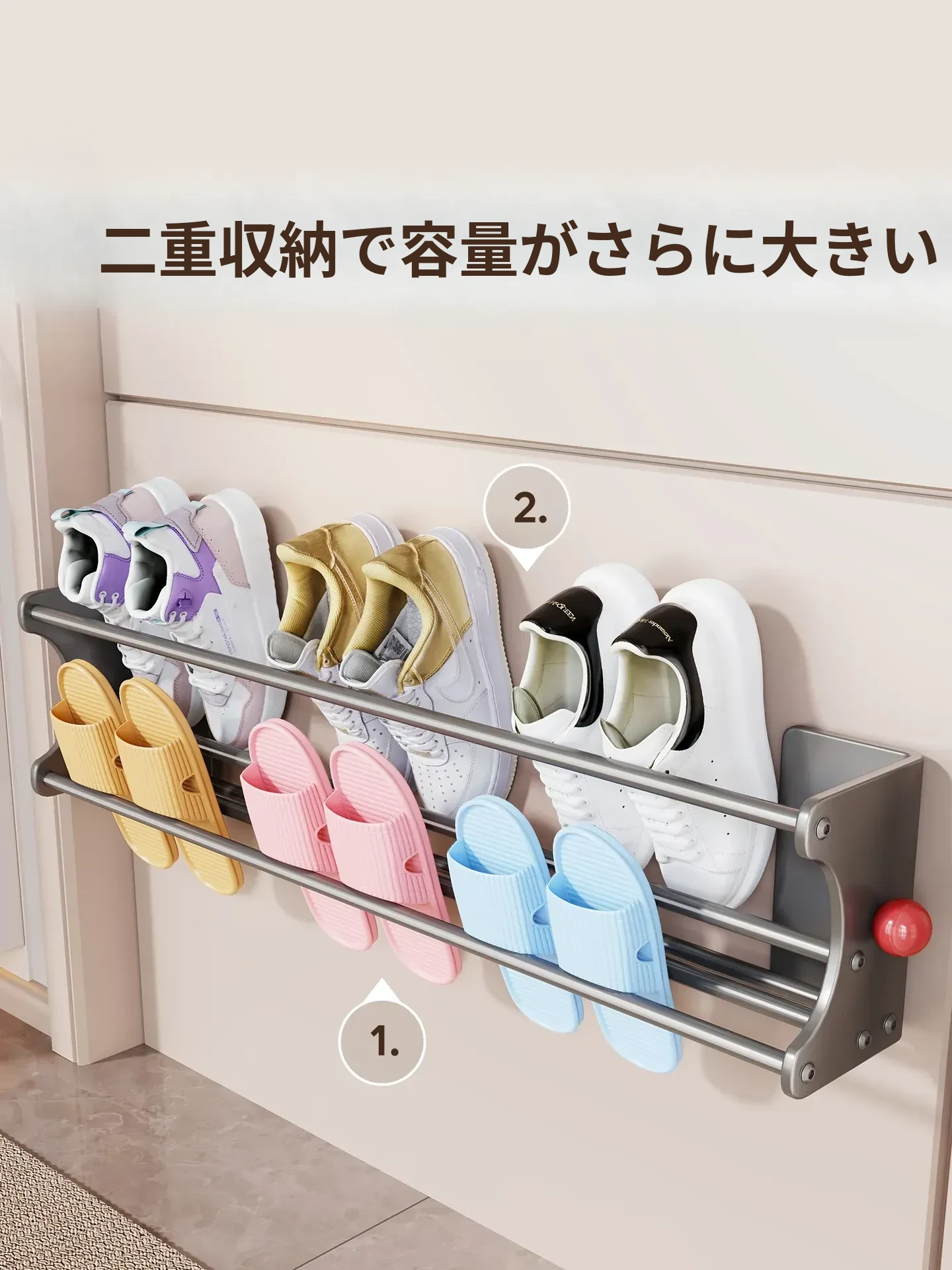 玄関用シューズラック|スリッパや靴をすっきり収納!壁掛けタイプで省スペース、バスルームでも使える水切り機能付き!おしゃれで便利な収納アイテムです。