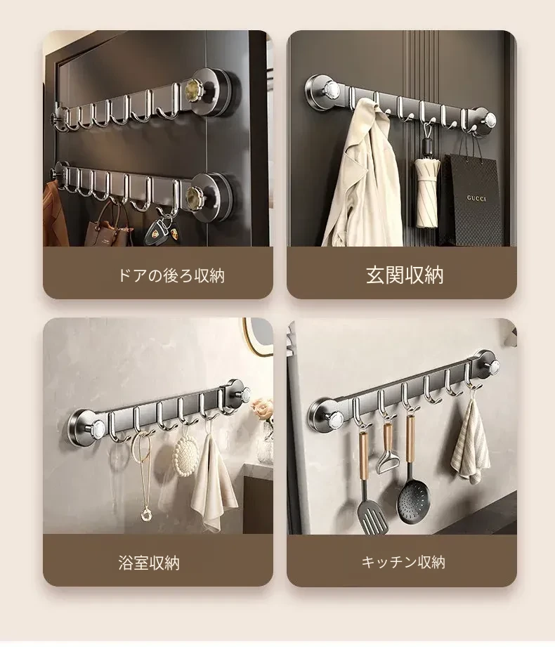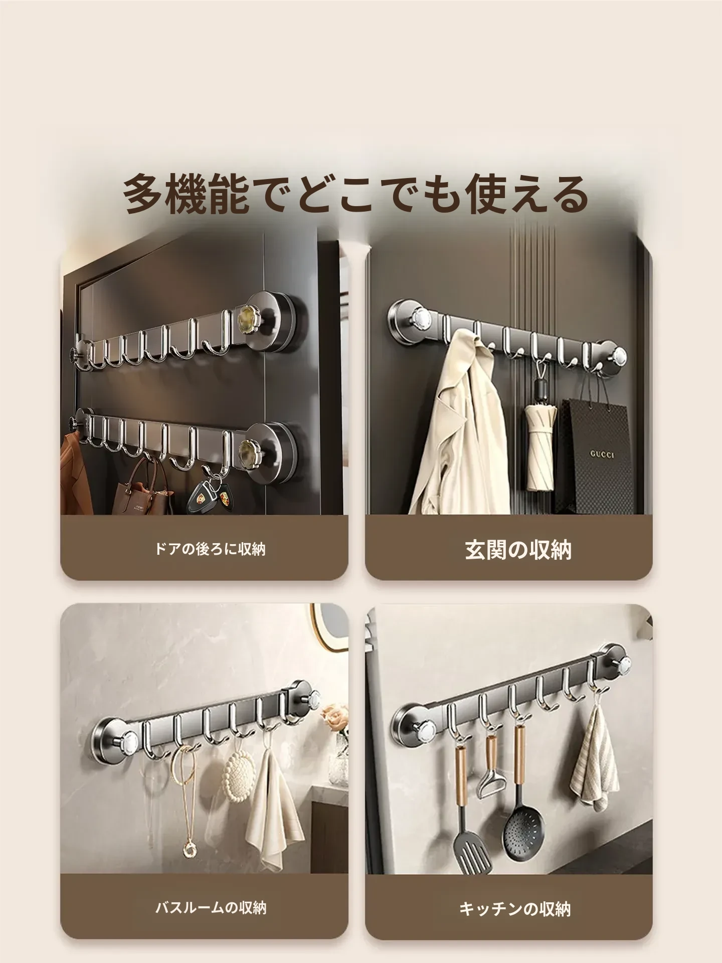 吸盤式ドアフック - 穴をあけずに簡単取り付け!壁掛け衣類ハンガーで、スッキリ整理整頓!多機能コートフックで、あなたの生活を便利にする魔法のアイテム!