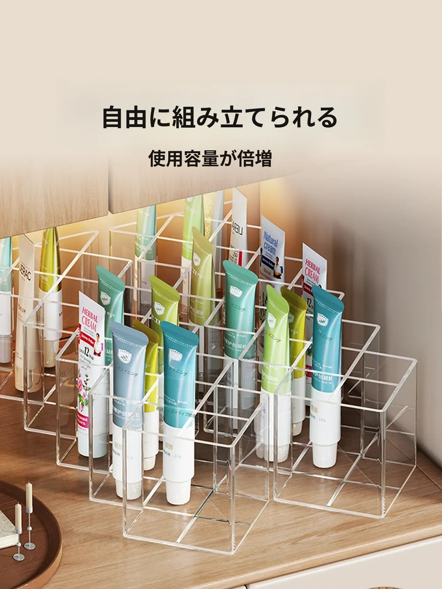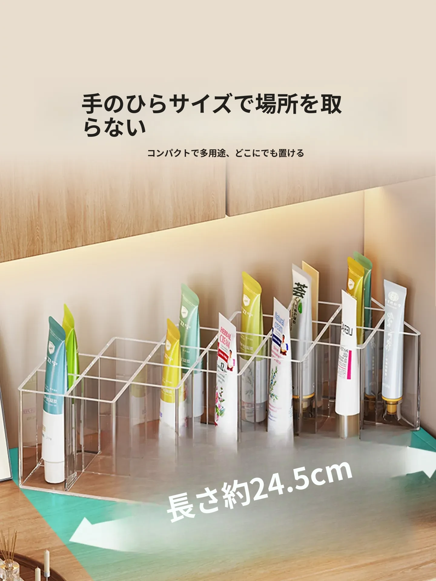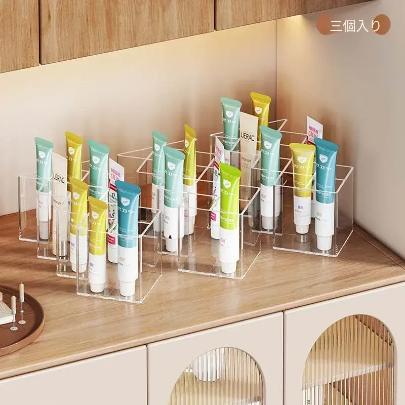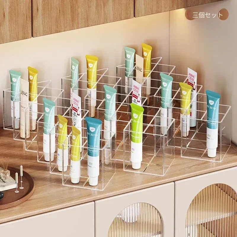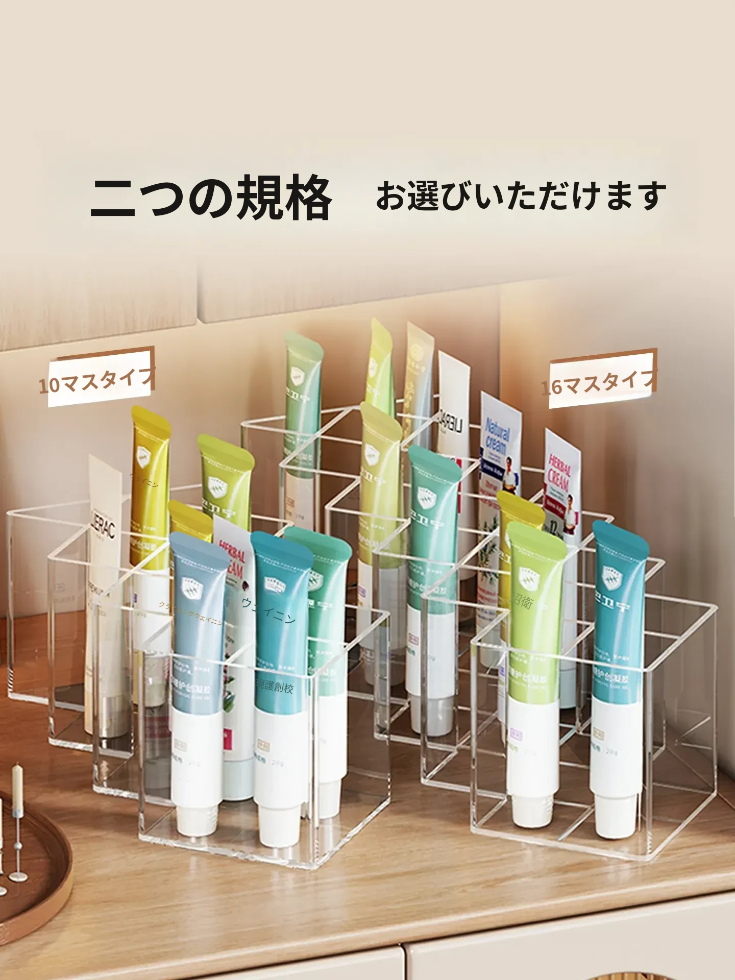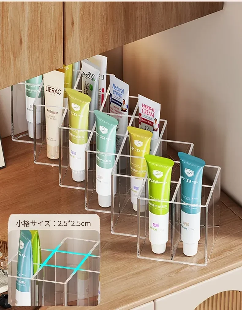 透明デスクトップ用薬膏収納ボックス - 整理整頓に最適!軟膏・クリームをすっきり収納し、医療品や口紅も美しくディスプレイできる便利な仕切り付きラック。おしゃれで機能的なアイテムで、あなたのデスクをスッキリさせましょう!