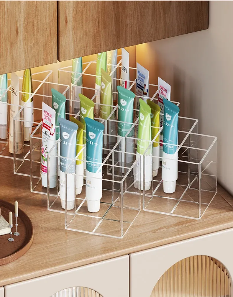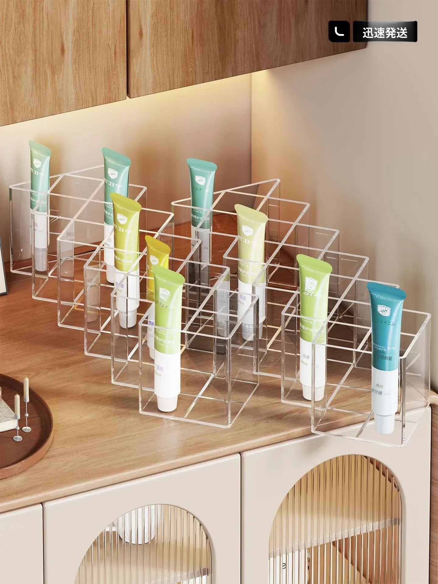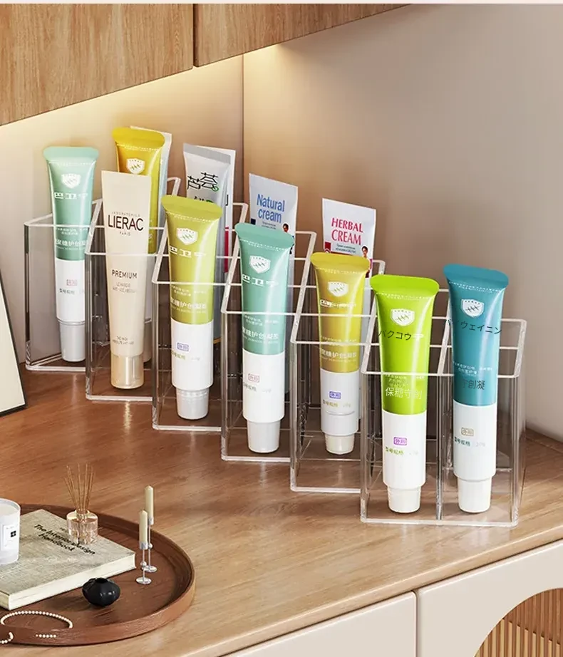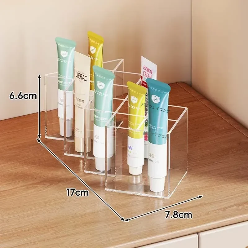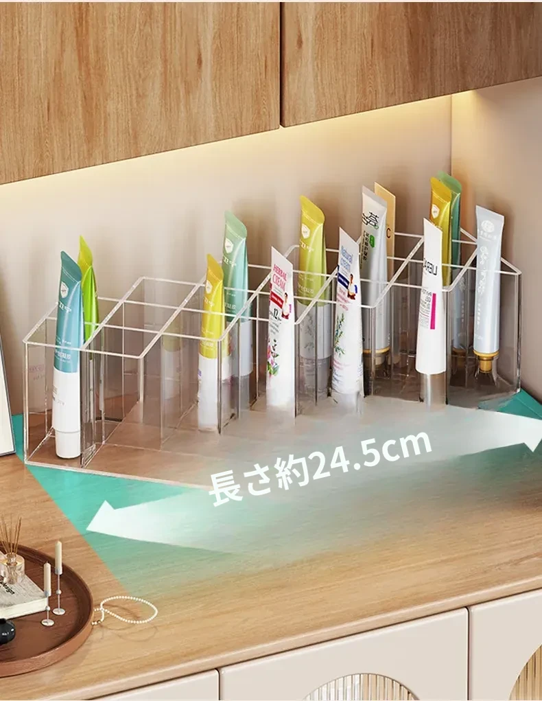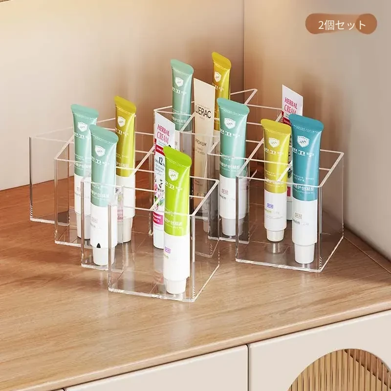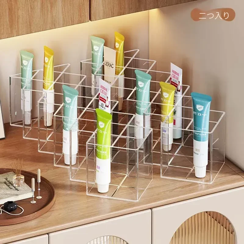 透明デスクトップ用薬膏収納ボックス - 整理整頓に最適!軟膏・クリームをすっきり収納し、医療品や口紅も美しくディスプレイできる便利な仕切り付きラック。おしゃれで機能的なアイテムで、あなたのデスクをスッキリさせましょう!