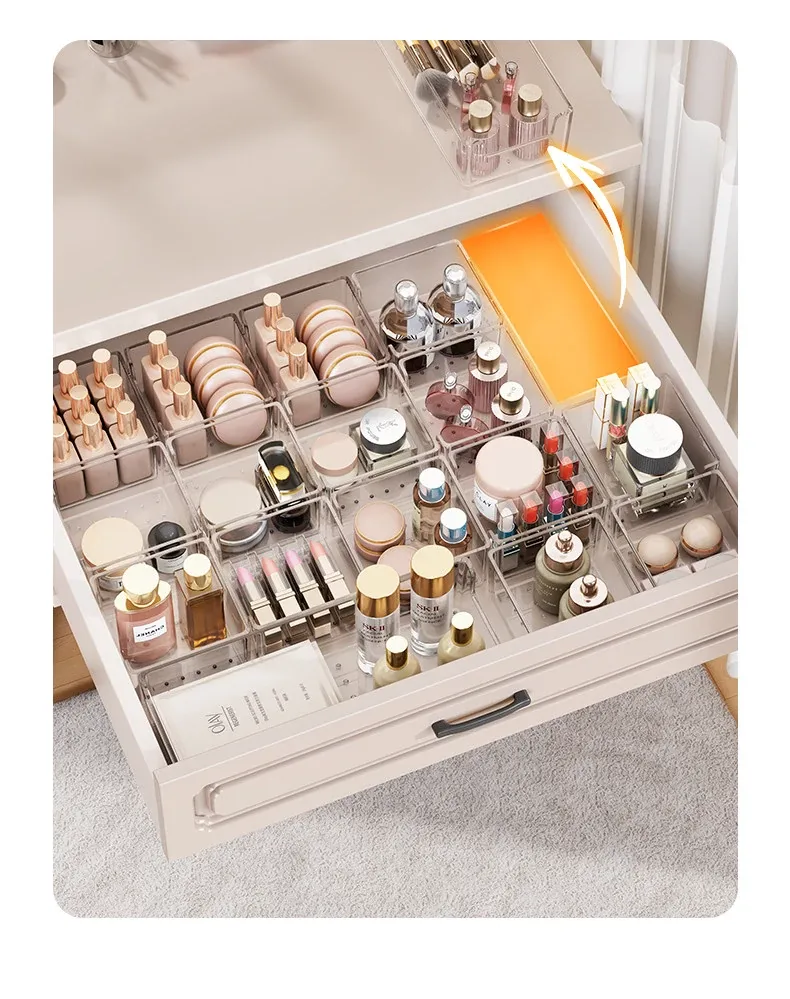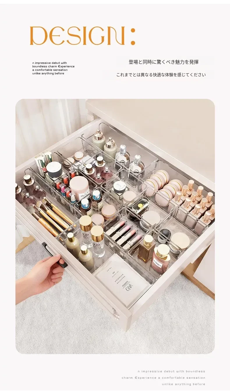 透明な化粧品収納ボックス - メイクアップテーブル用の引き出し仕切り&深いキャビネット用インサート、化粧ブラシやリップスティックを整理するためのスタイリッシュなディスプレイラック!