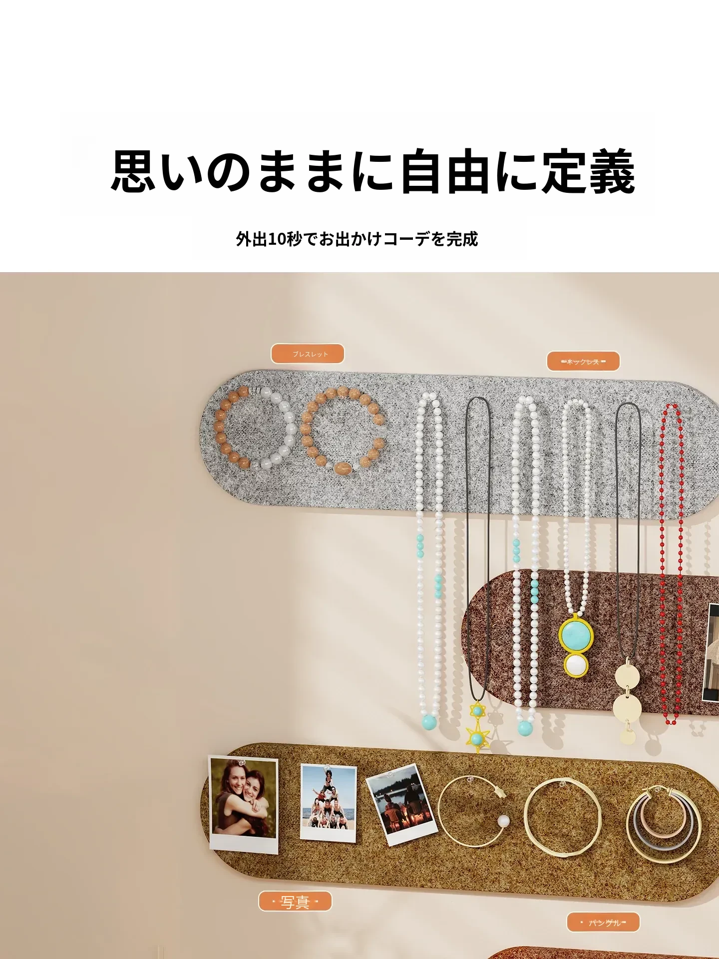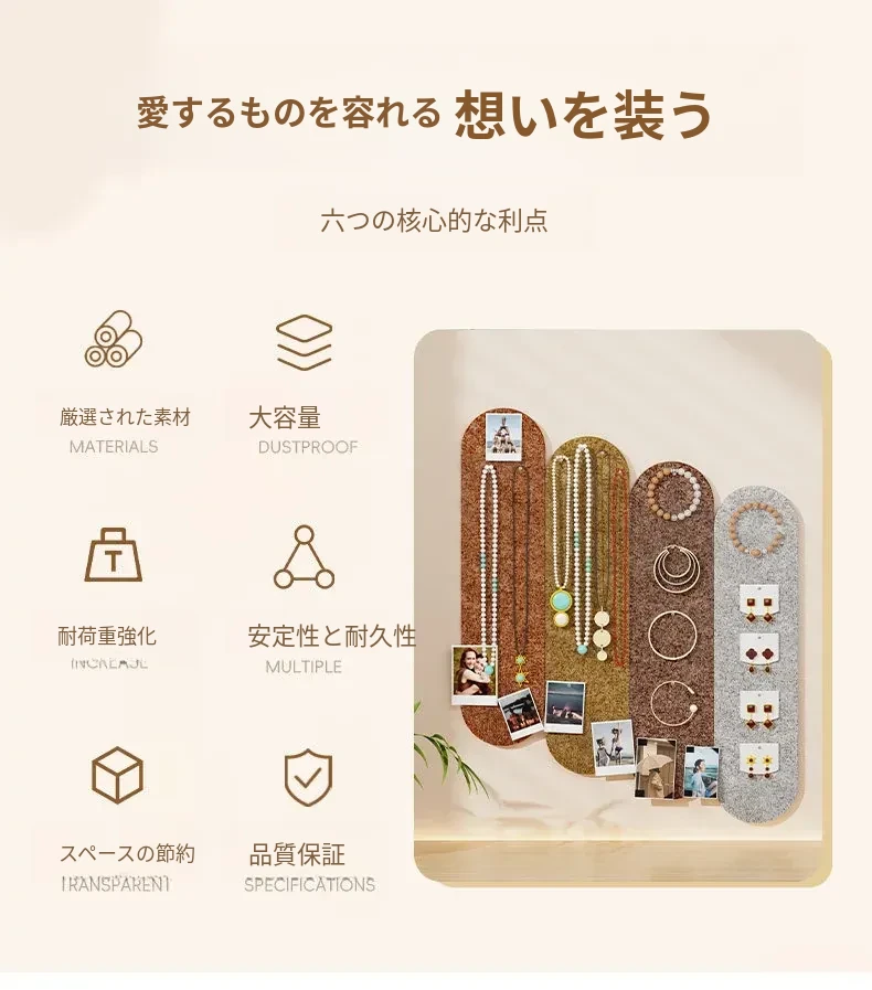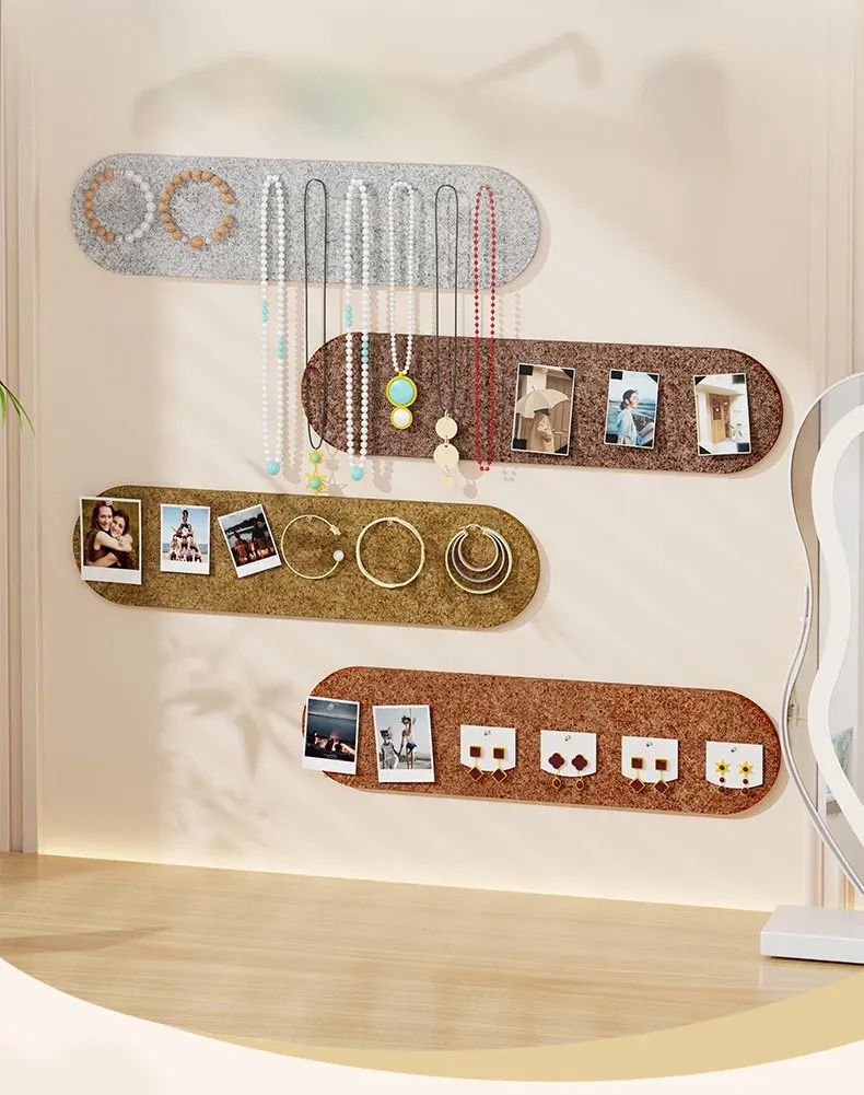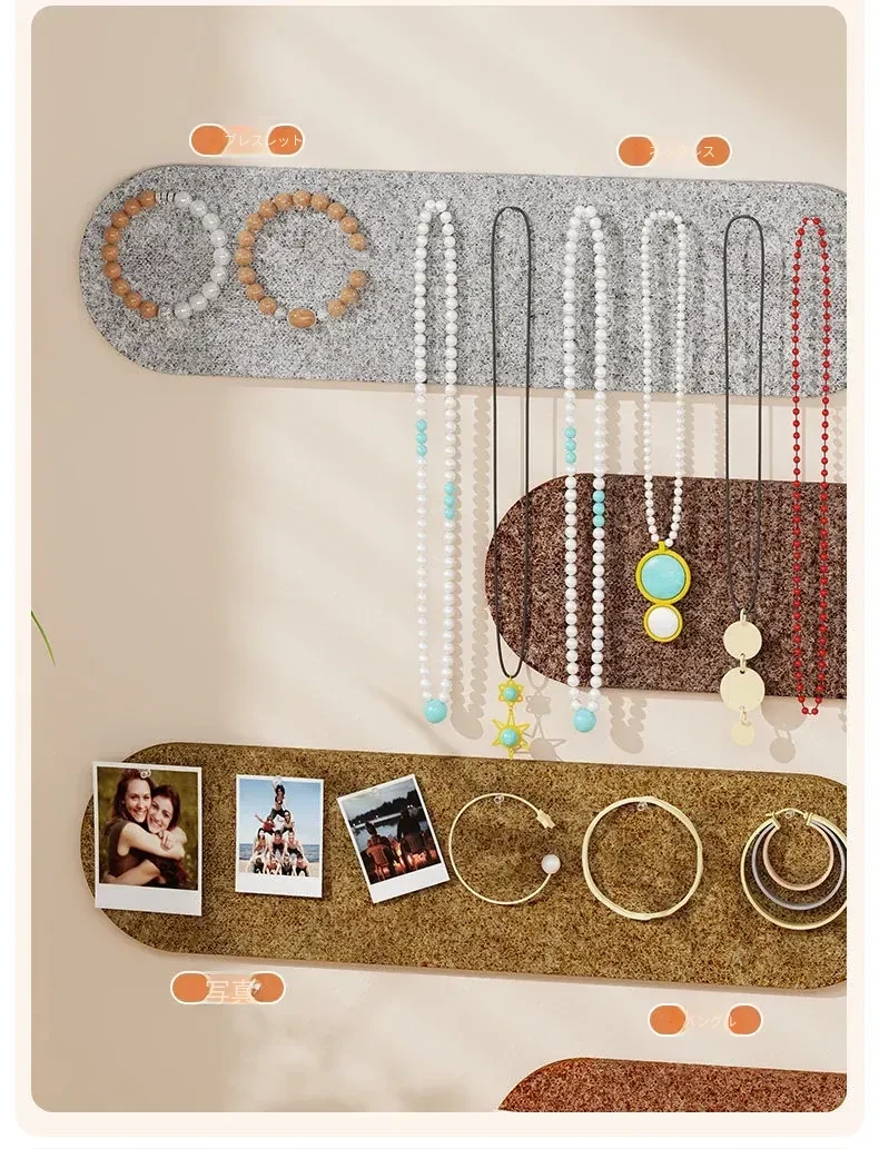 ネックレスやイヤリングを美しく飾る!壁掛け多機能ジュエリーディスプレイボード - フェルト製、アクセサリー収納や写真の展示にも最適なスタイリッシュなアイテム!