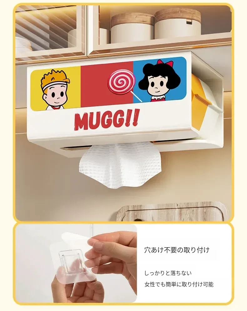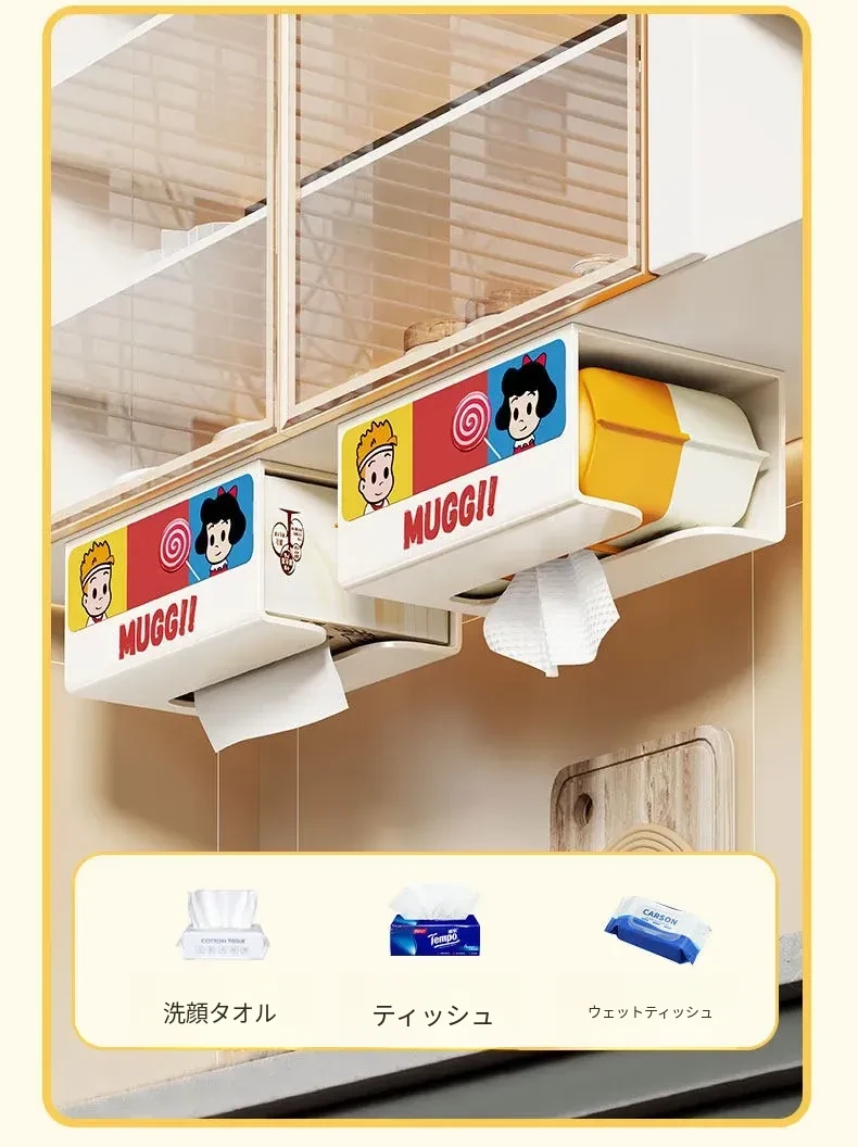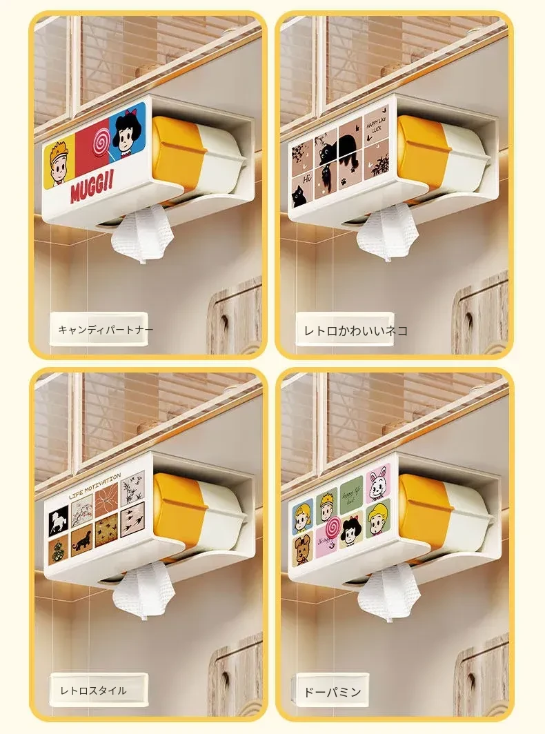 壁掛け式キッチンペーパー収納ボックス|穴あけ不要の便利なティッシュホルダー|家庭用の多機能収納アイテムでスペースを有効活用!