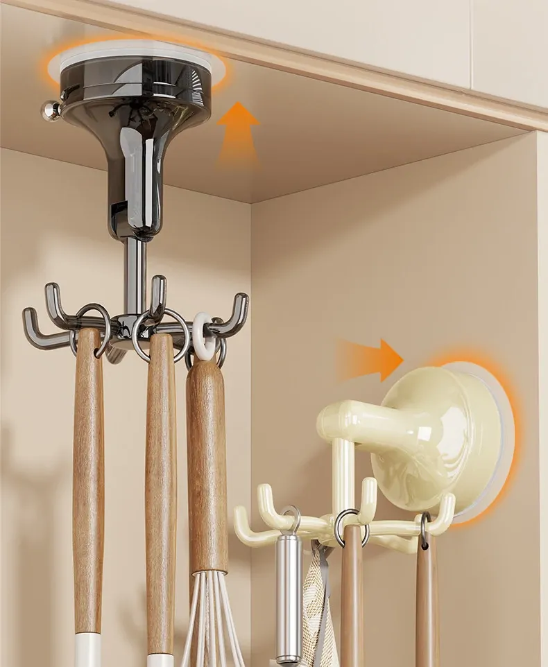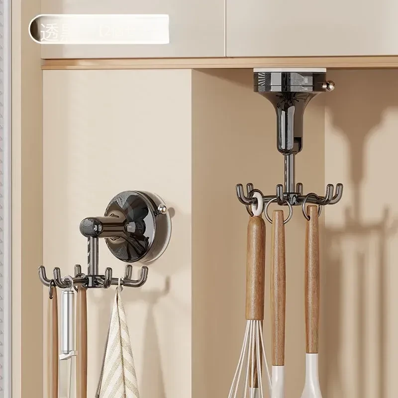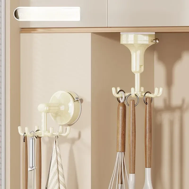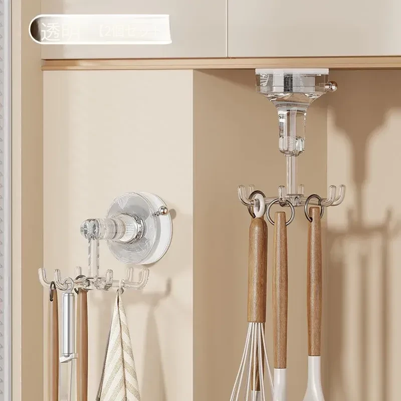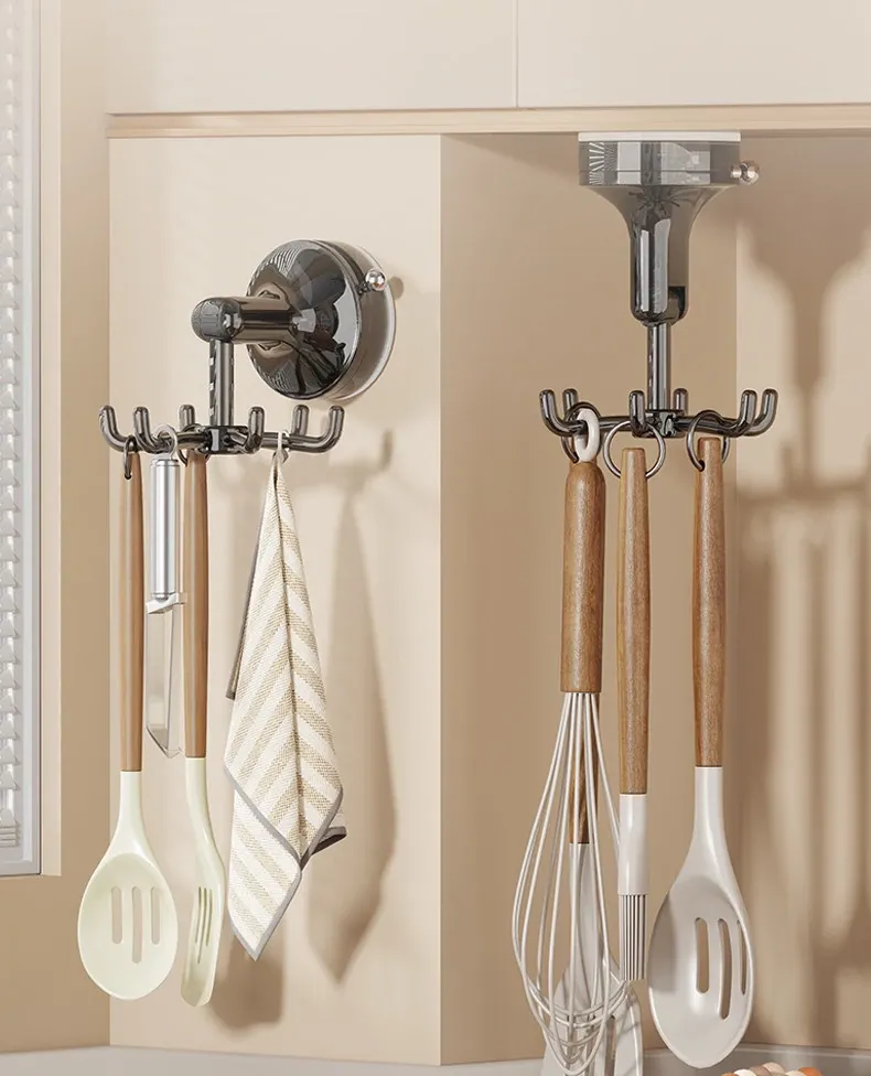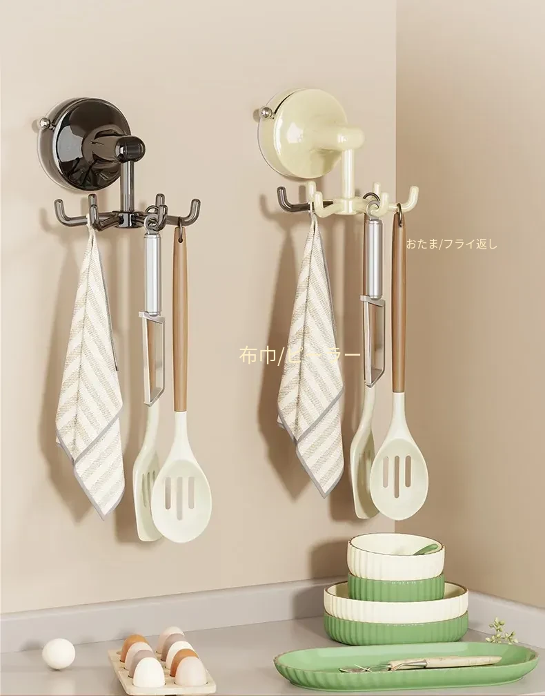 キッチン回転フック 壁掛け お鍋やヘラの収納に最適!穴あけ不要で取り付け簡単!吸盤式でしっかり固定、スプーンや調理器具もスッキリ整理!おしゃれなキッチン作りにぴったり!
