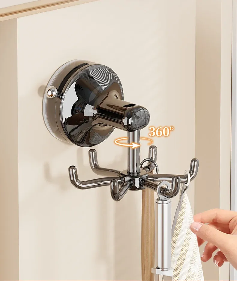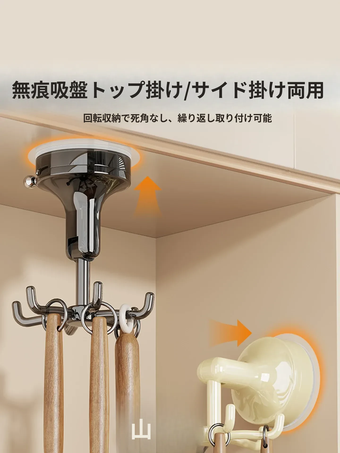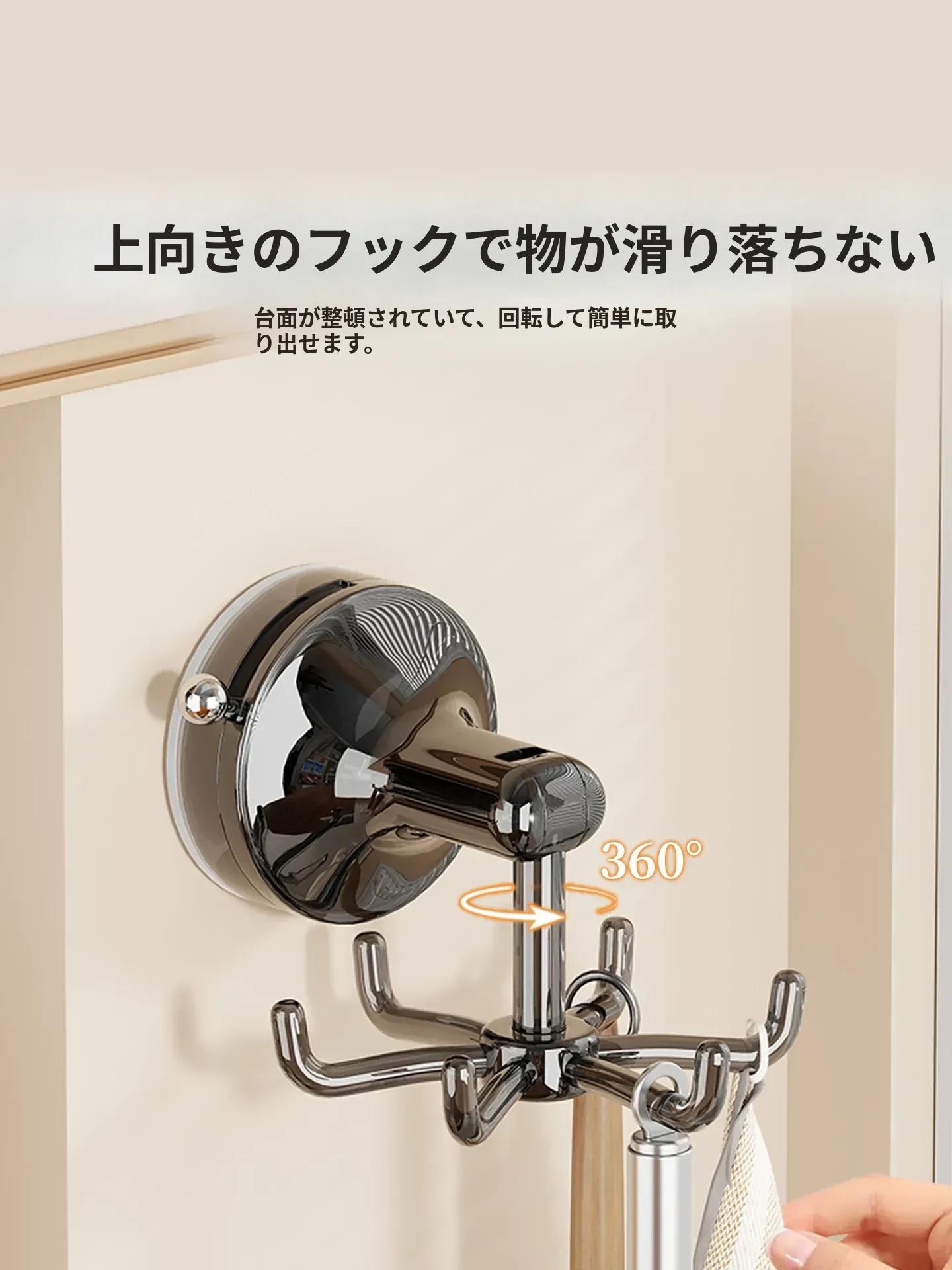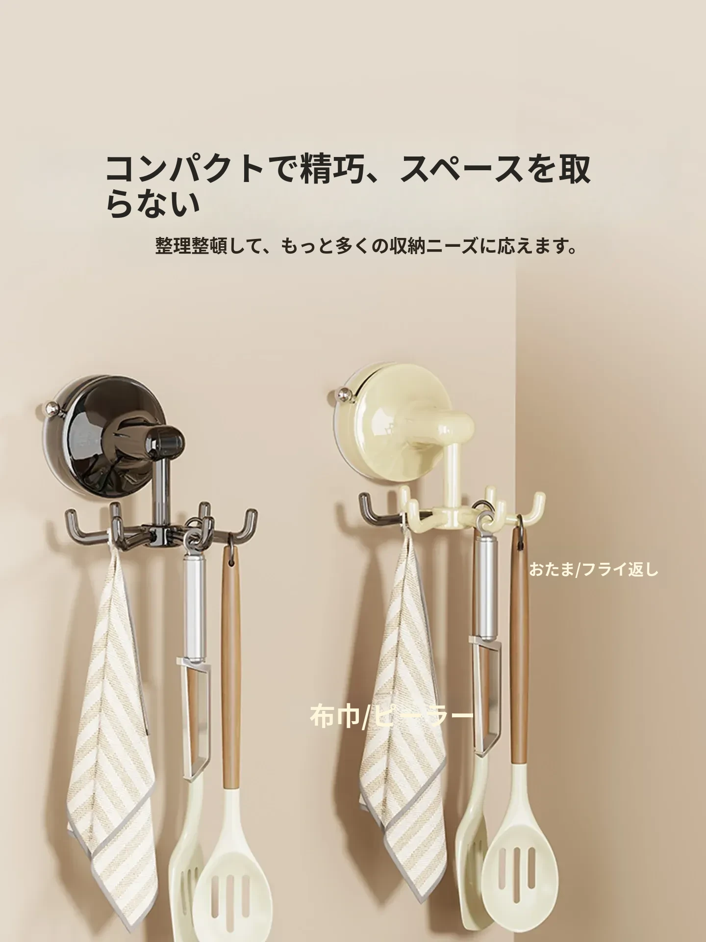 キッチン回転フック 壁掛け お鍋やヘラの収納に最適!穴あけ不要で取り付け簡単!吸盤式でしっかり固定、スプーンや調理器具もスッキリ整理!おしゃれなキッチン作りにぴったり!