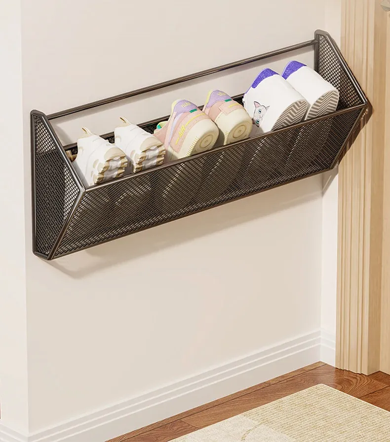 Wall-Mounted Shoe Rack for Dorms - No Drilling Required! Space-Saving Shoe Storage Organizer for Entryways and Bathrooms - Easy Installation Shoe Box for Neat and Convenient Shoe Management.