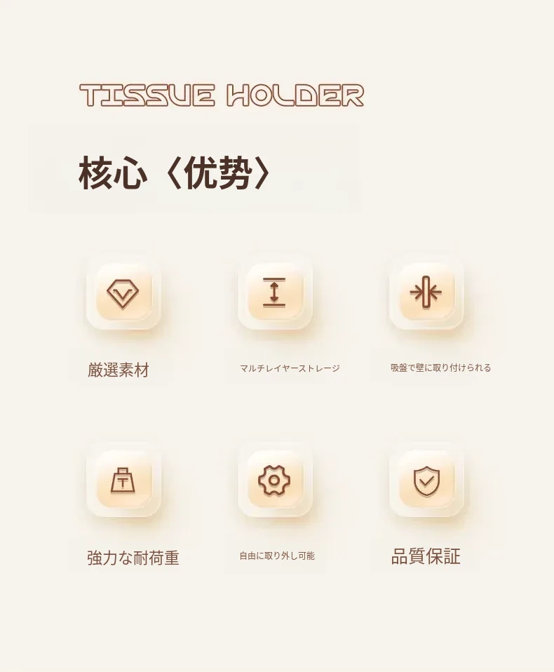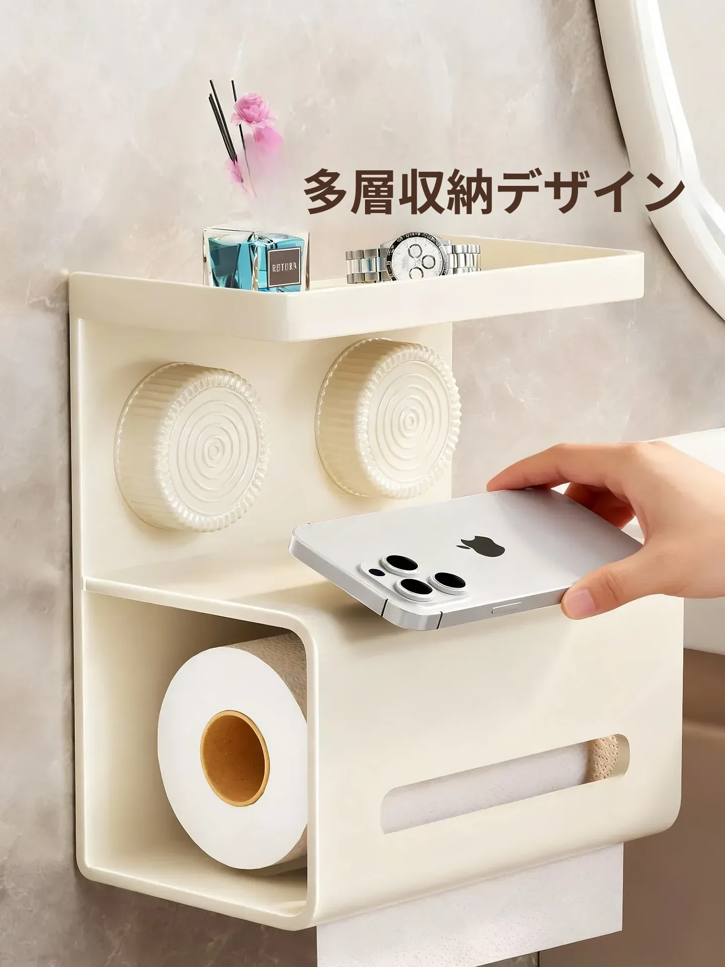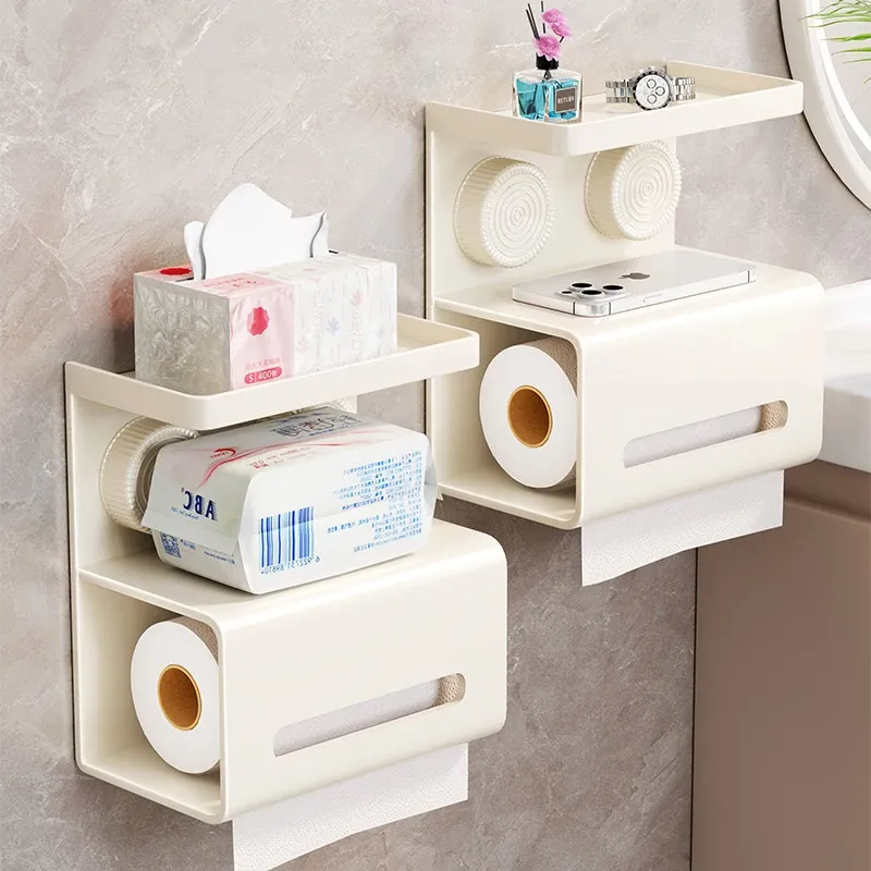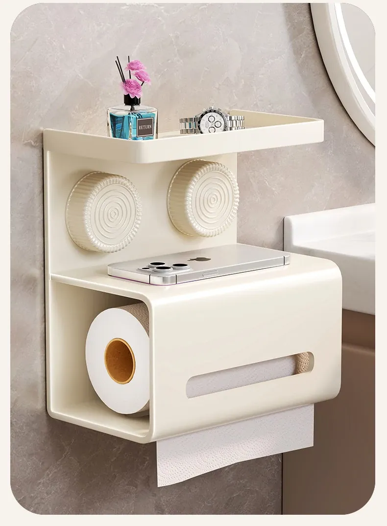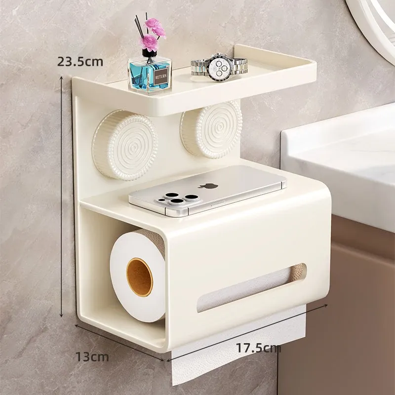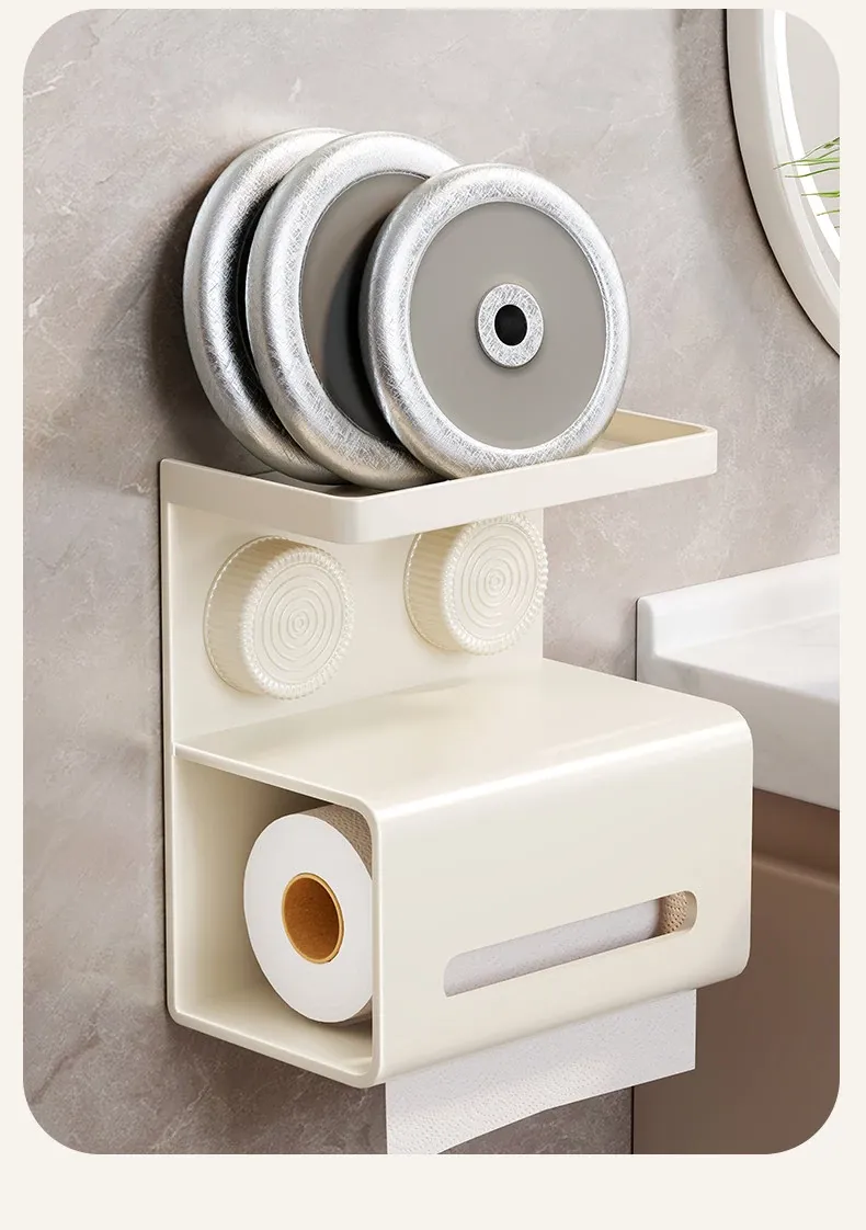 吸盤式トイレットペーパー収納ボックス - 壁掛けデザインで簡単取り付け!トイレや洗面所にぴったりな、穴を開けずに設置できる便利なティッシュホルダー。おしゃれでスッキリした空間を実現!