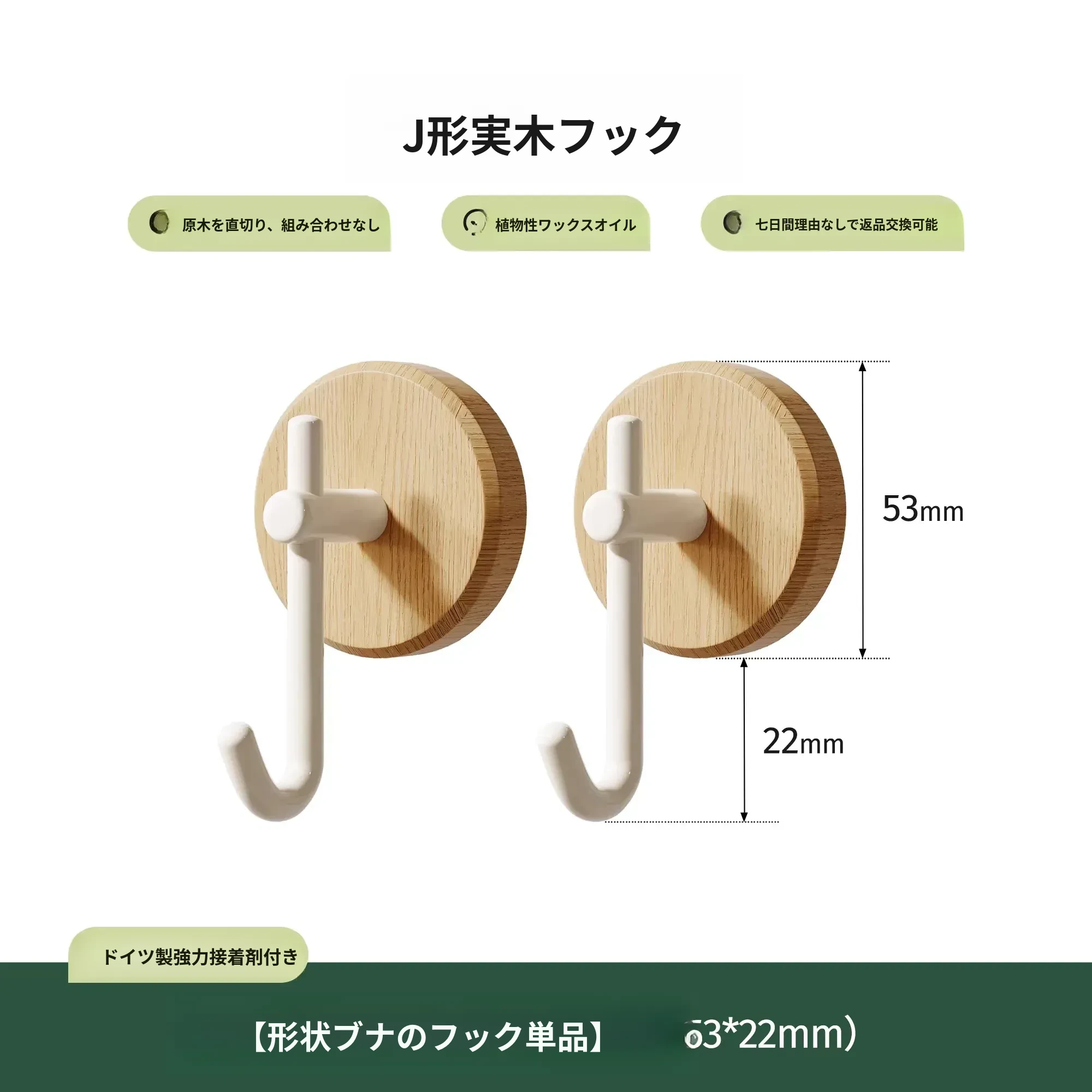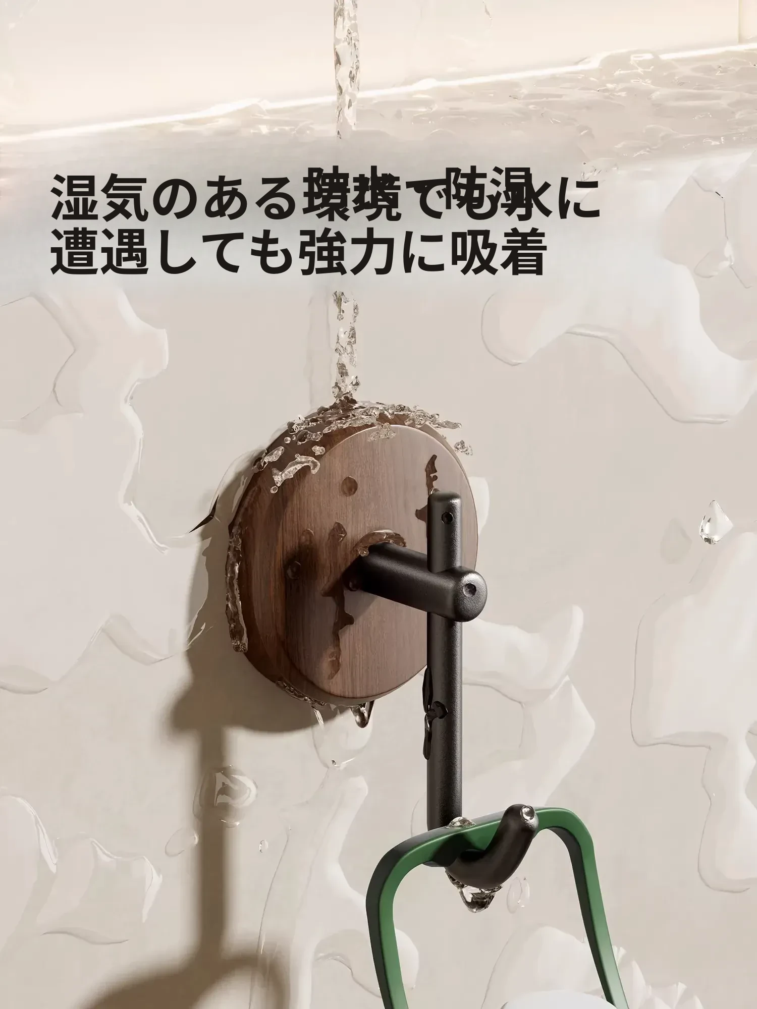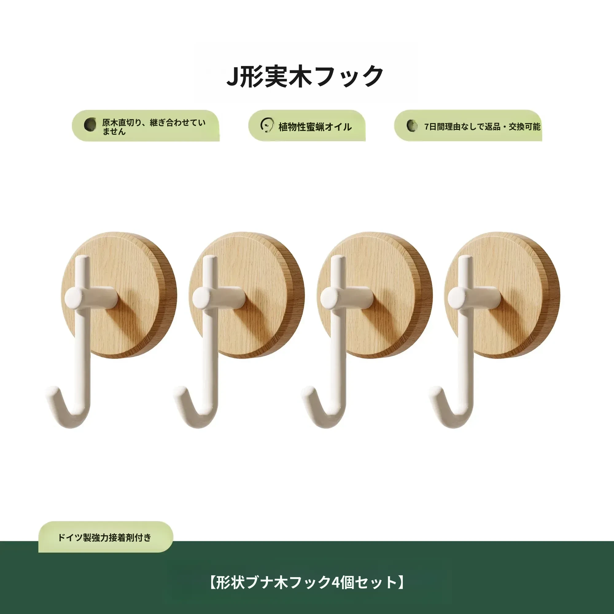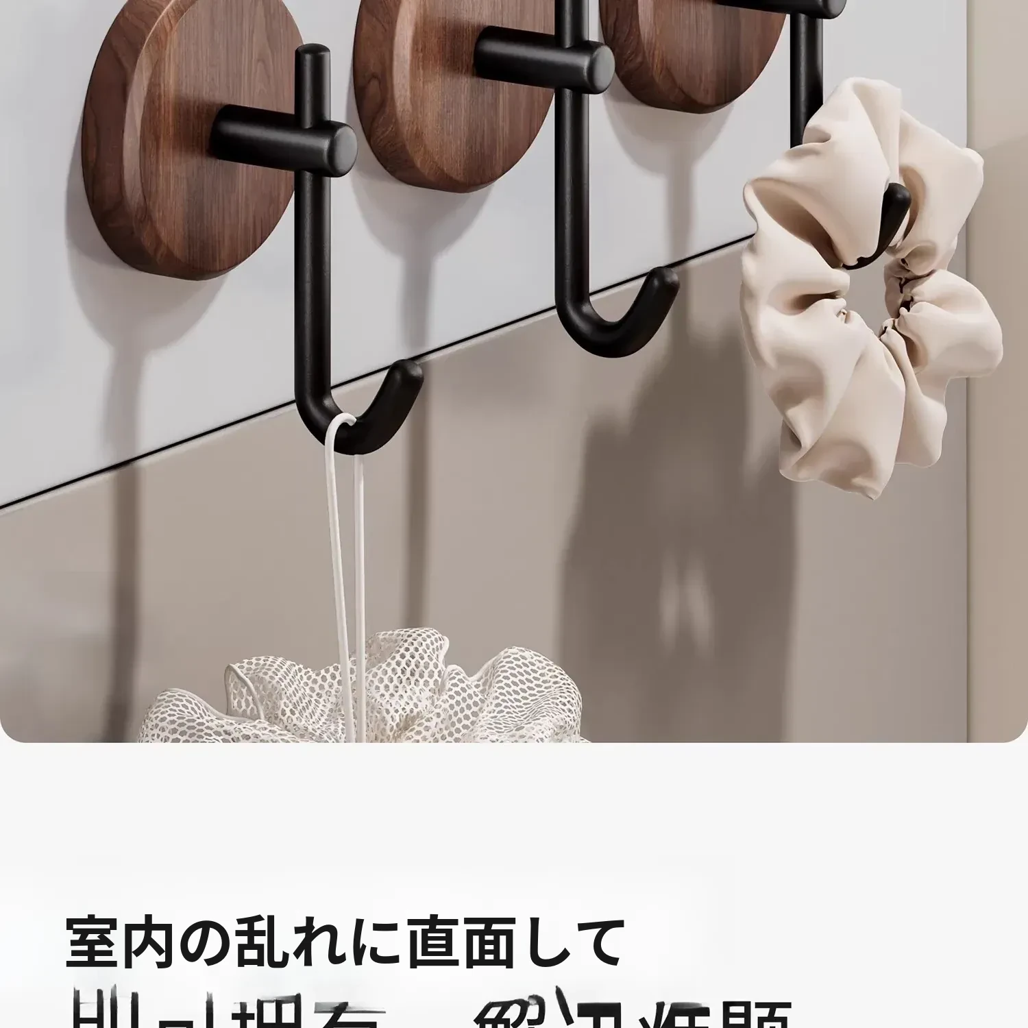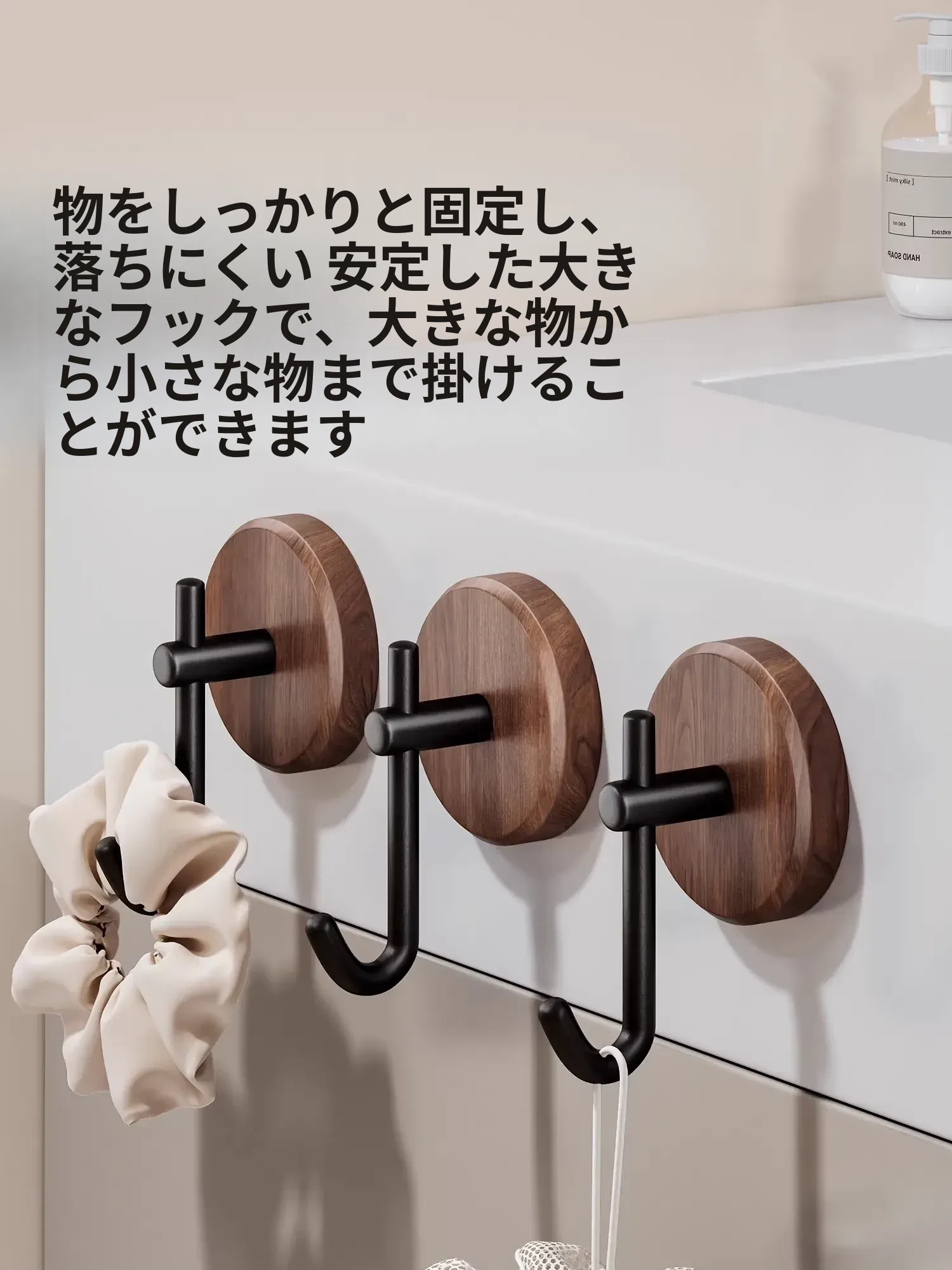 ウォールナット製バスルームフック - 穴あけ不要・強力耐荷重・目立たない!トイレのドア裏や壁に最適な高級感あふれるタオル掛け粘着フック。清潔感とスタイリッシュさを両立!