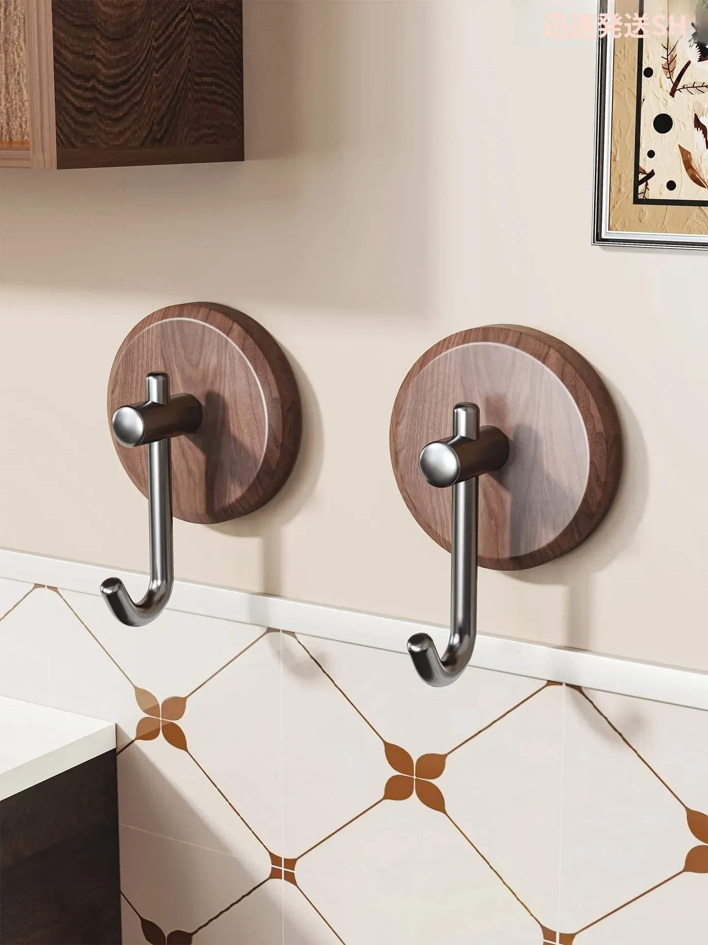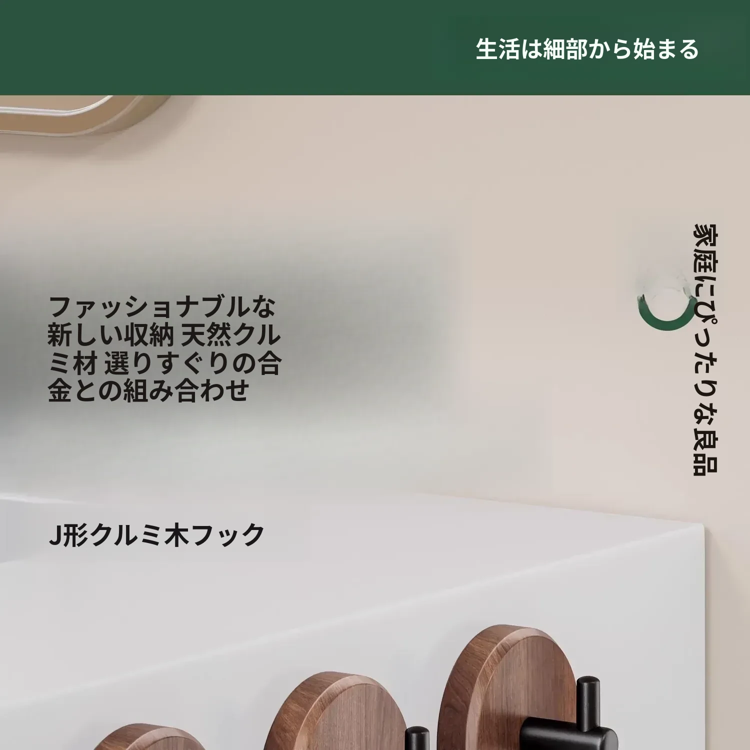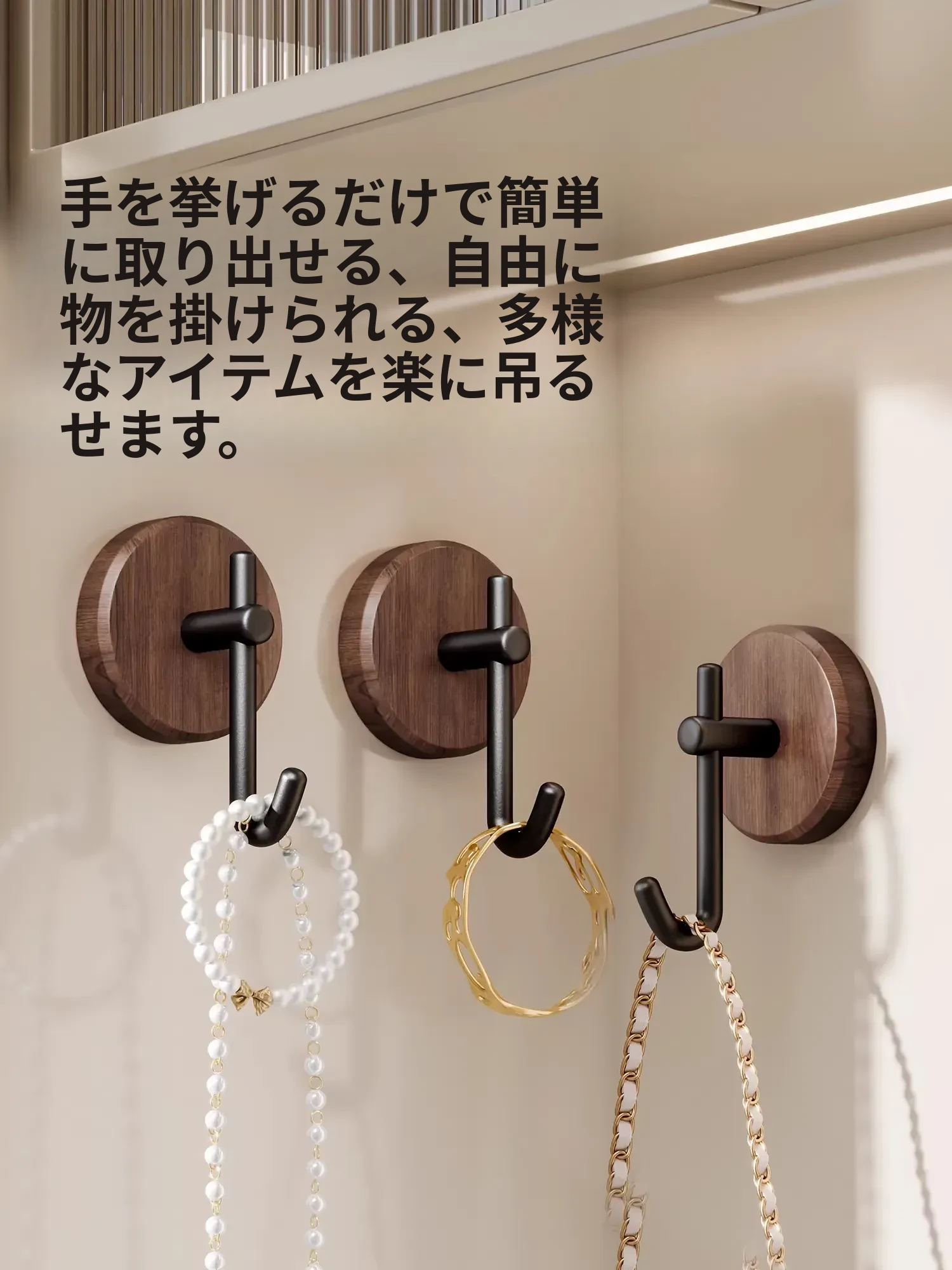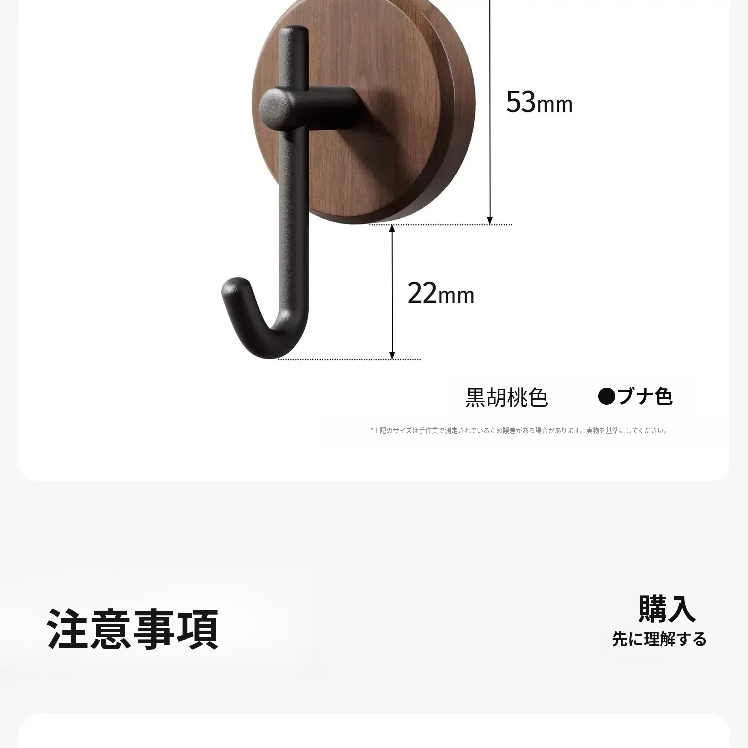 ウォールナット製バスルームフック - 穴あけ不要・強力耐荷重・目立たない!トイレのドア裏や壁に最適な高級感あふれるタオル掛け粘着フック。清潔感とスタイリッシュさを両立!