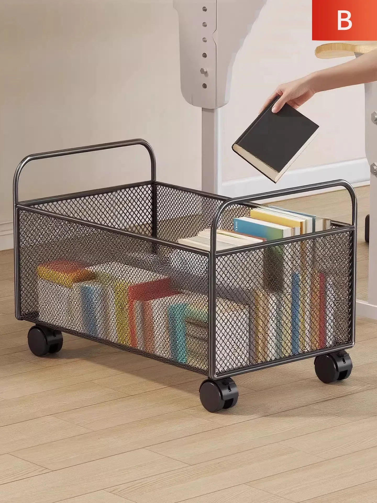 教室に最適!移動式ブックシェルフ - 輪付き収納カートで本をすっきり整理!学生の必需品、収納力抜群の書籍ボックス!