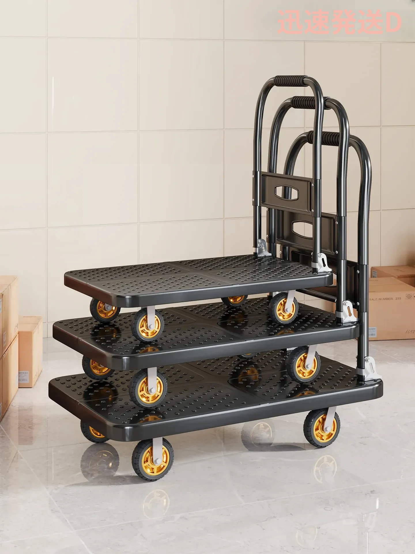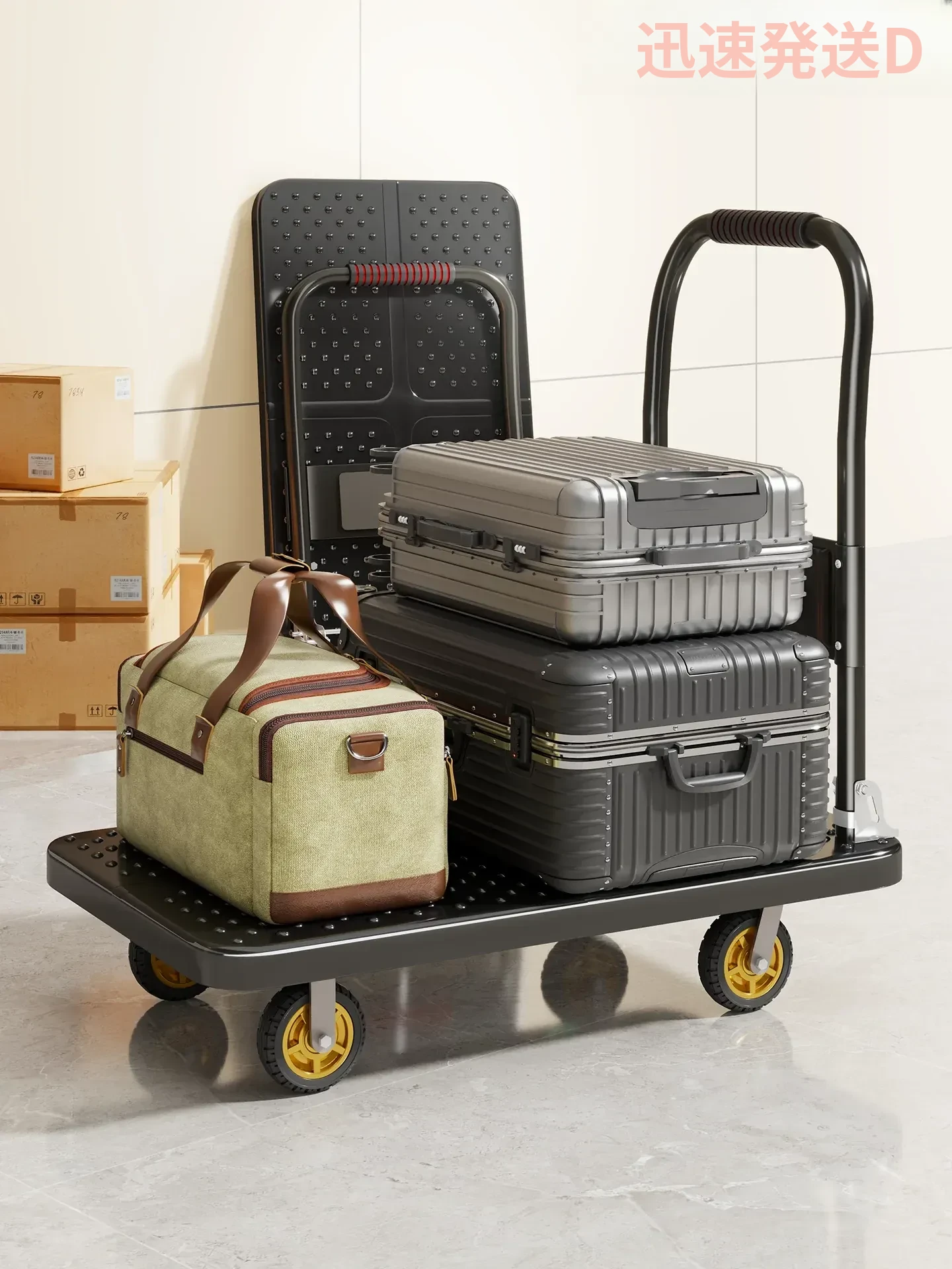 折りたたみ式スチールプッシュカー - 静音設計でスムーズな移動!スーパーマーケットや倉庫に最適、便利な荷物運びに!簡単に持ち運びできる手引きトレーラー、宅配便の受け取りも楽々!