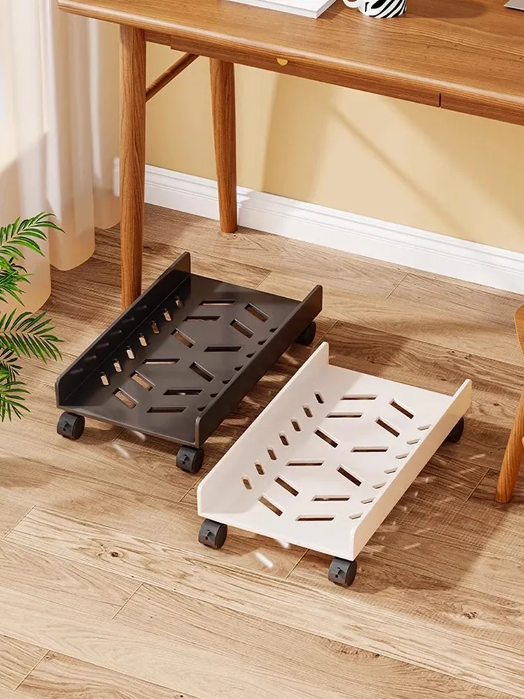 デスク下スライド式パソコンケースホルダー - 万能キャスター付きの移動可能なPCスタンドで、スペースを有効活用し、スムーズに移動できます!快適な作業環境を実現!