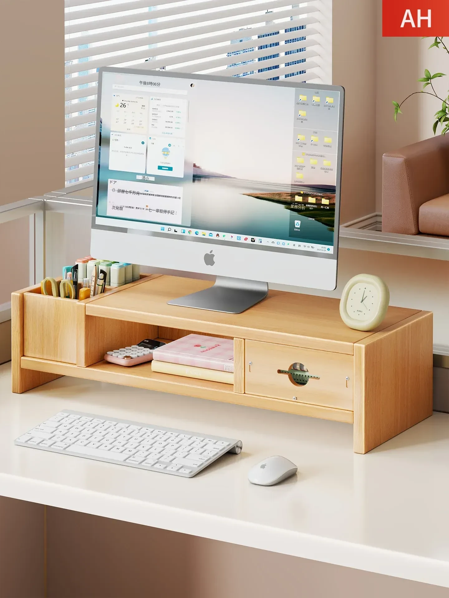 デスクトップモニター用昇降スタンド - 引き出し付き、オフィスデスクに最適な収納力!ノートパソコンやディスプレイをスッキリ整理し、作業効率をアップ!快適な姿勢を保ちながら、あなたのデスク環境を整えましょう。