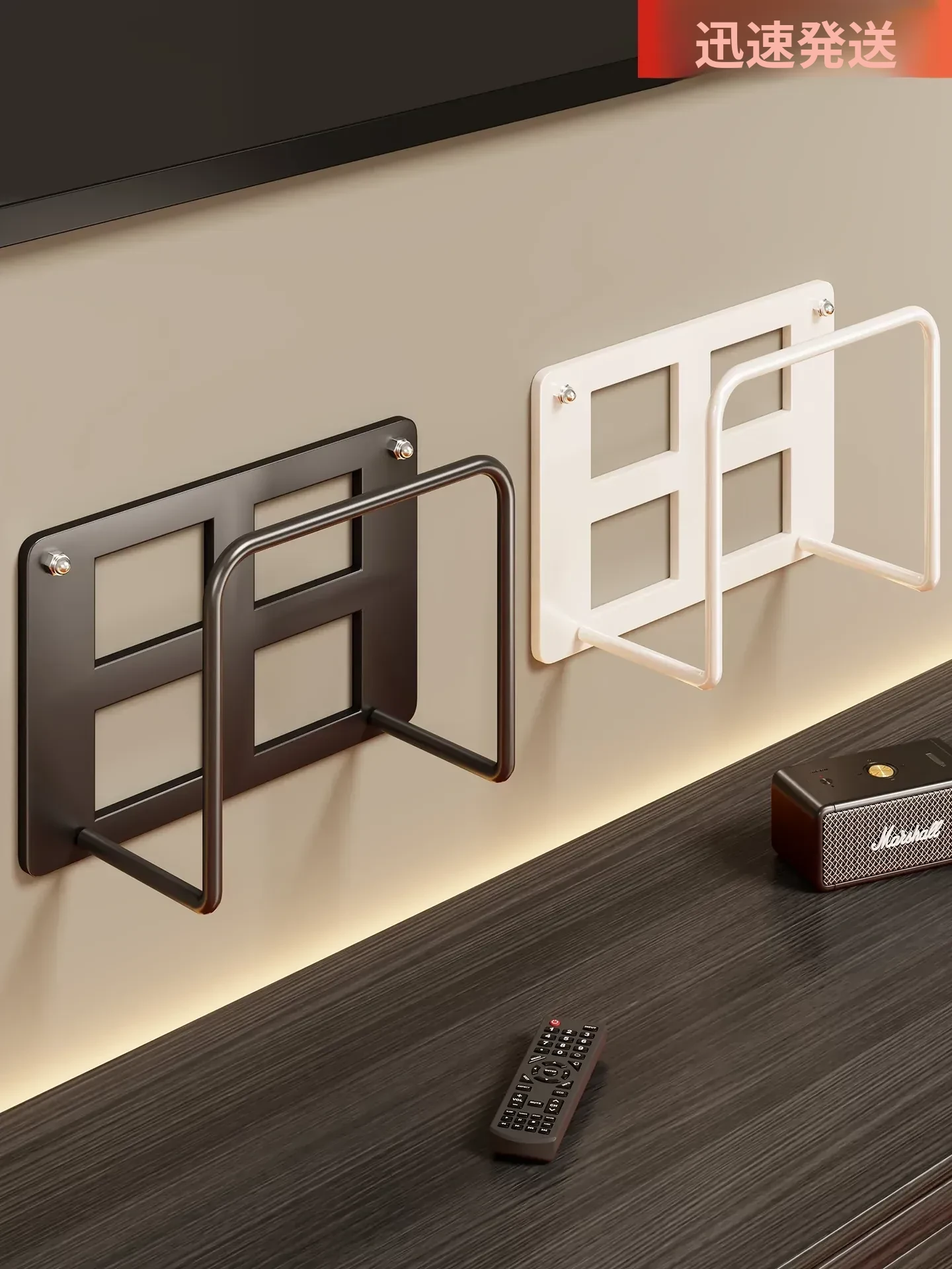 壁掛けルーター棚 - 簡単取り付け、穴あけ不要!Wi-Fi機器や家庭用タップをしっかり固定、スッキリ整理!テレビボックスや小物も一緒に収納できる便利な壁掛けスタンド。お部屋をすっきり整頓!