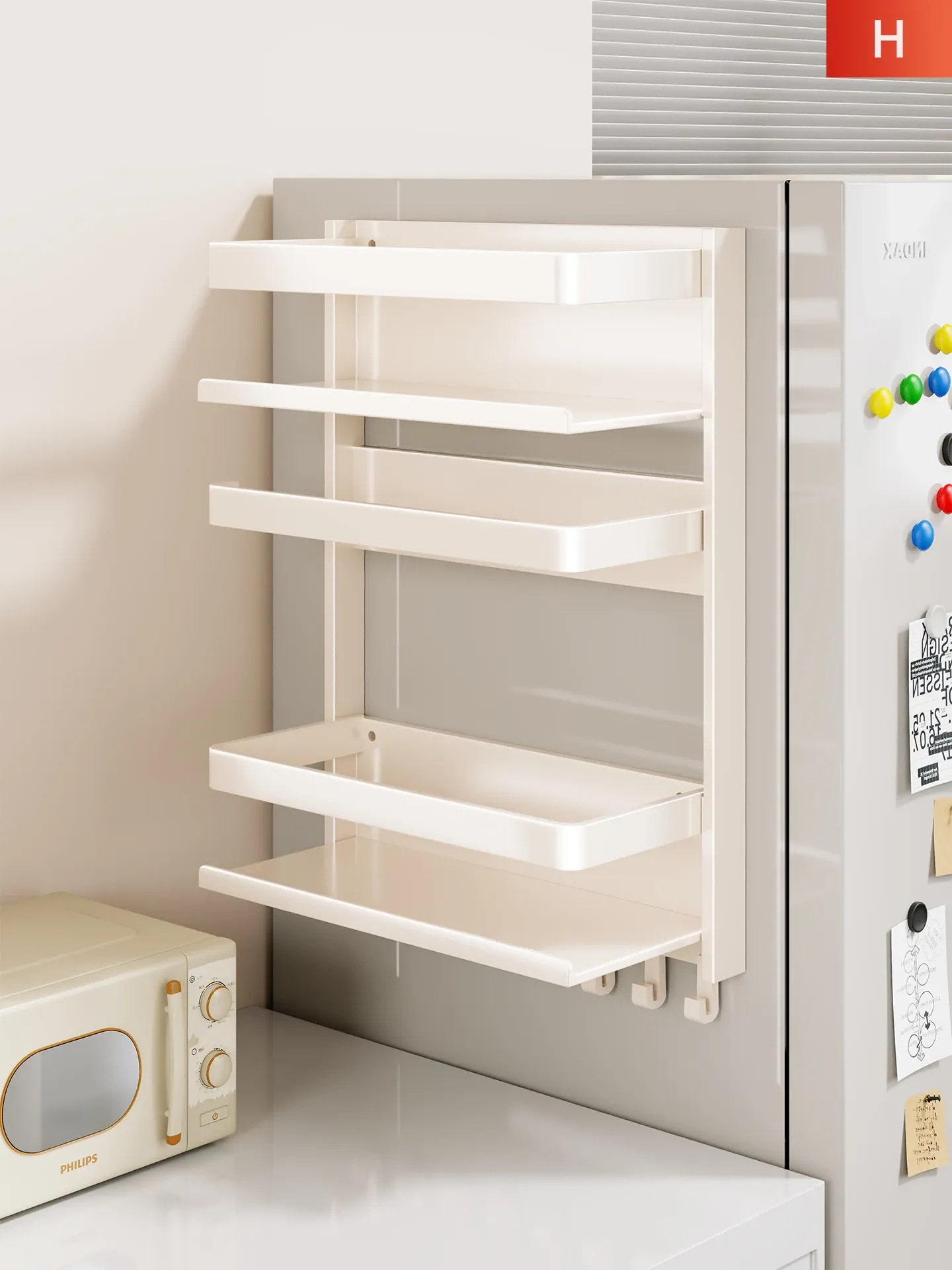 Wall-Mounted Fridge Side Storage Rack - No Drilling Required, Multi-Functional Kitchen Spice and Snack Organizer Shelf, Perfect for Space-Saving and Easy Access!