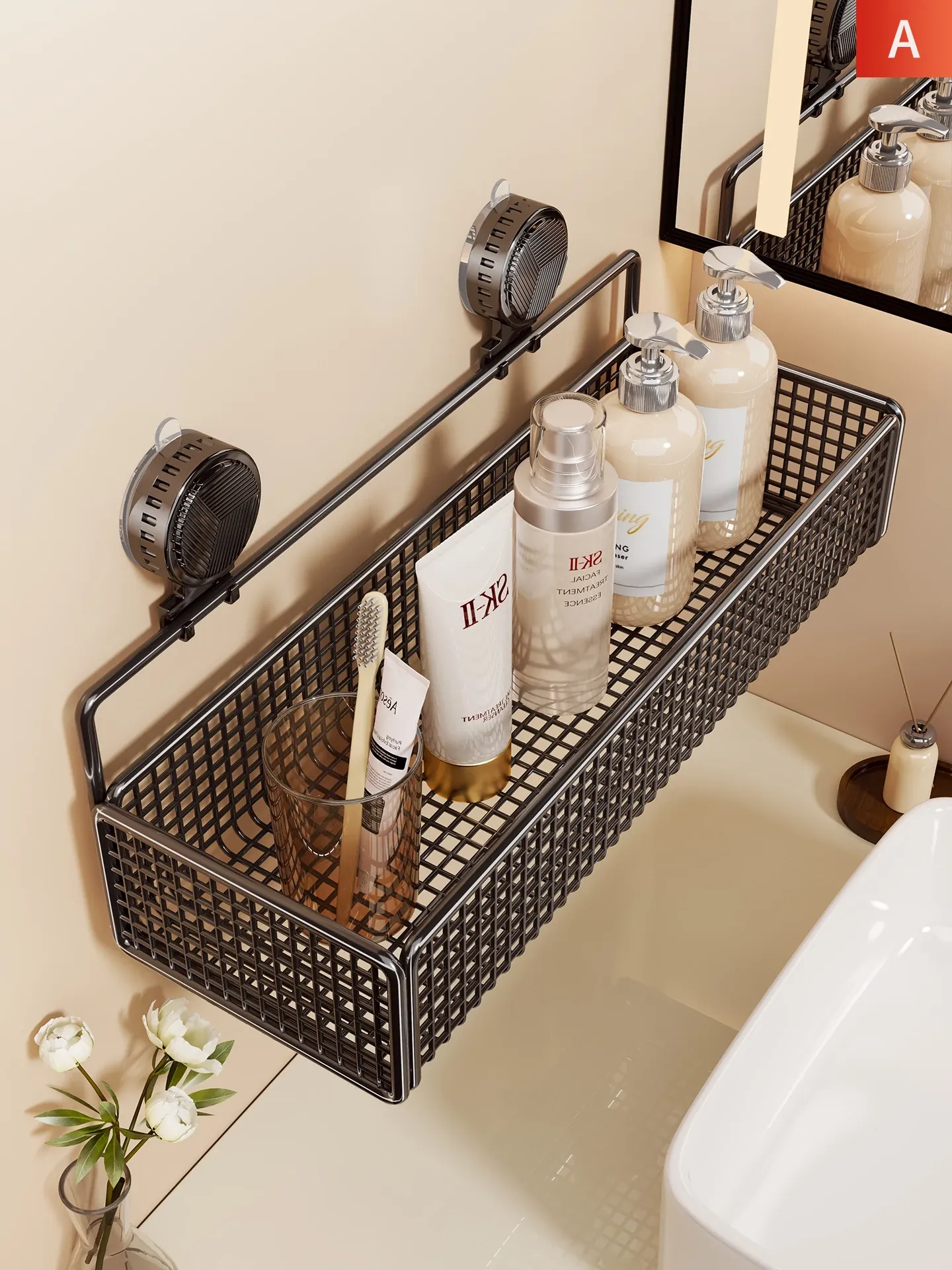 トイレ用吸盤式収納ラック|浴室や洗面台に最適!壁に穴を開けずに簡単取り付け!寮や小スペースにぴったりな化粧品収納で、整理整頓をサポートします!